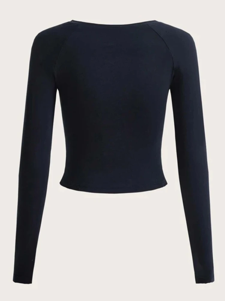 Gothic female Long sleeved Open Umbilical Letter Printing Casual Korean ladies Top Y2k Clothing EMO