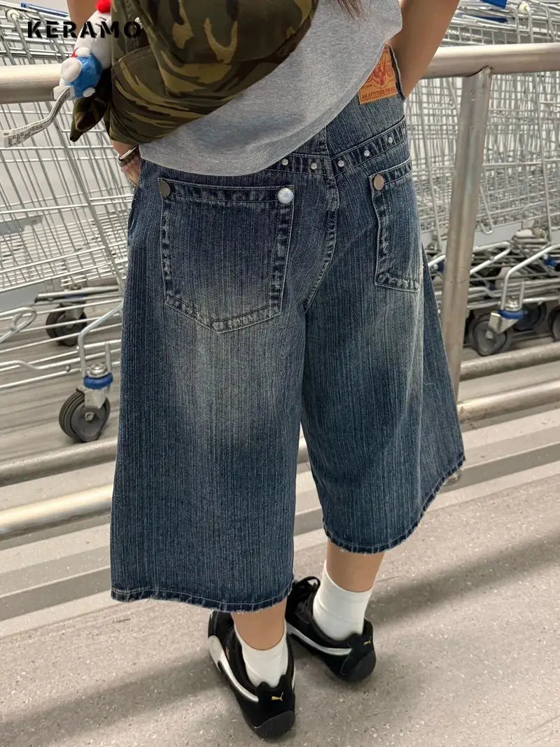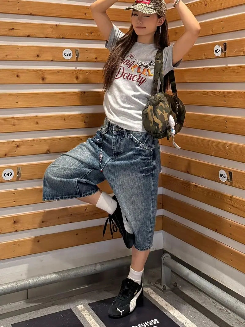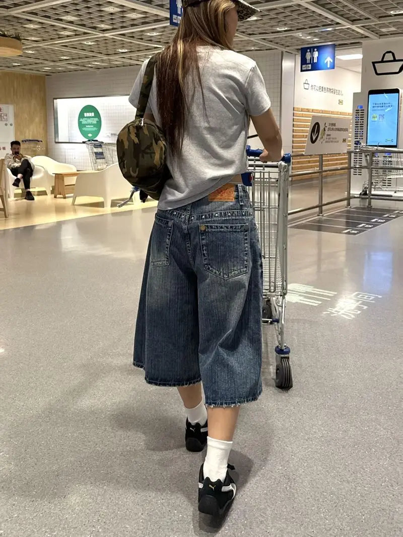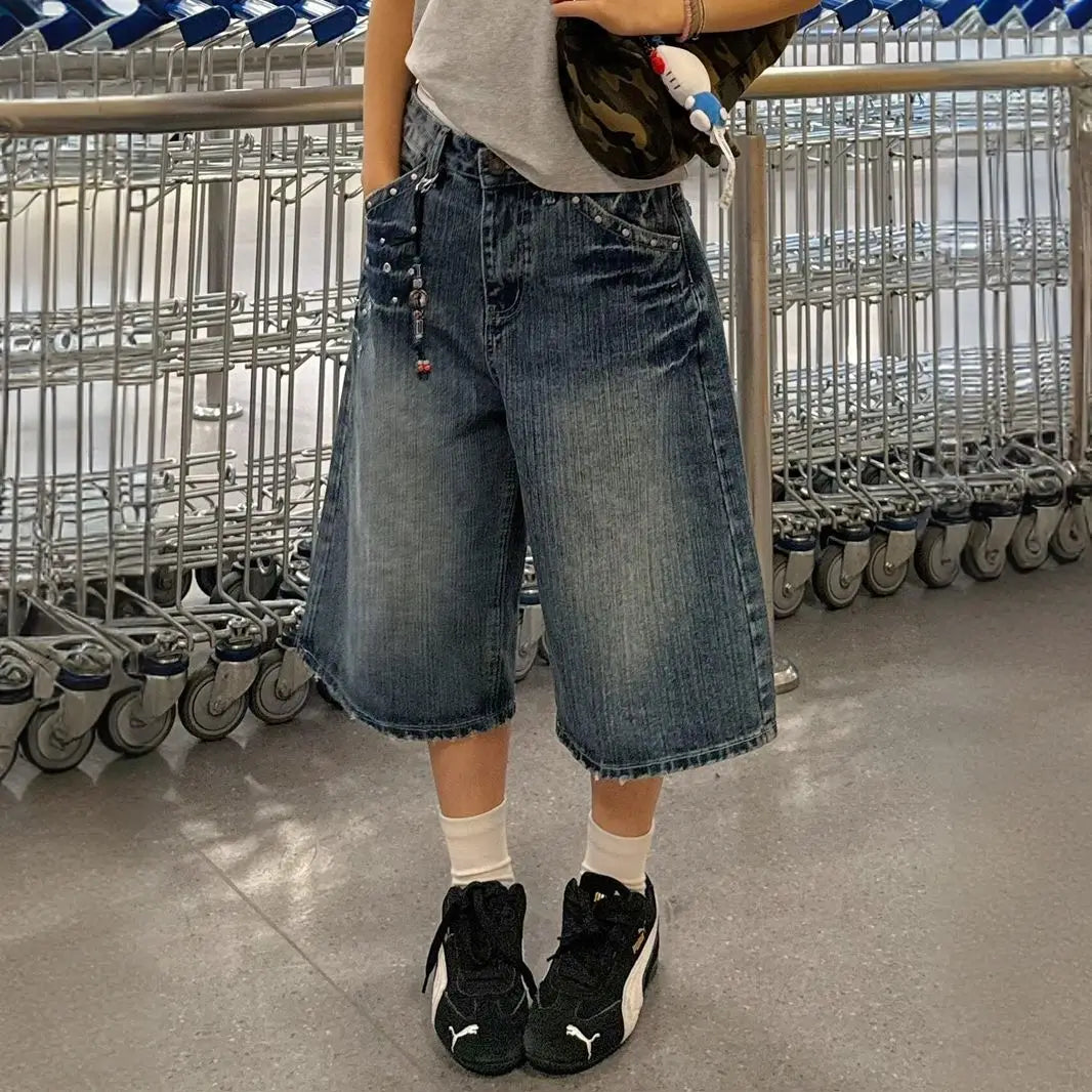 Harajuku Street Style Y2K Vintage Shorts High Waist Baggy Punk Blue Jean Women Casual Loose Fit Calf Length jeans Shorts