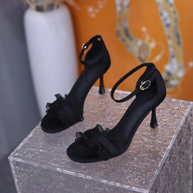 Heeled Women's Sandals Open Toe Stiletto Ladies Shoes 2025 Luxury Vintage Low Price Pvc Summer Comfortable Sale Trend Korea Shoe