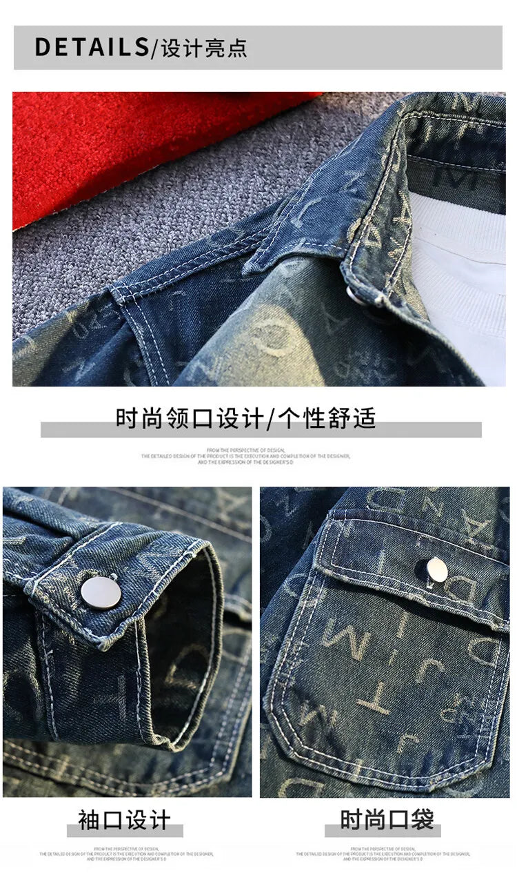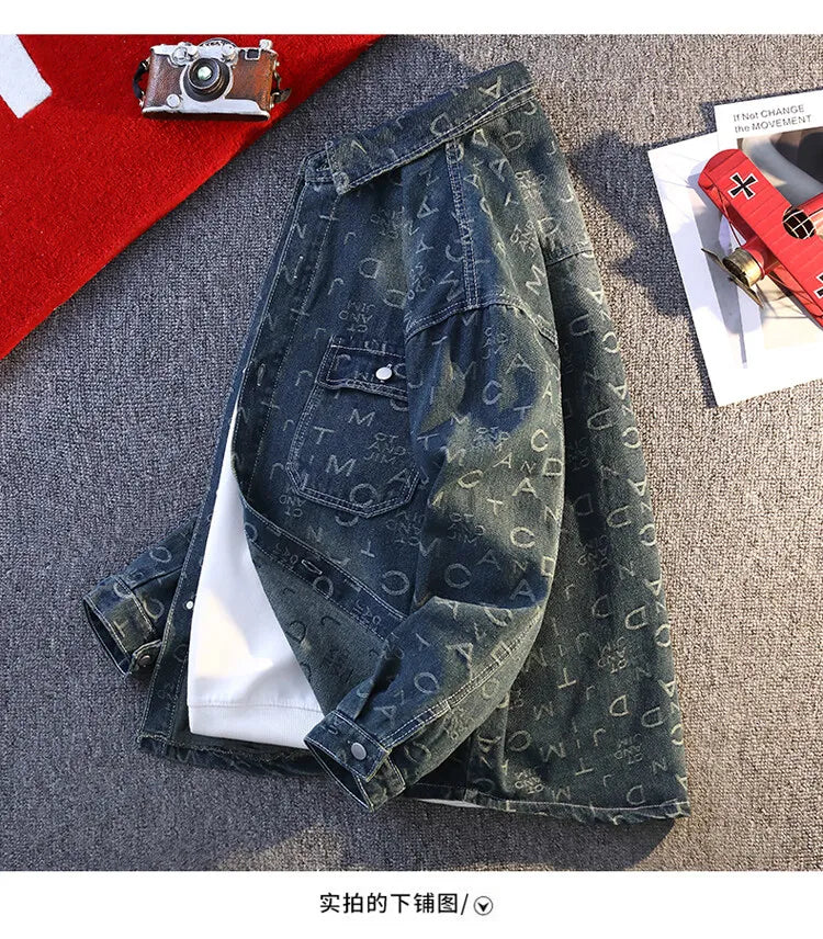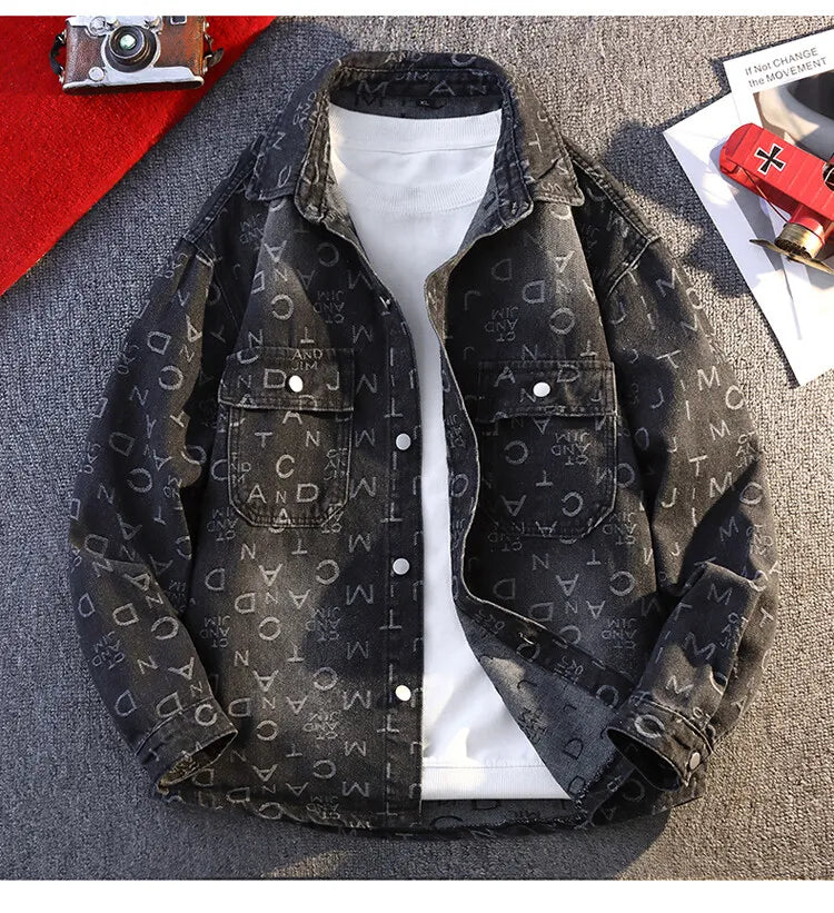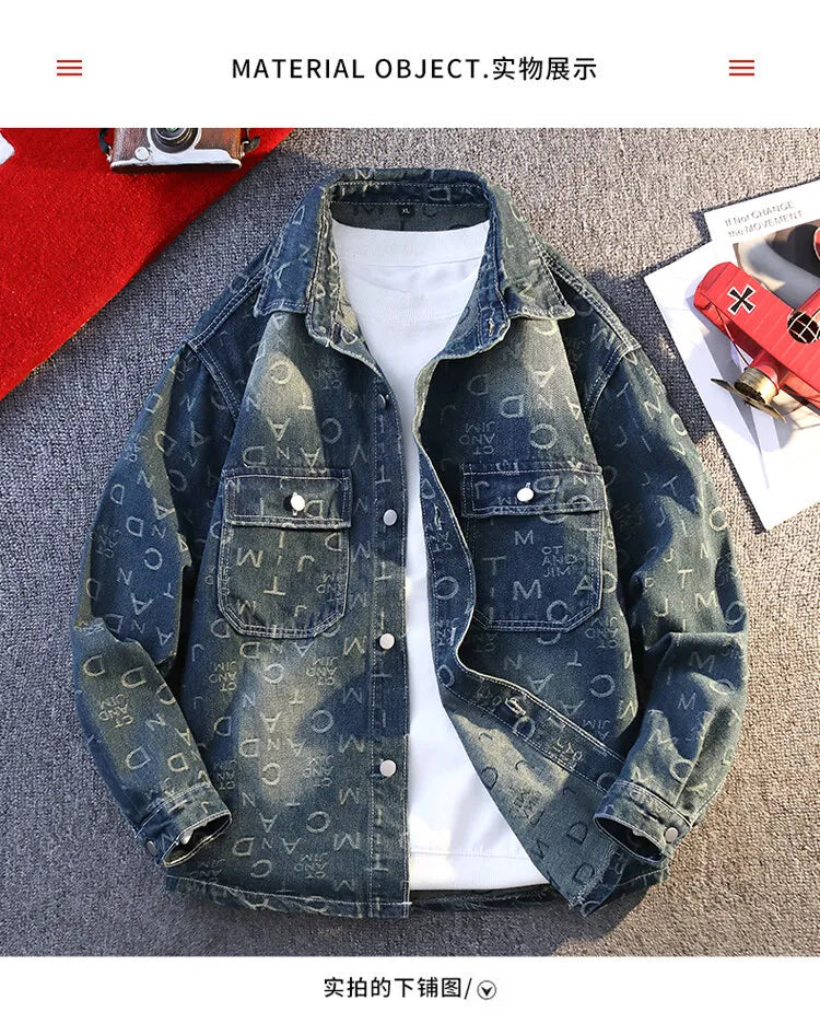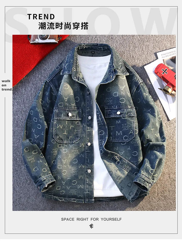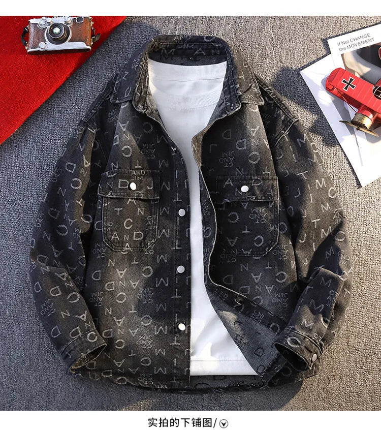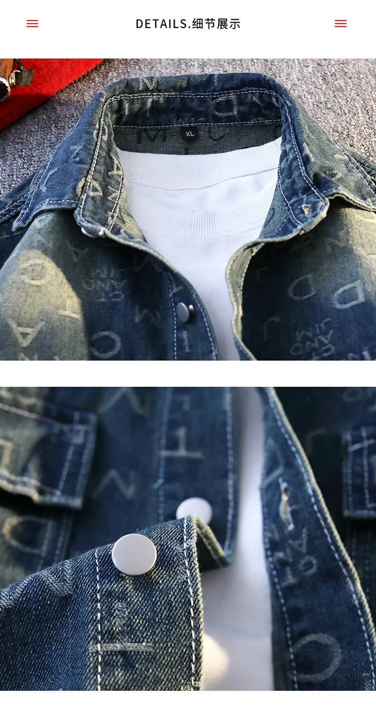 High Quality 2025 Spring Autumn Men's Cotton Denim Jackets Casual Youth Streetwear print Denim Coats Loose Tops Clothing