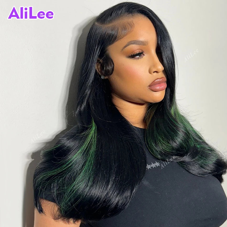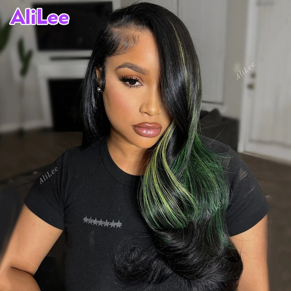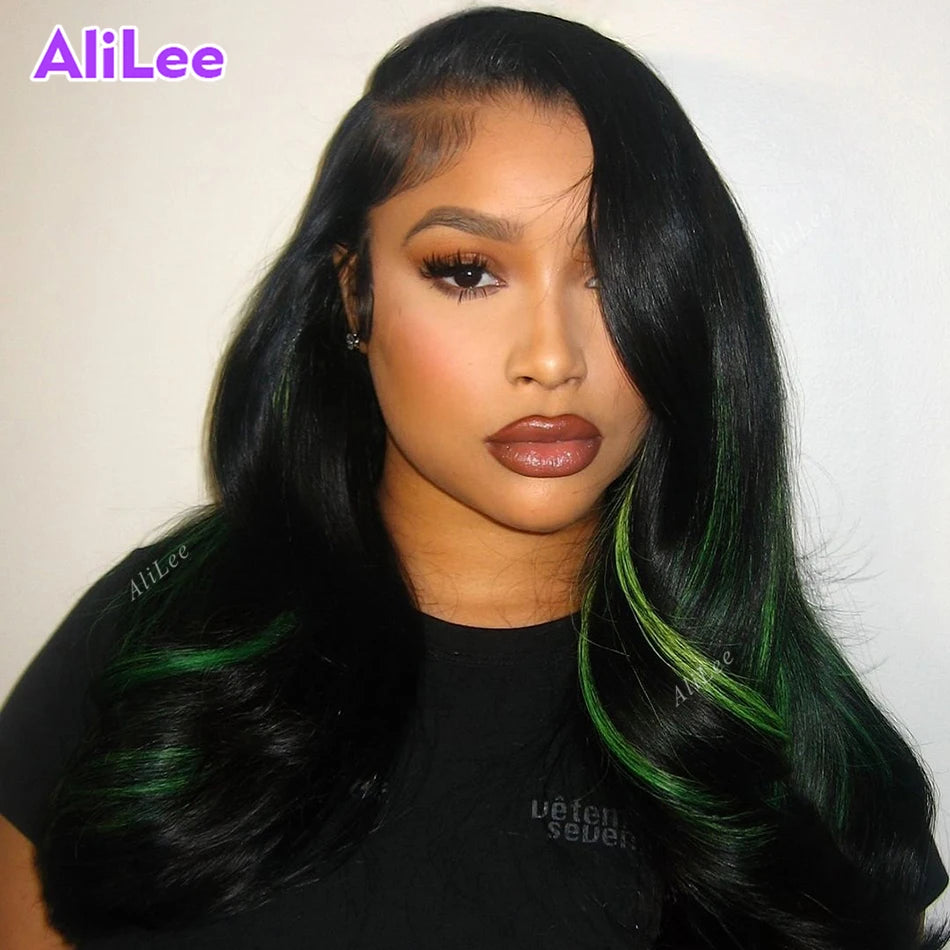 Highlight Green with Black Color Transparent Body Wave 13x6 13x4 Lace Frontal Human Wigs for Women Pre Plucked with Baby Hair