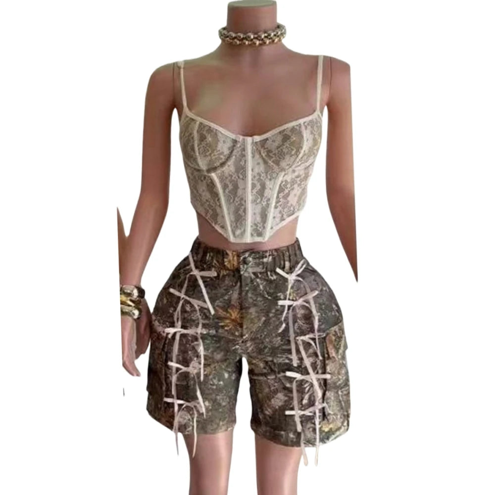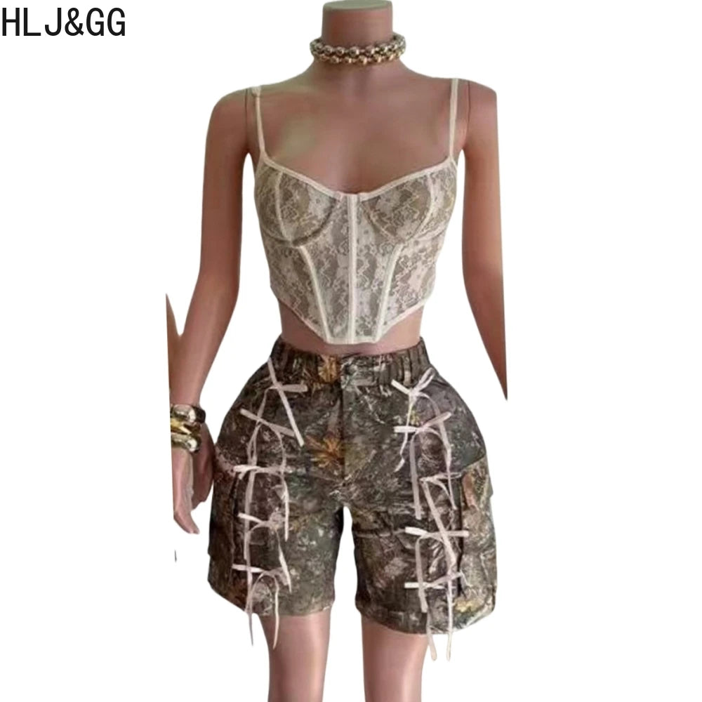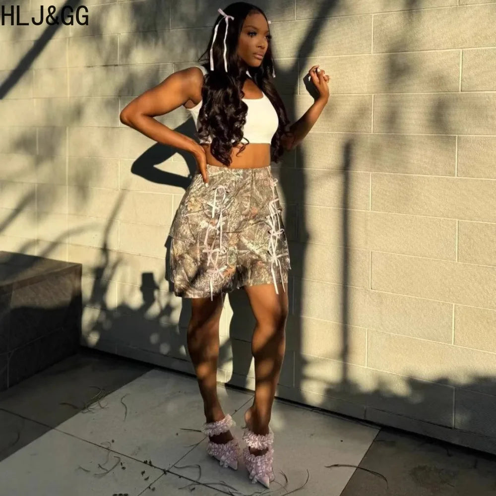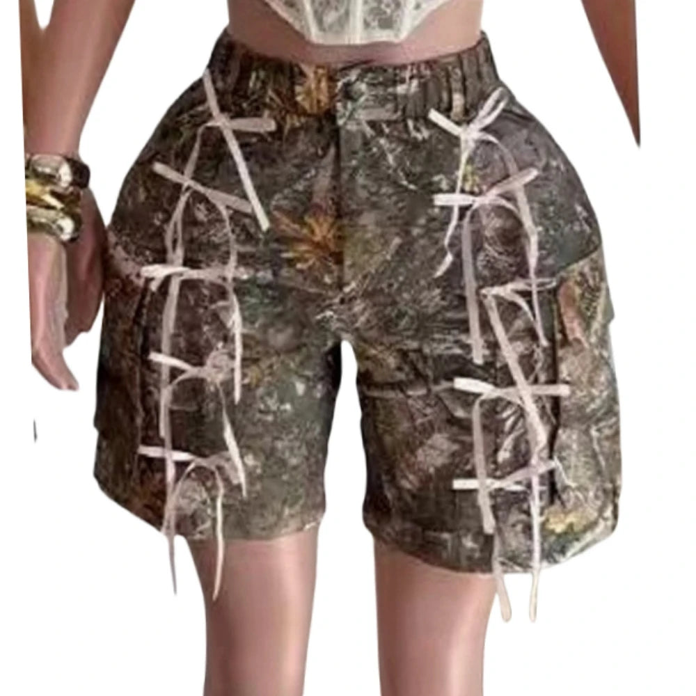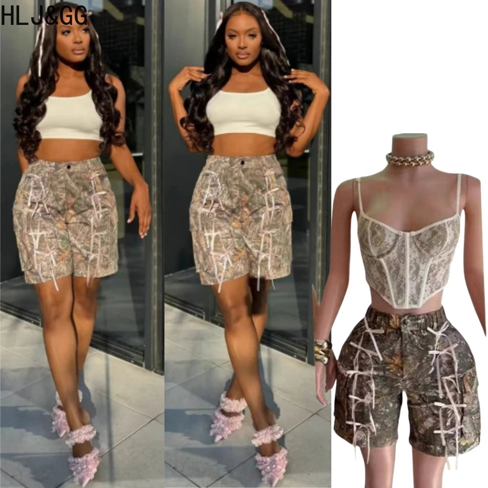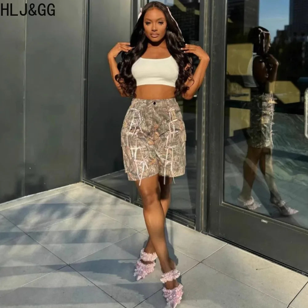 HLJ&GG American Vintage Style Women High Waist Button Harajuku Straight Shorts Fashion Print Pocket Bow Bottoms Streetwear 2025