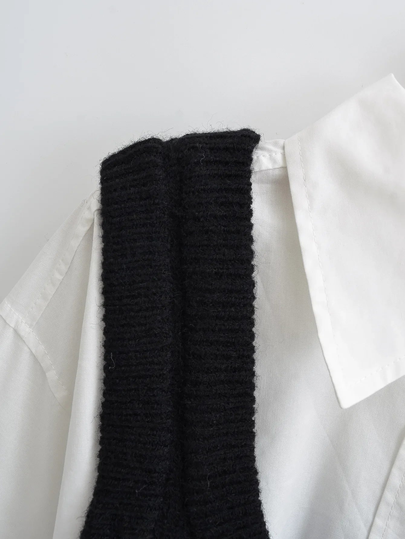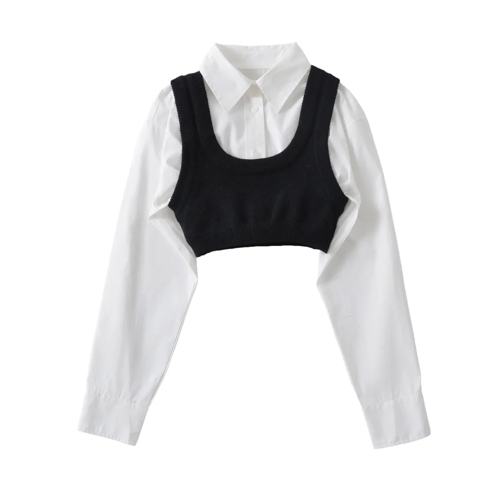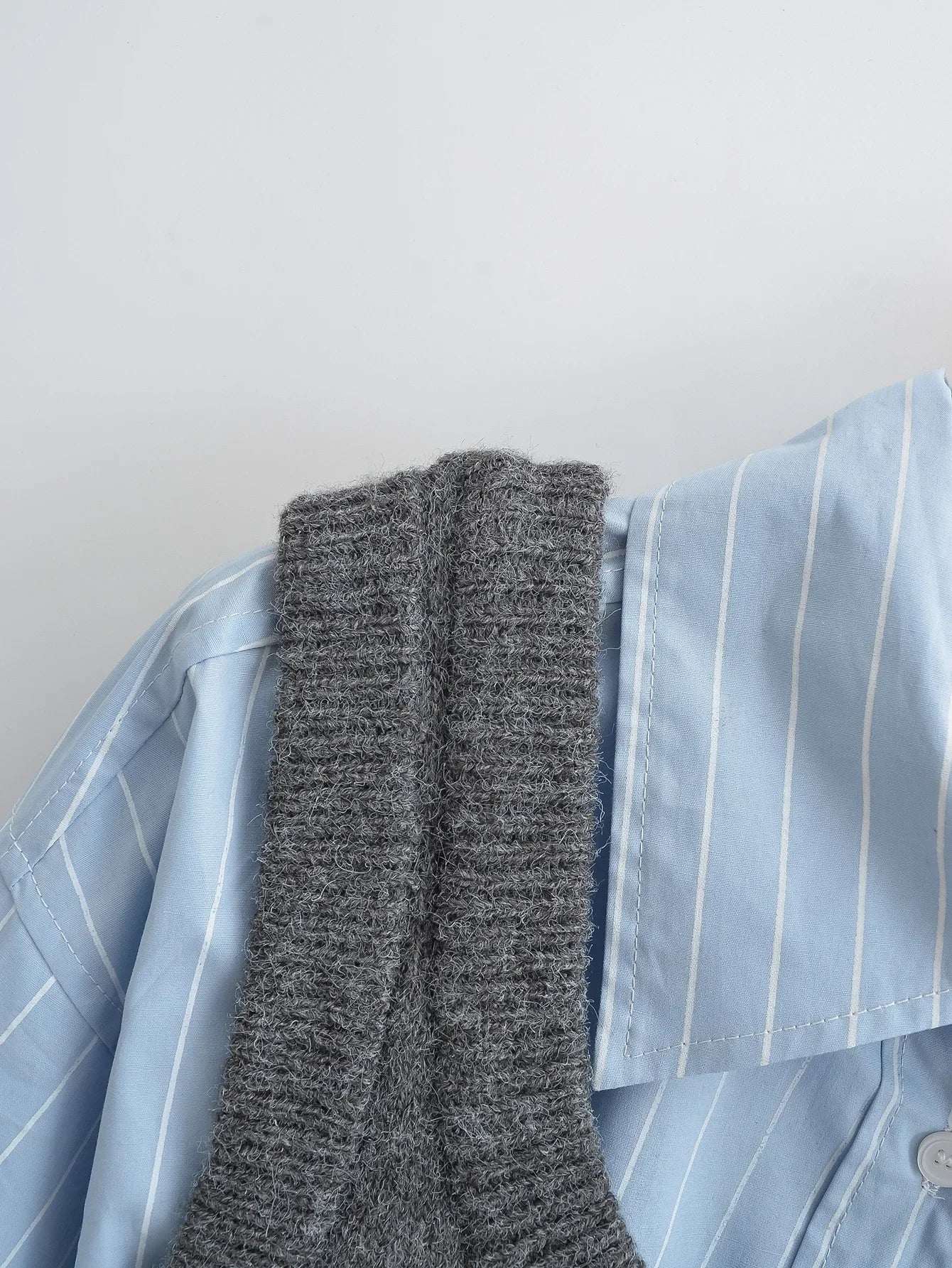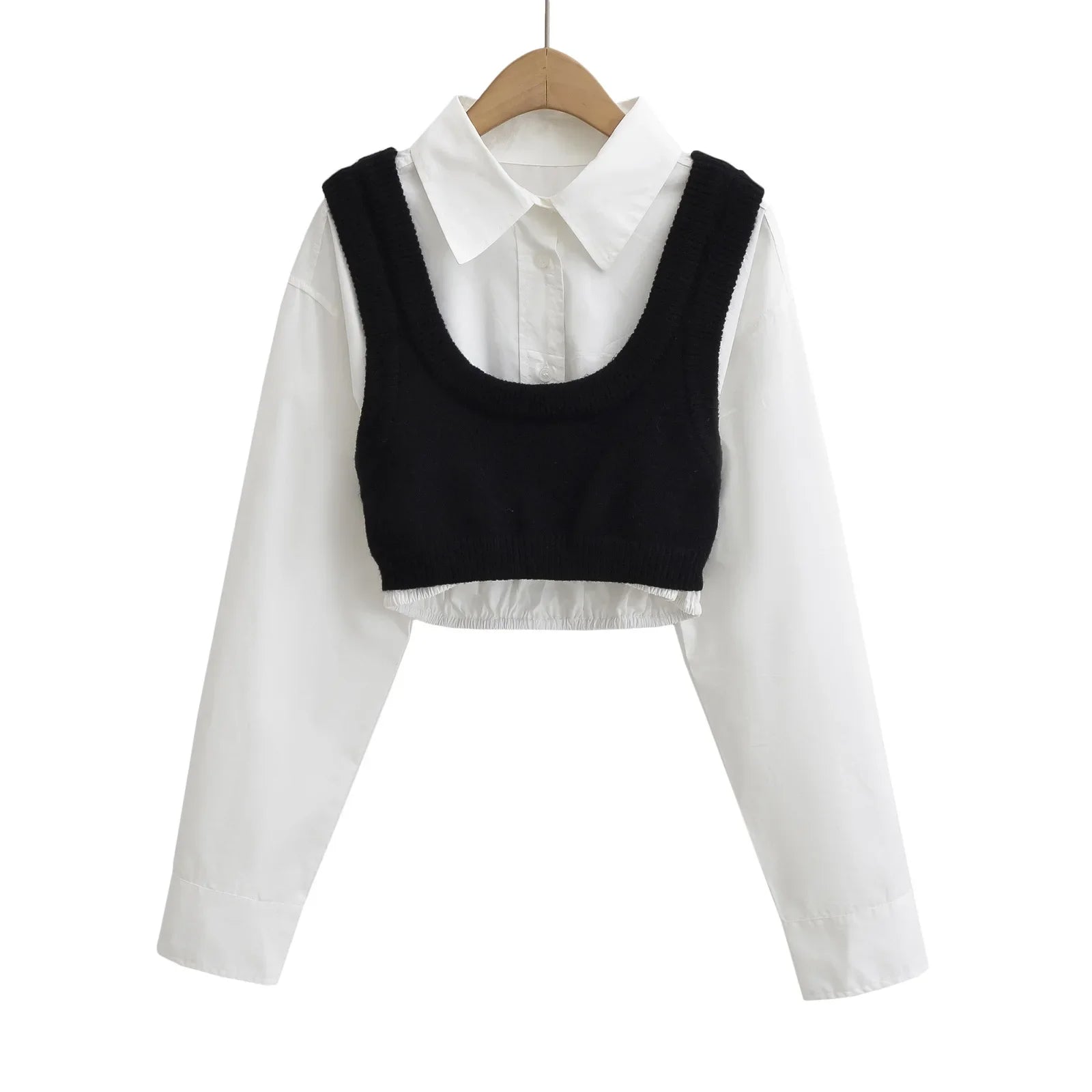 HLJ&GG Autumn Knit Vest Shirts Two Piece Sets Women Lapel Button Long Sleeve Top And Mini Skirts Outfits Fashion Retro 2pcs Suit