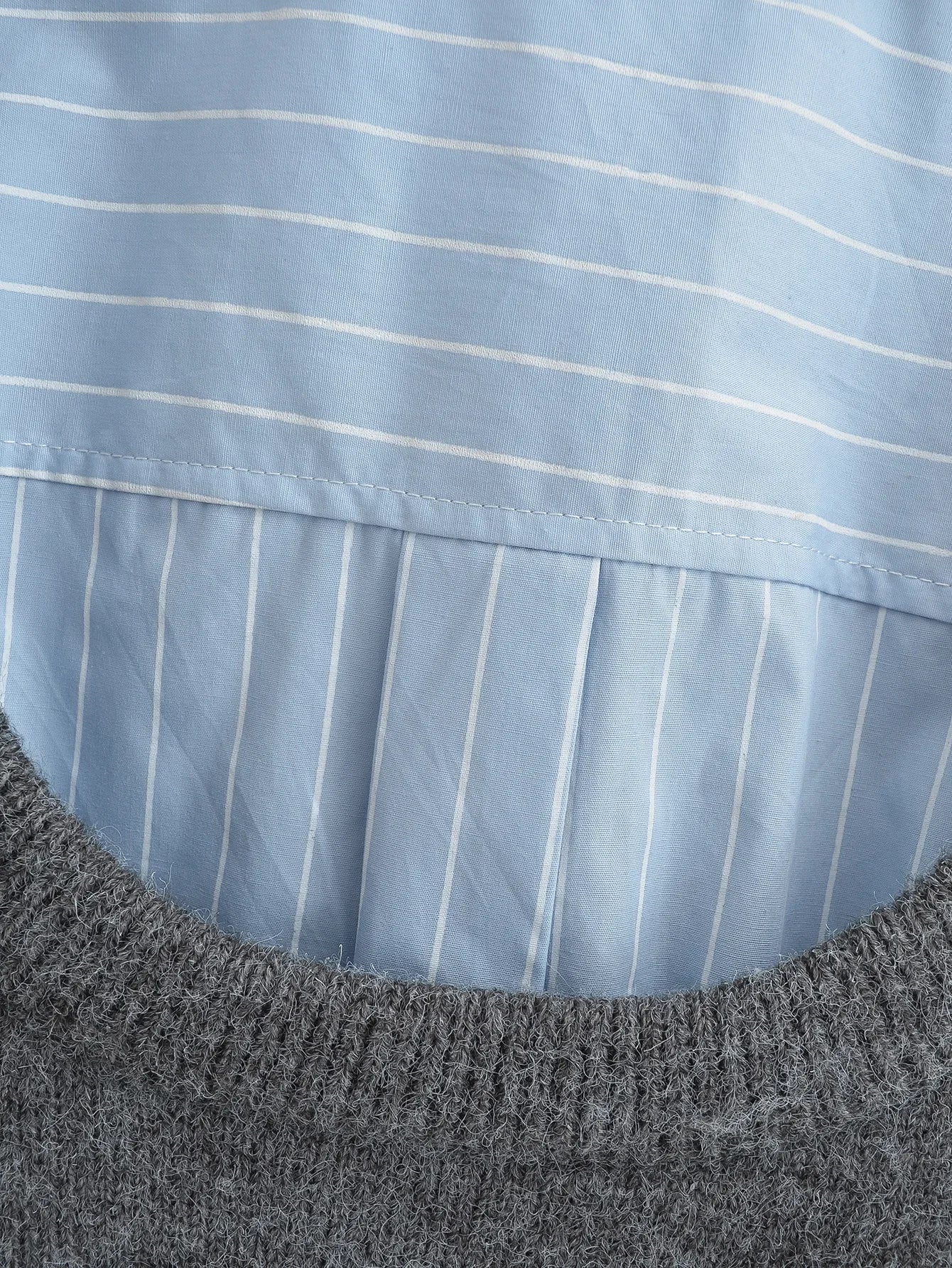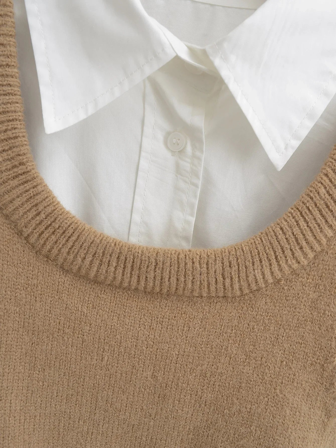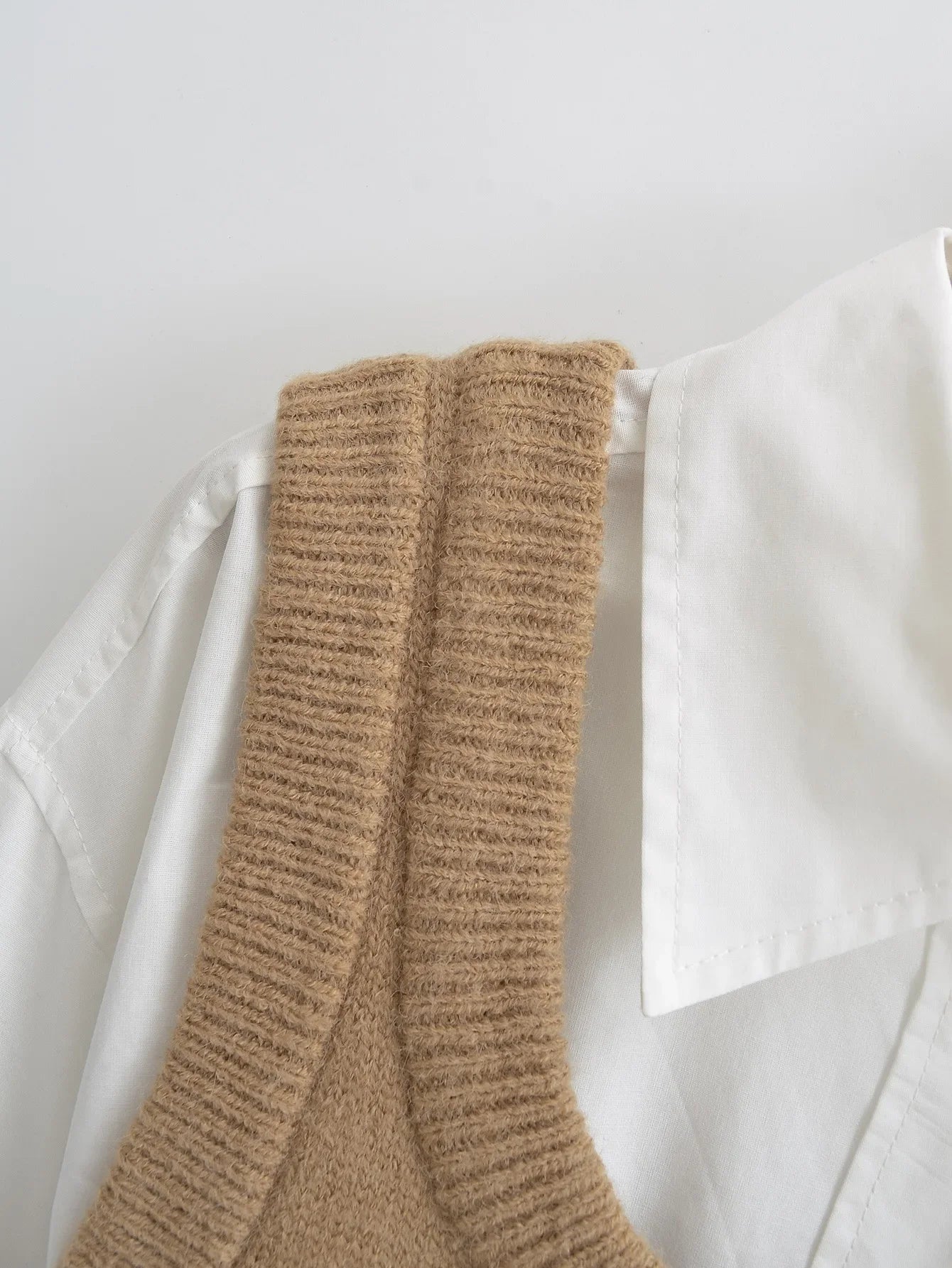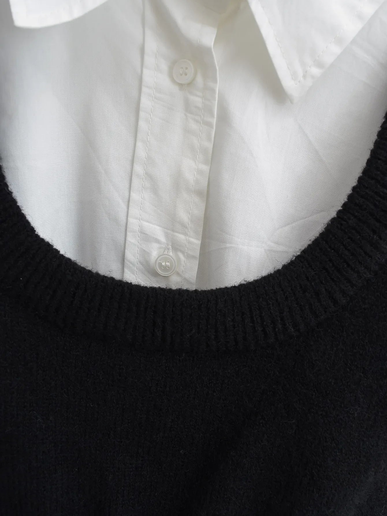 HLJ&GG Autumn Knit Vest Shirts Two Piece Sets Women Lapel Button Long Sleeve Top And Mini Skirts Outfits Fashion Retro 2pcs Suit