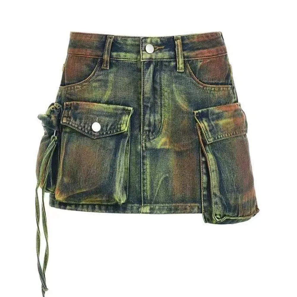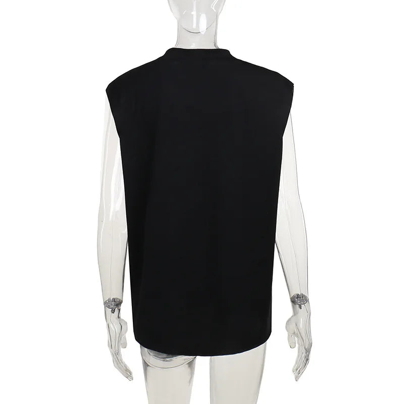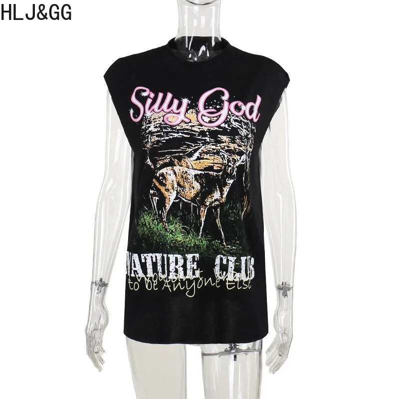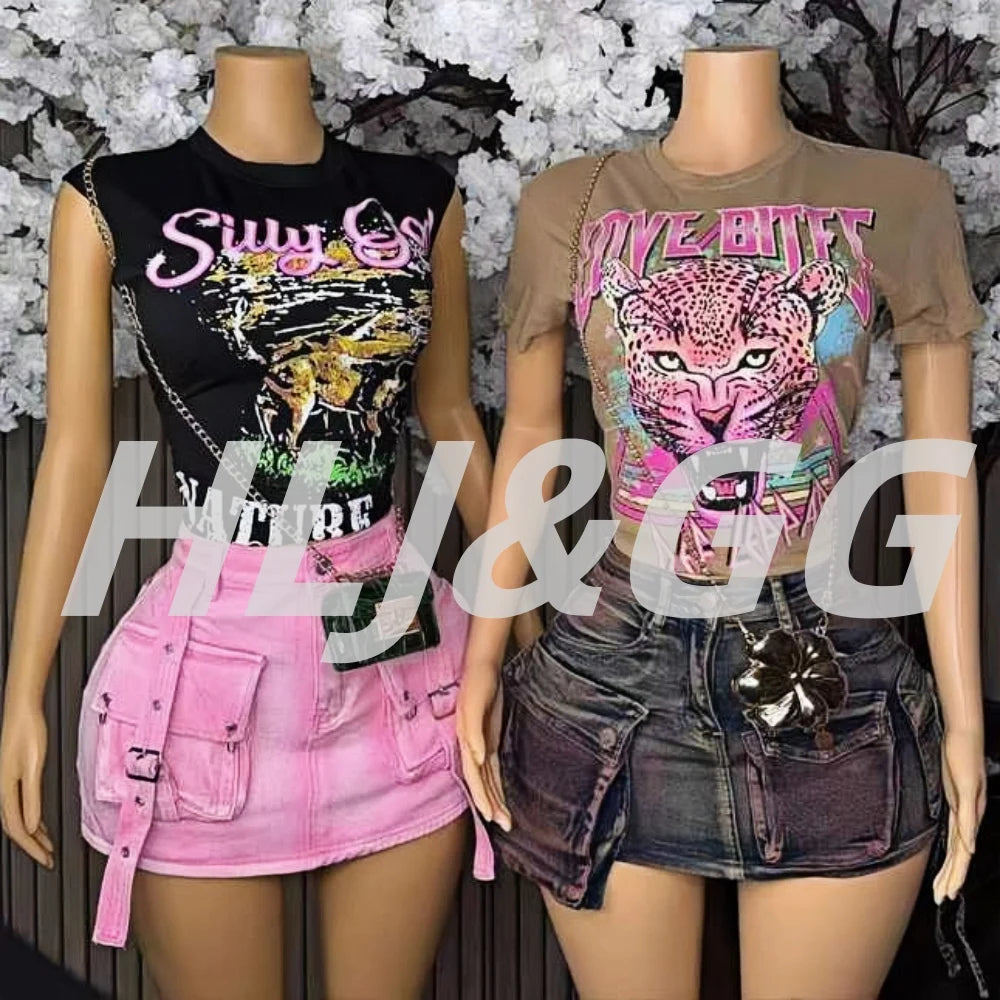 HLJ&GG Black Fashion Y2K Letter Print Two Piece Sets Women O Neck Sleeveless Top And Pocket Cargo Mini Skirts Outfits Streetwear