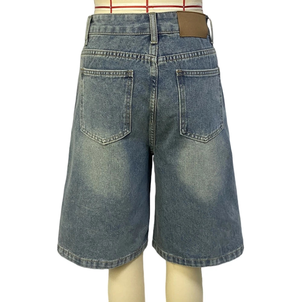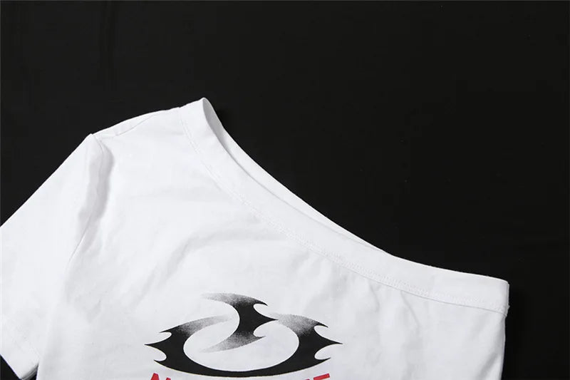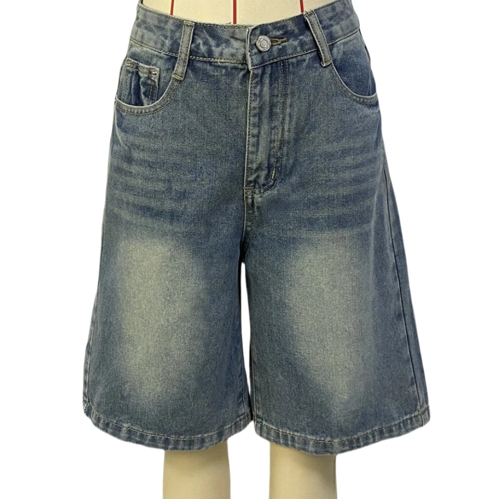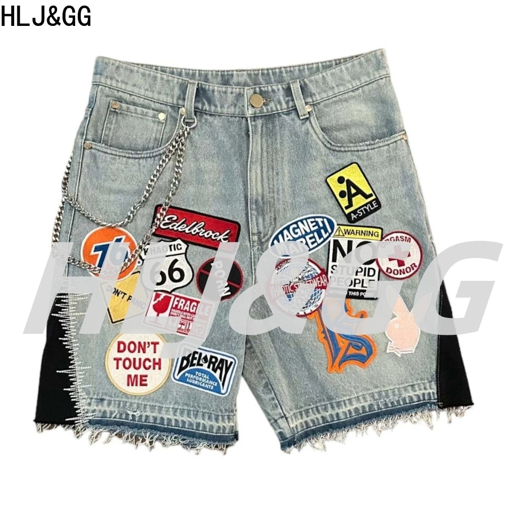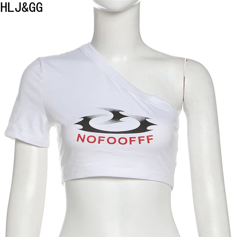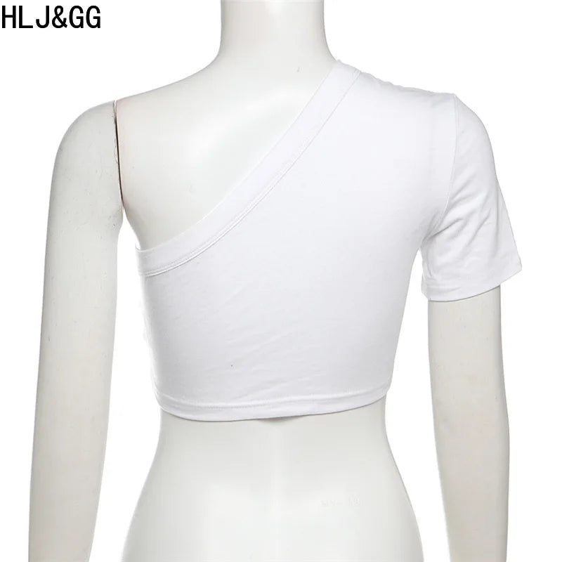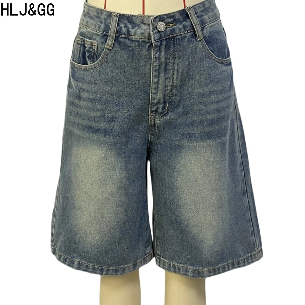 HLJ&GG Blue Retro Fashion jeans Two Piece Sets Women One Shoulder Short Sleeve Crop Top+Jeans Shorts Outfits Fashion Streetwear