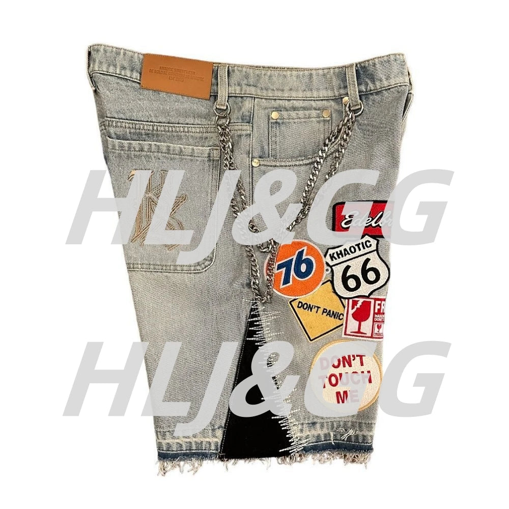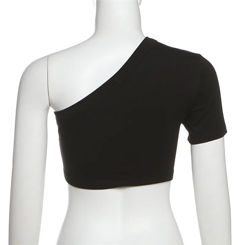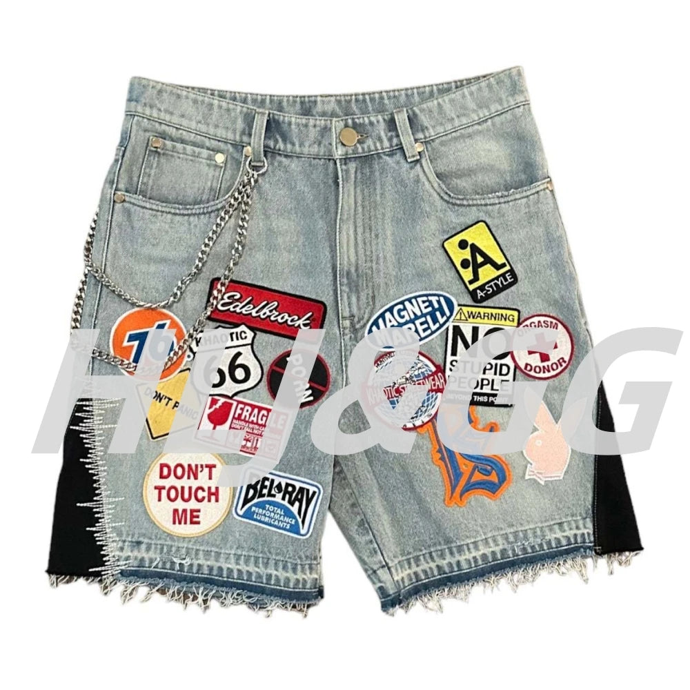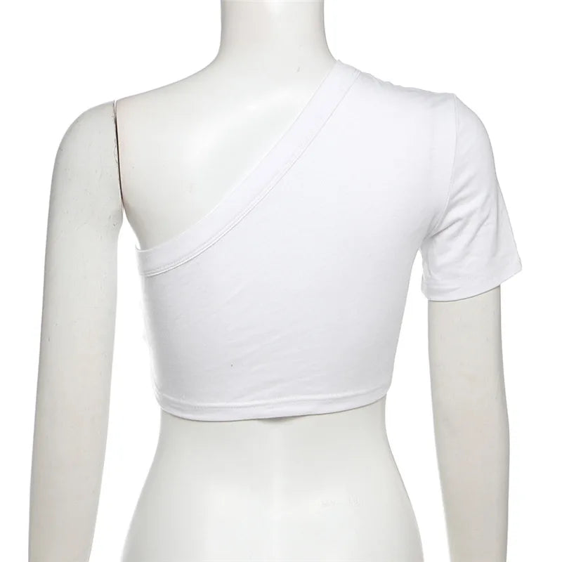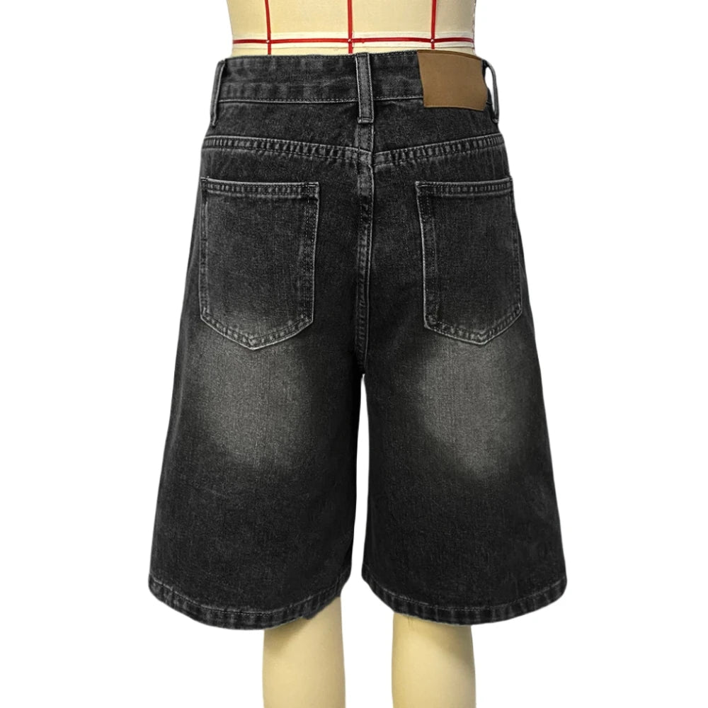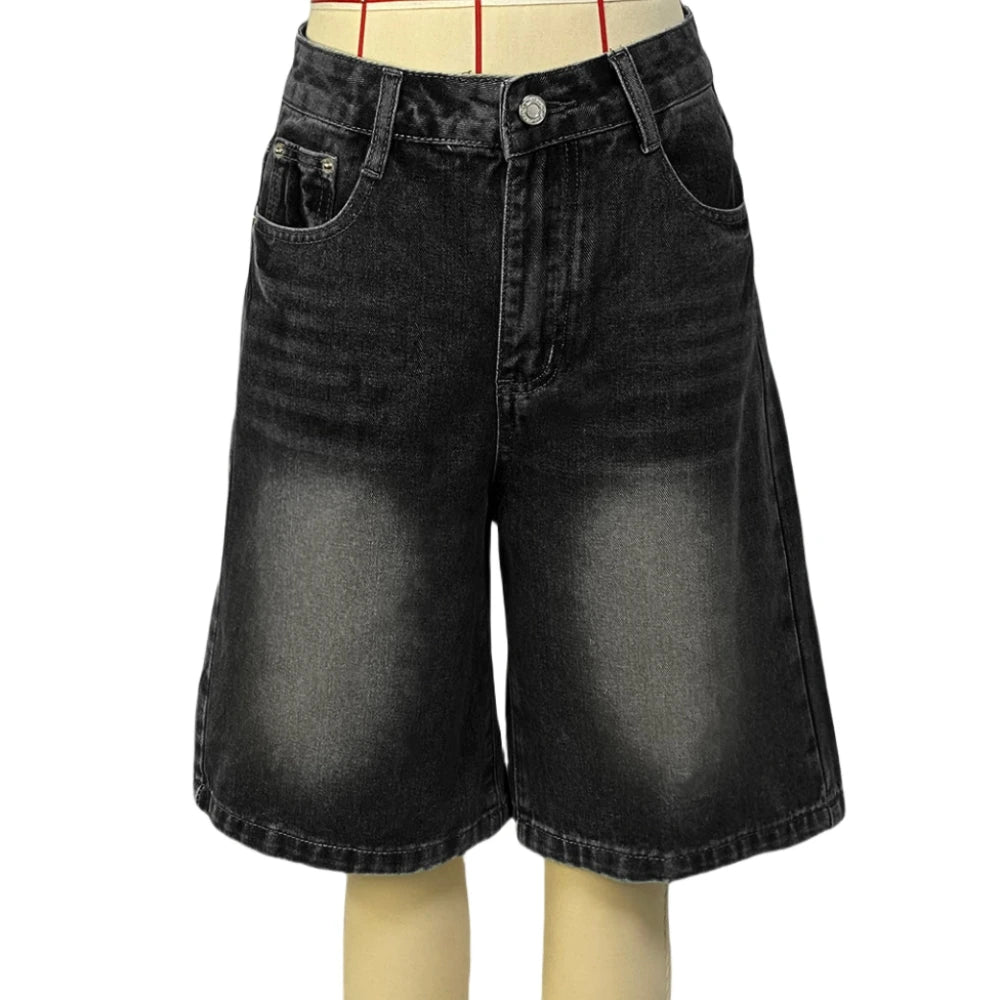 HLJ&GG Blue Retro Fashion jeans Two Piece Sets Women One Shoulder Short Sleeve Crop Top+Jeans Shorts Outfits Fashion Streetwear