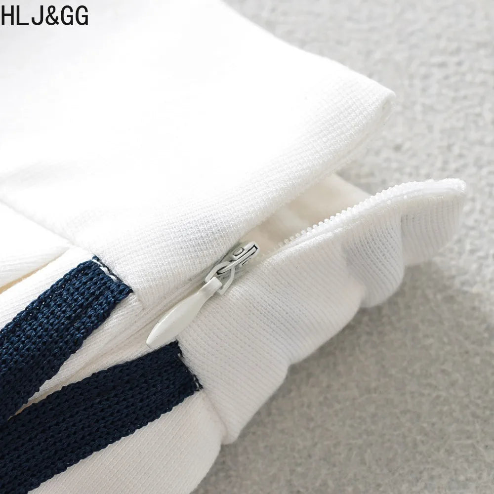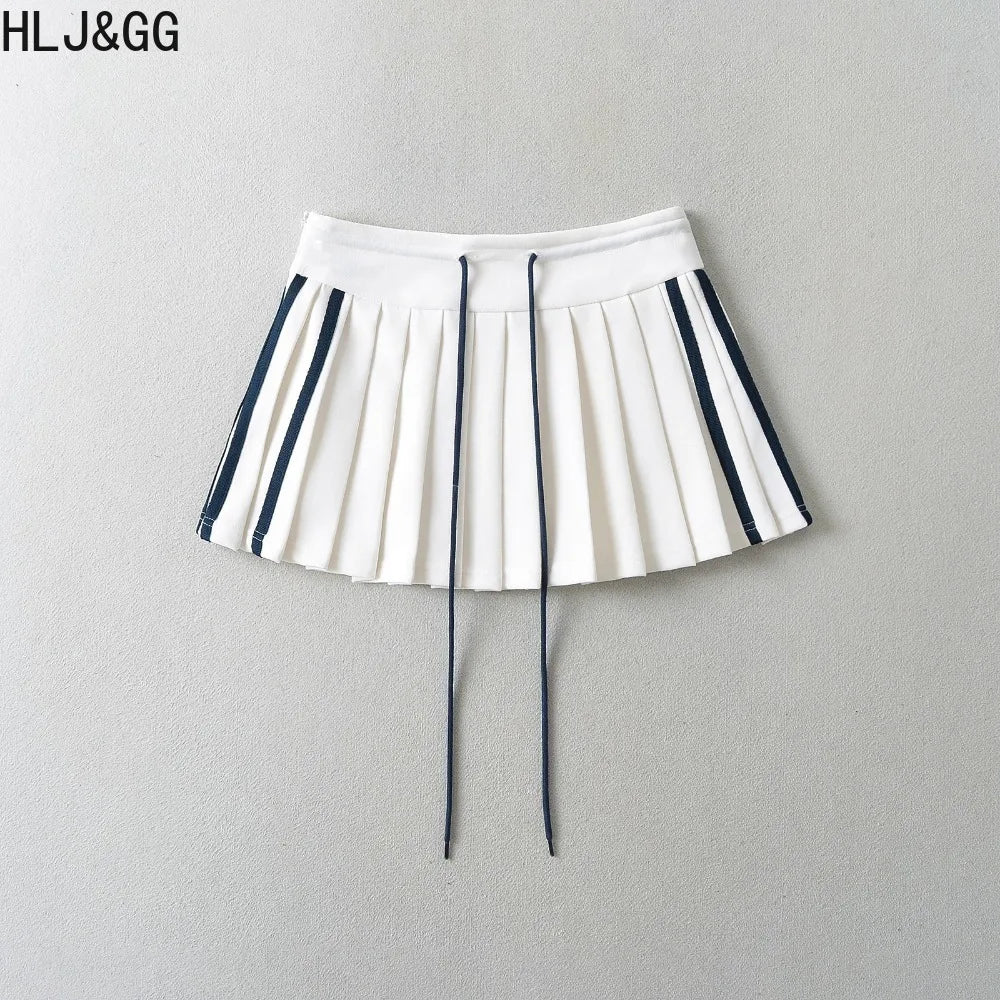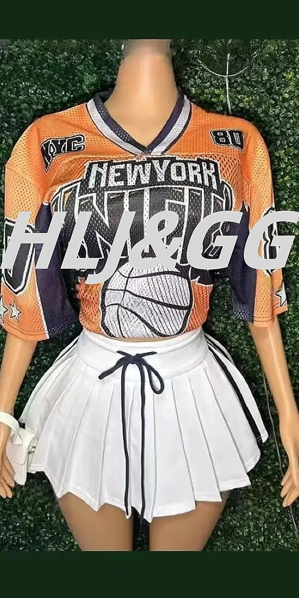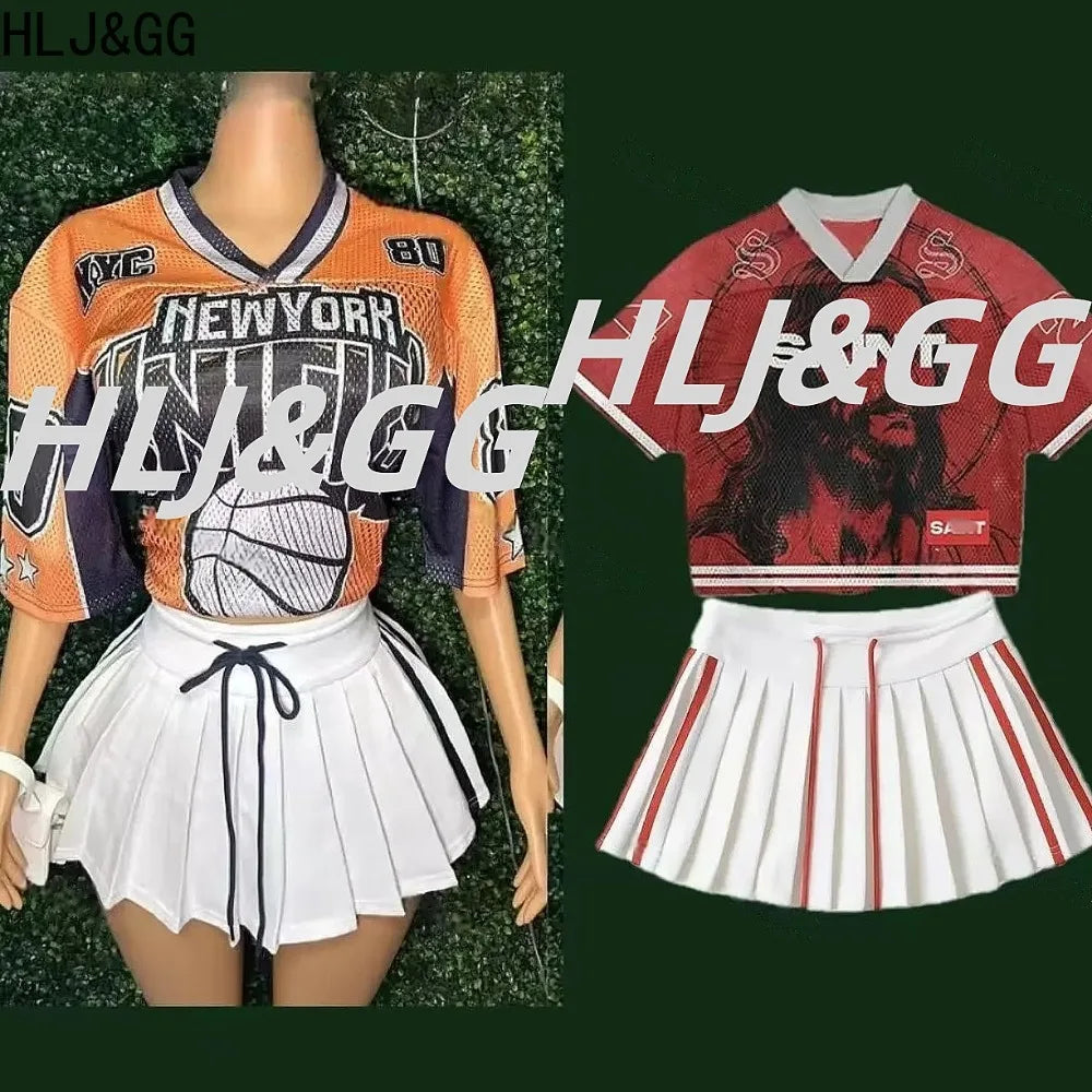 HLJ&GG Fashion 2 Piece Sets Women Outfit Deep V Letter Printing Loose T-shirt + Pleated Skirt Suit Streetwear Spring Summer New