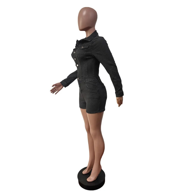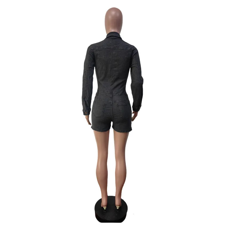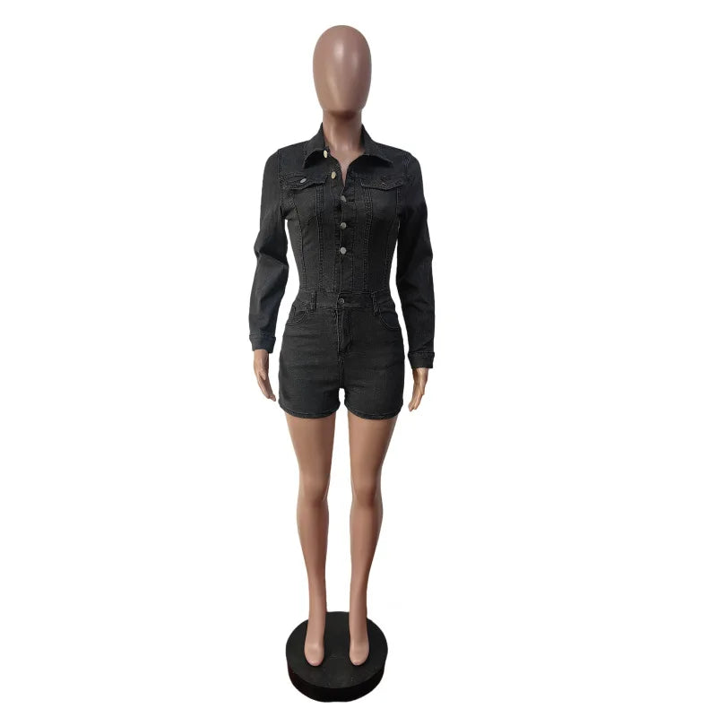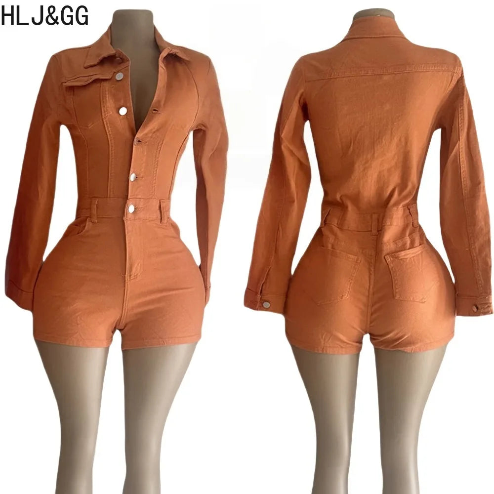HLJ&GG Fashion Bodycon jeans Romper ladies Solid Color Long Sleeves One Piece Jumpsuit, Streetwear Overalls 2025 Summer New