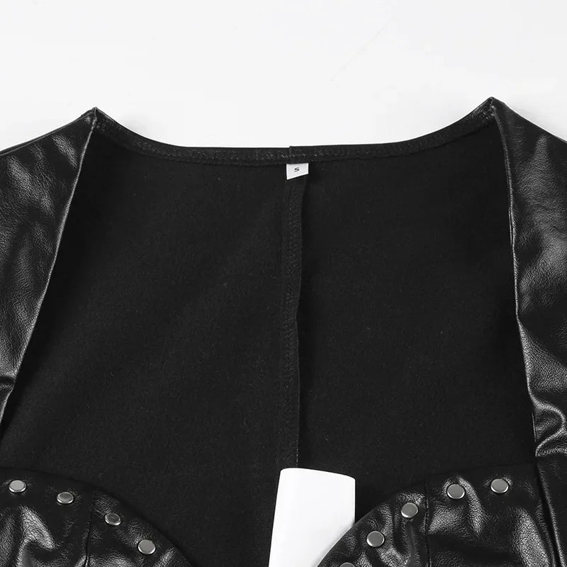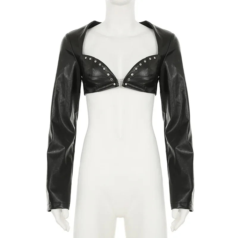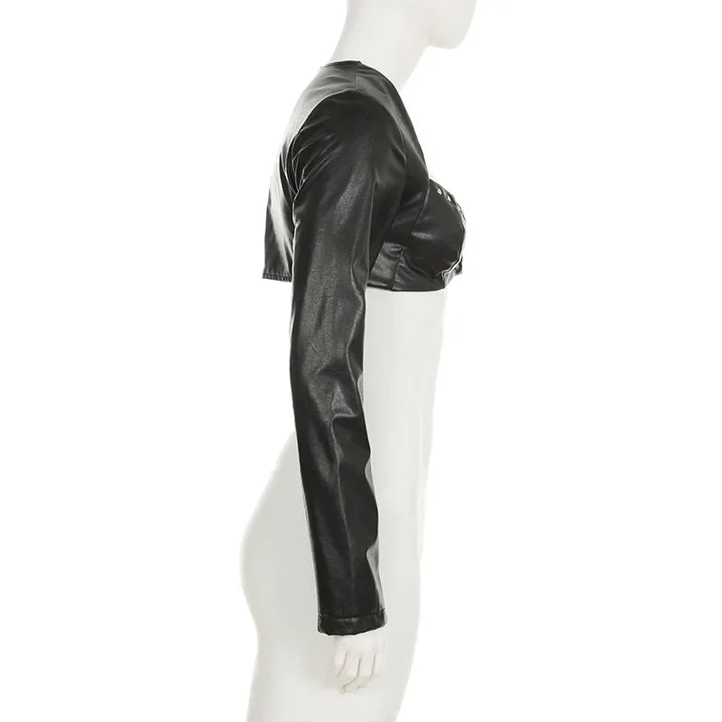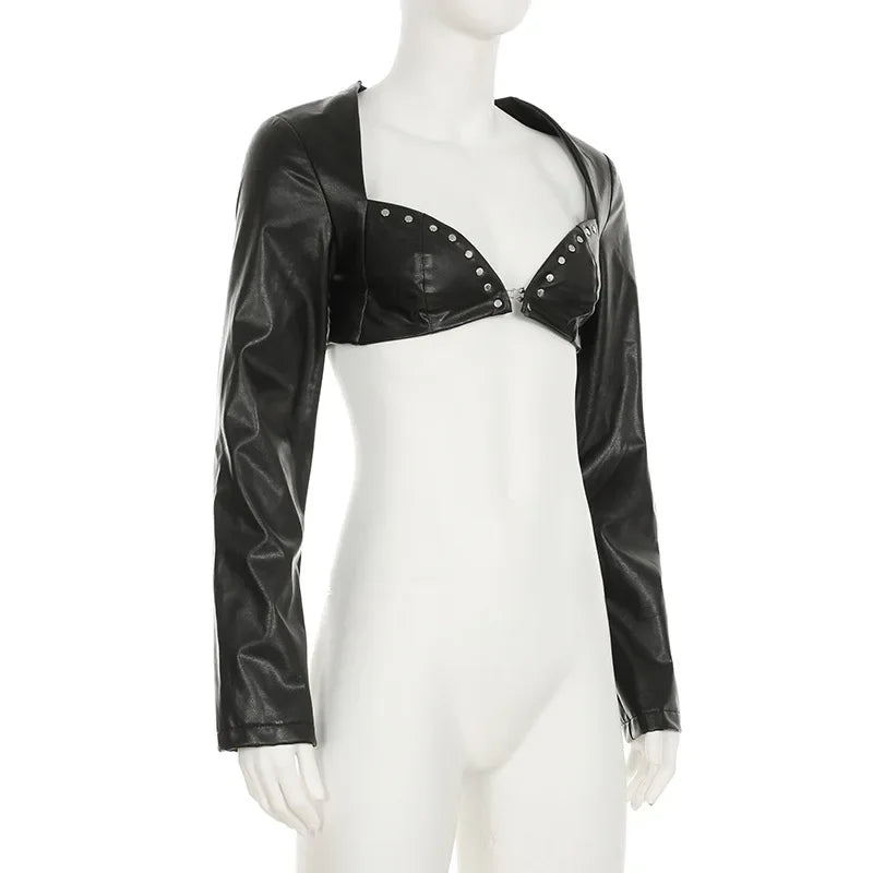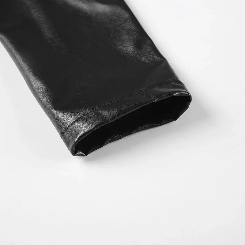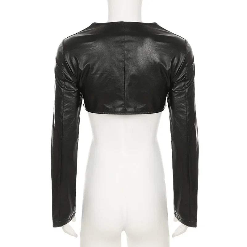 HLJ&GG Fashion Leather Long Sleeve Crop Jacket + Skinny Leopard Pants Two Piece Sets Y2K Cool Girl Outfits Women Sexy Streetwear