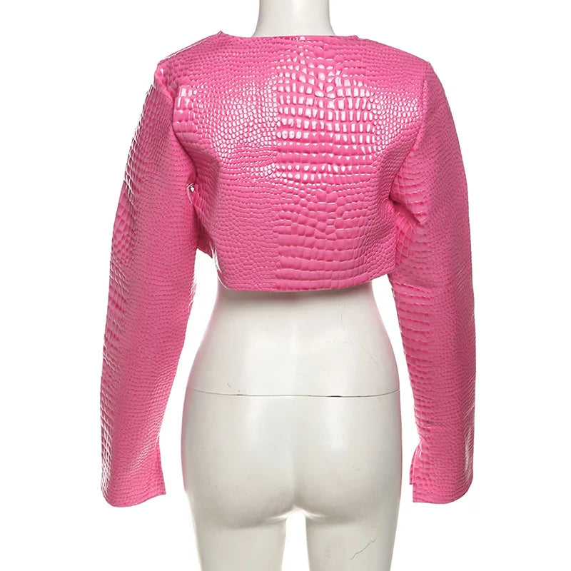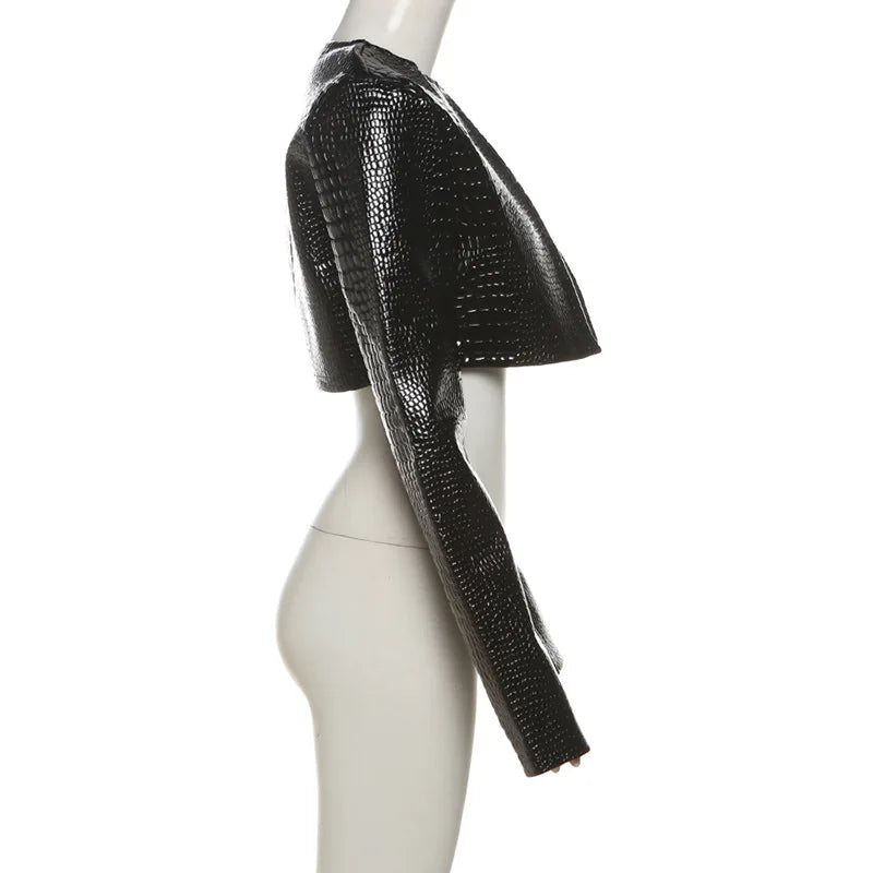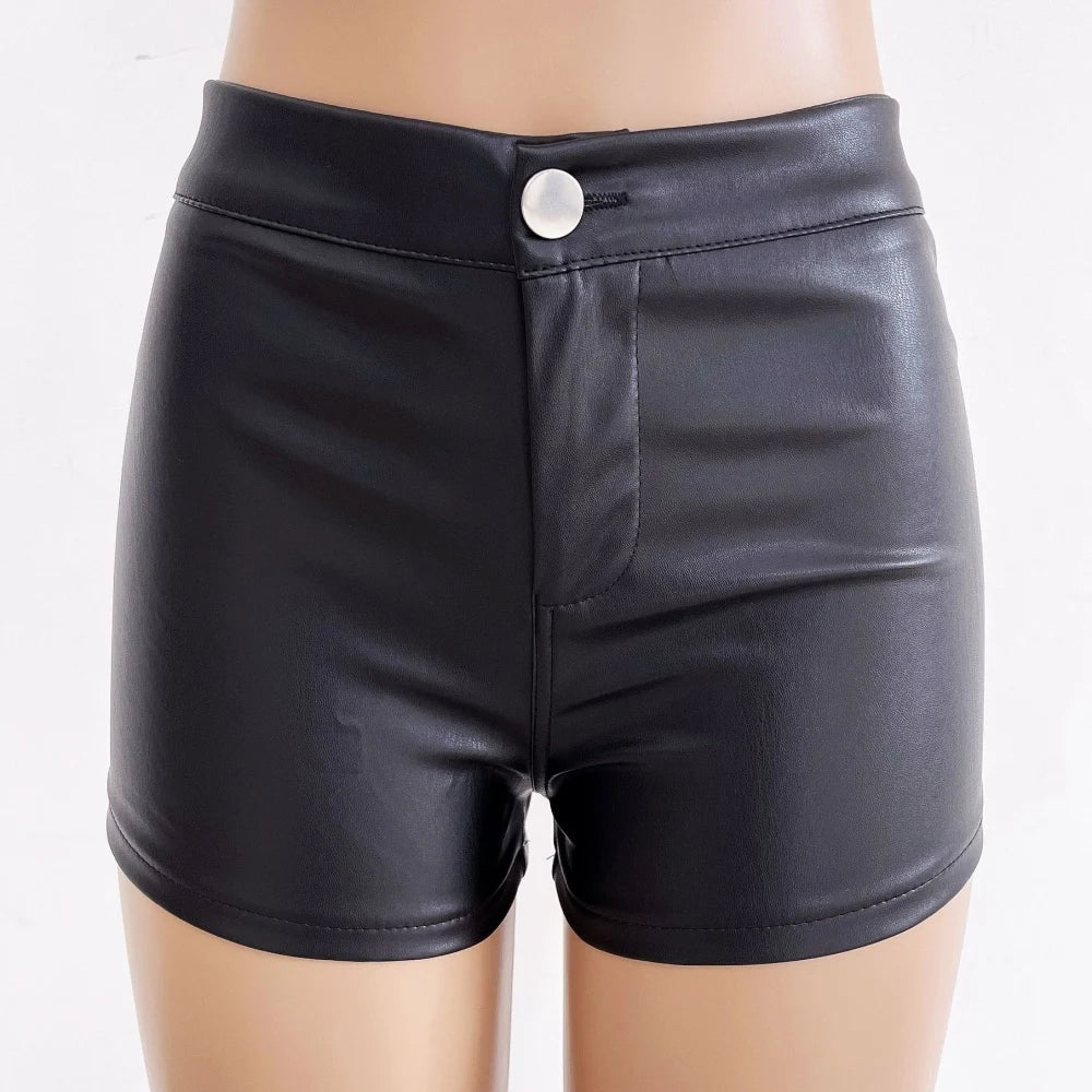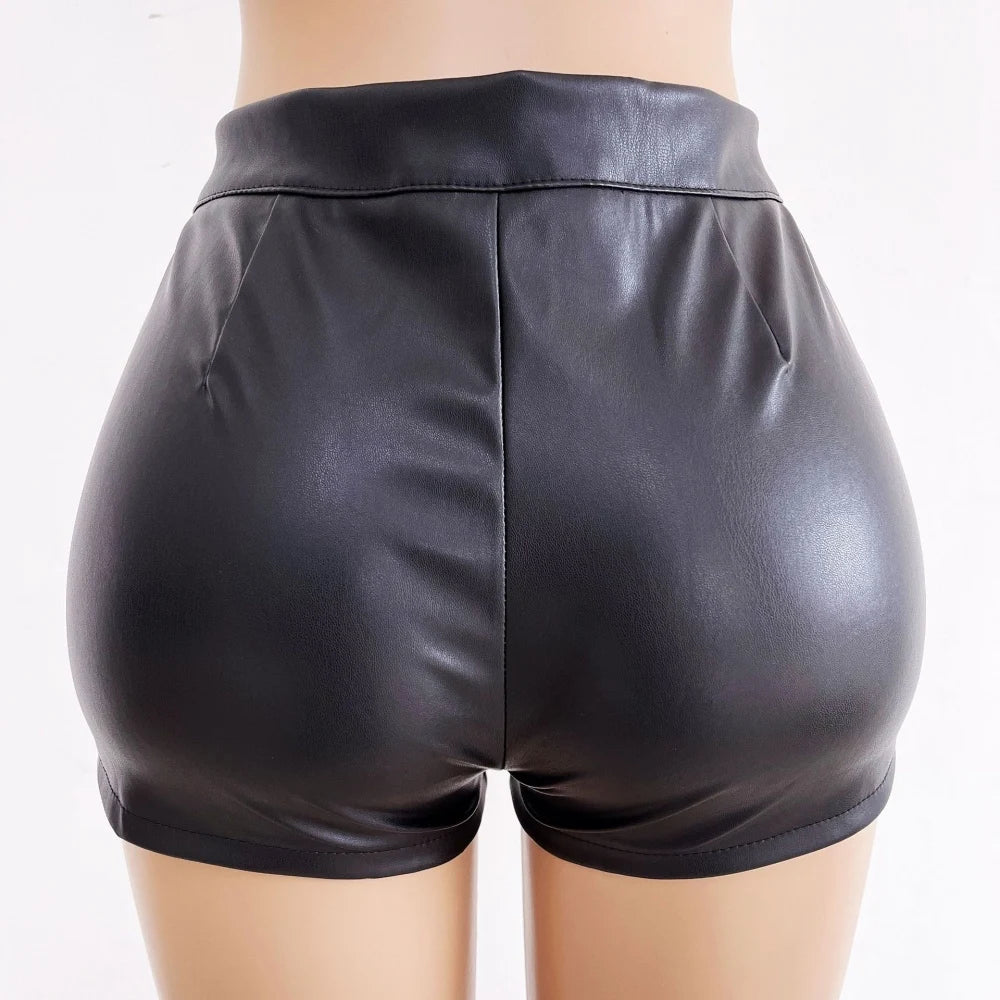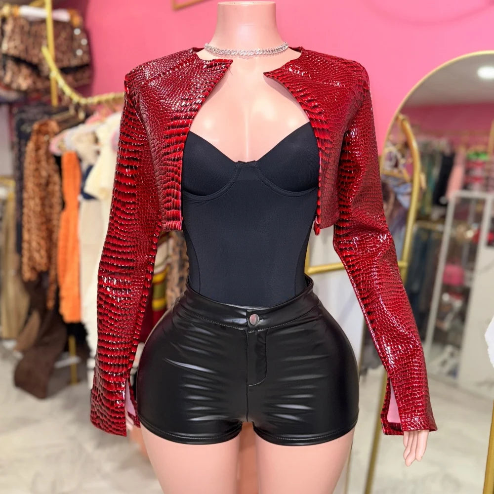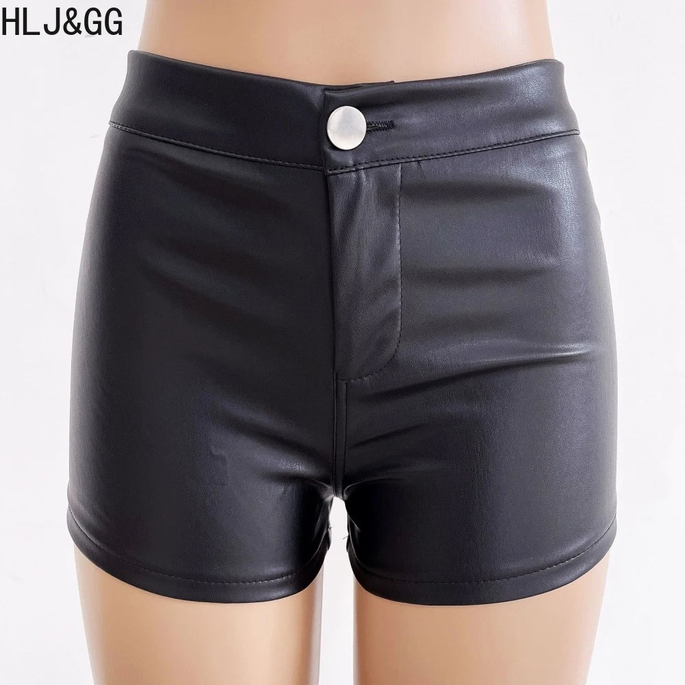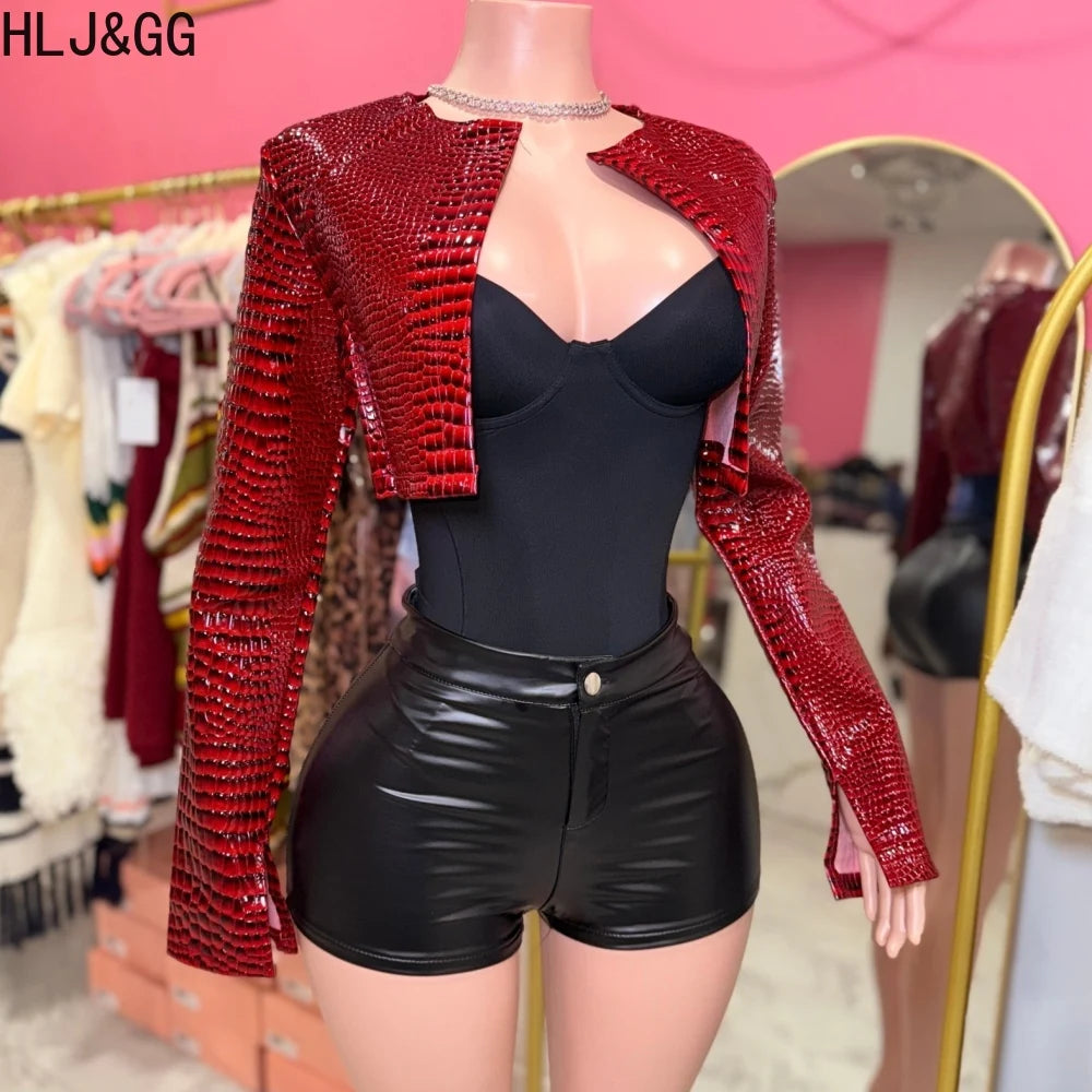 HLJ&GG Fashion Y2K Hot Girl Streetwear Women Leather Long Sleeve Crop Jacket+Bodysuits+Button Shorts 3 Piece Sets Outfits 2025