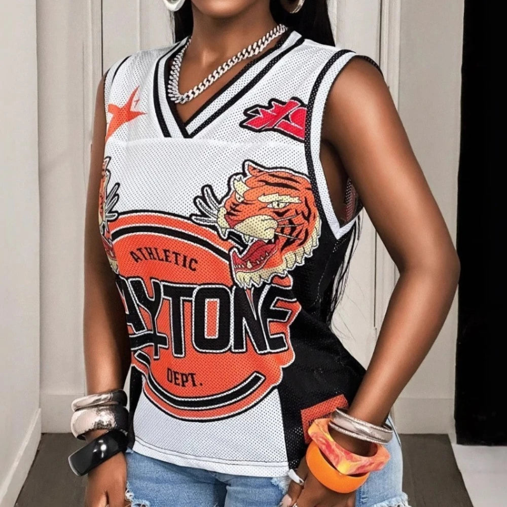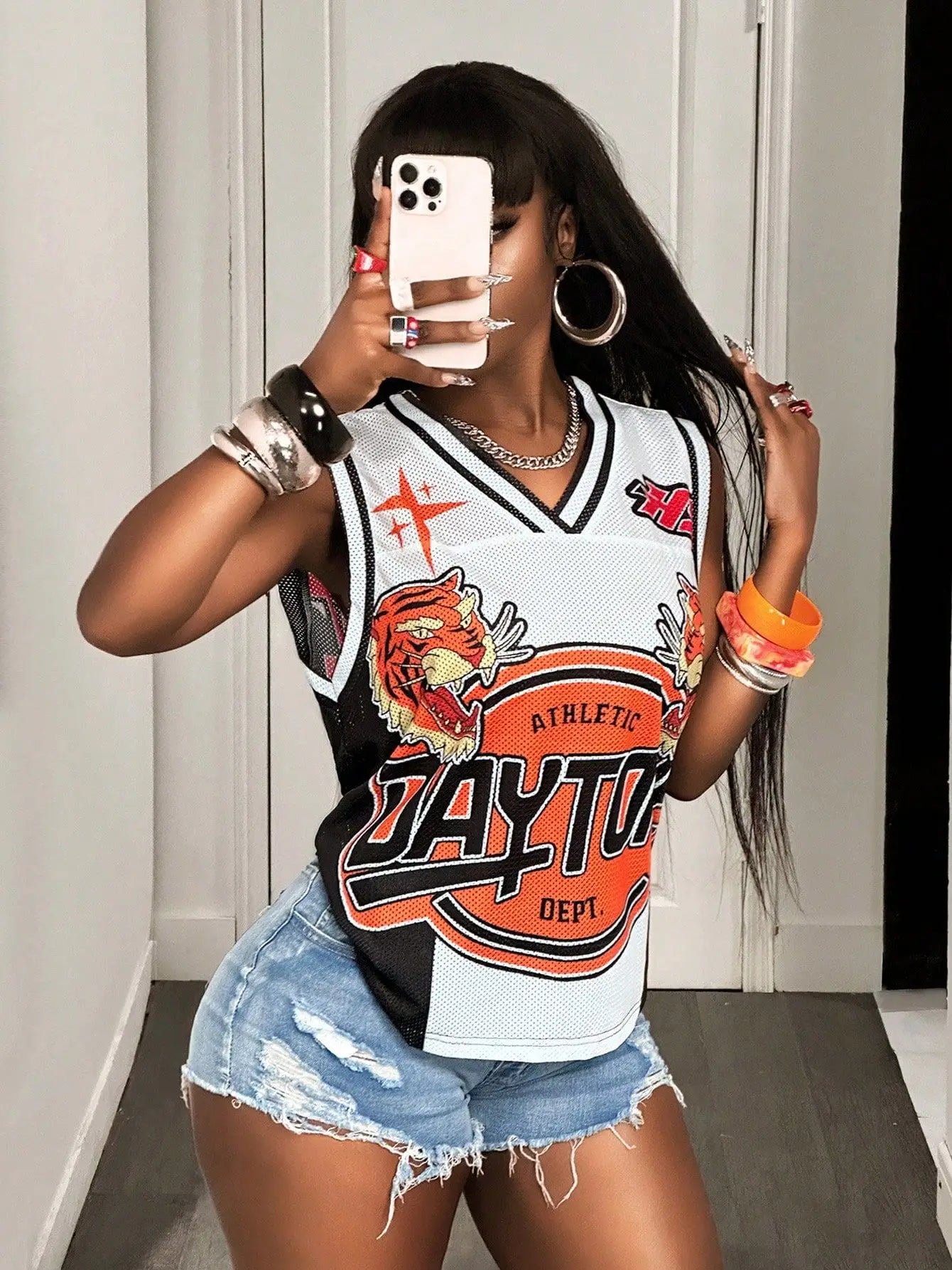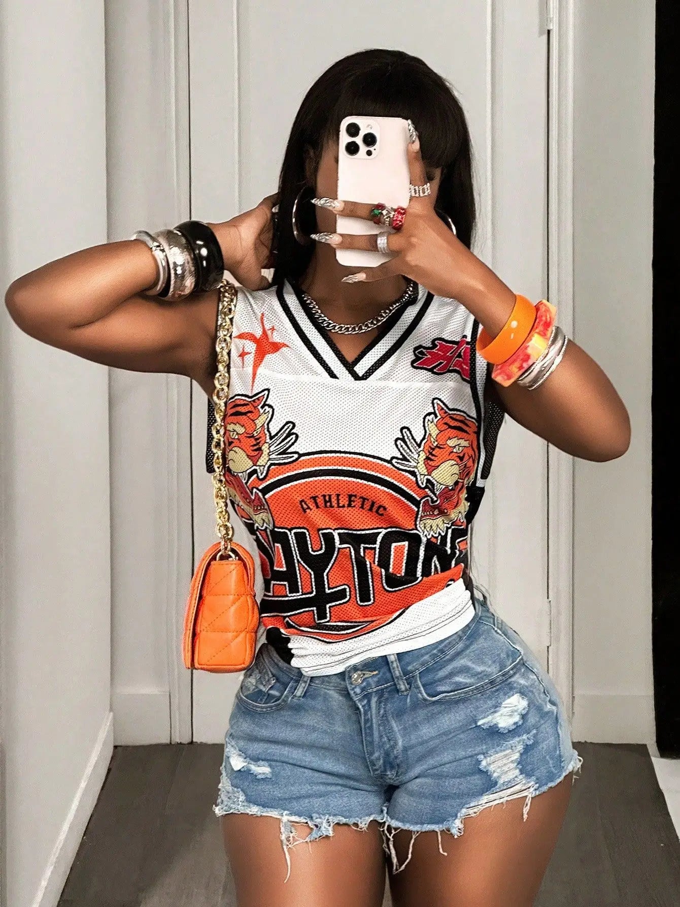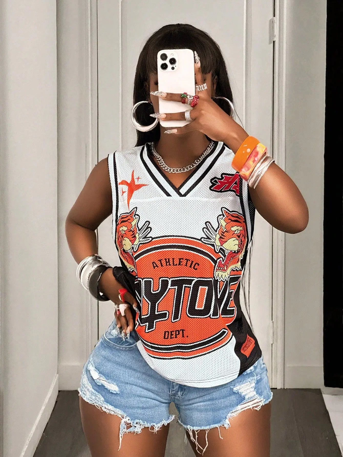 HLJ&GG Fashion Y2K Letter Print Loose Tshirts Two Piece Sets Women Round Neck Sleeveless Top And jeans Shorts Outfits Streetwear