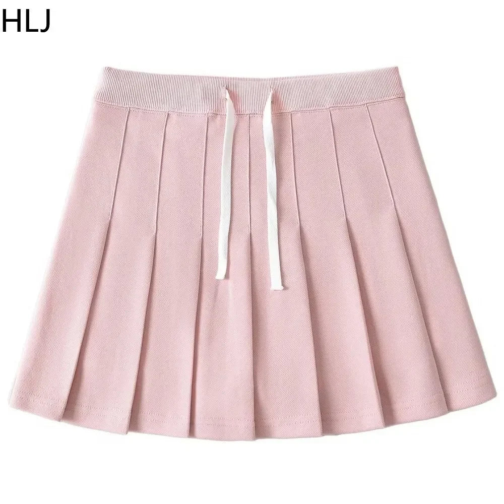 HLJ&GG Pink A-line Pleated Skirts Fashion Two Piece Sets Women Letter V Neck Short Sleeve Loose Tshirt And Mini Skirts Outfits