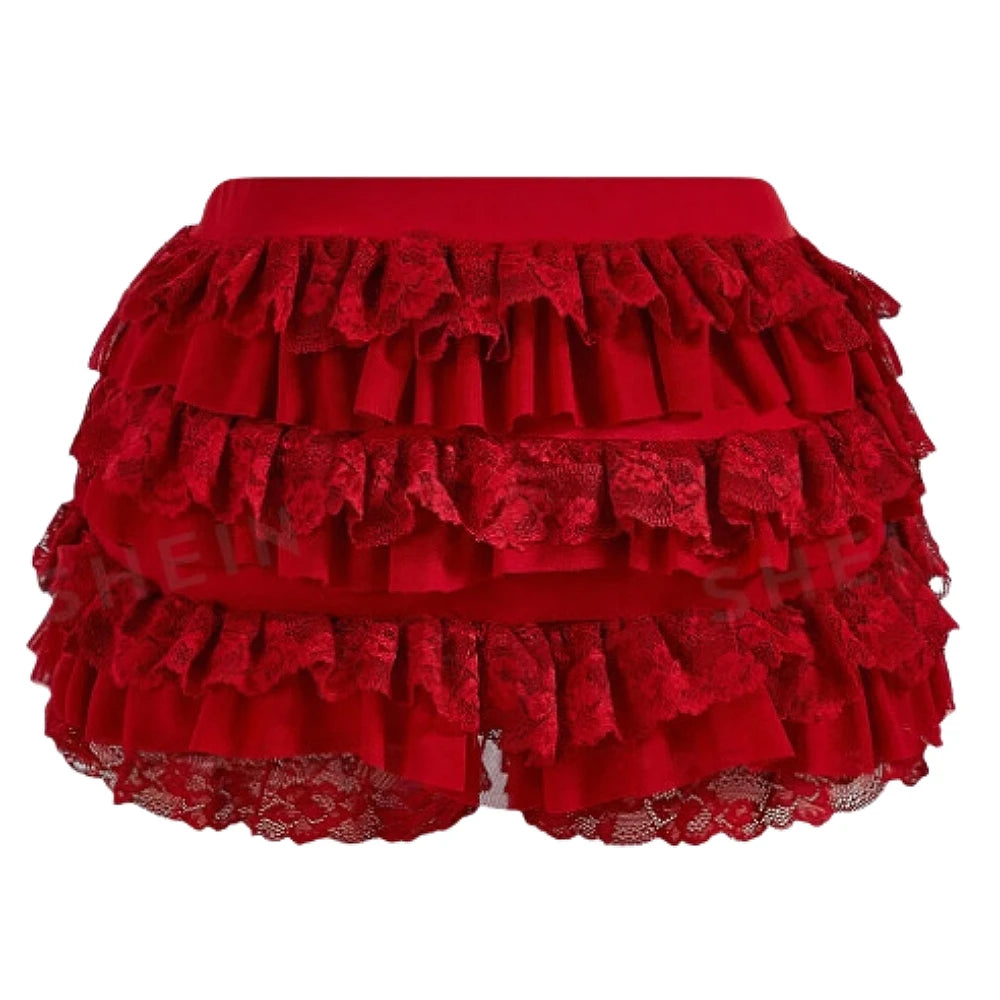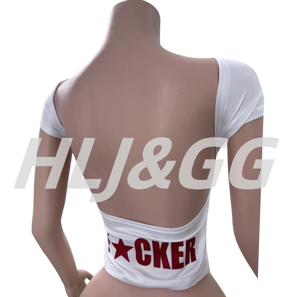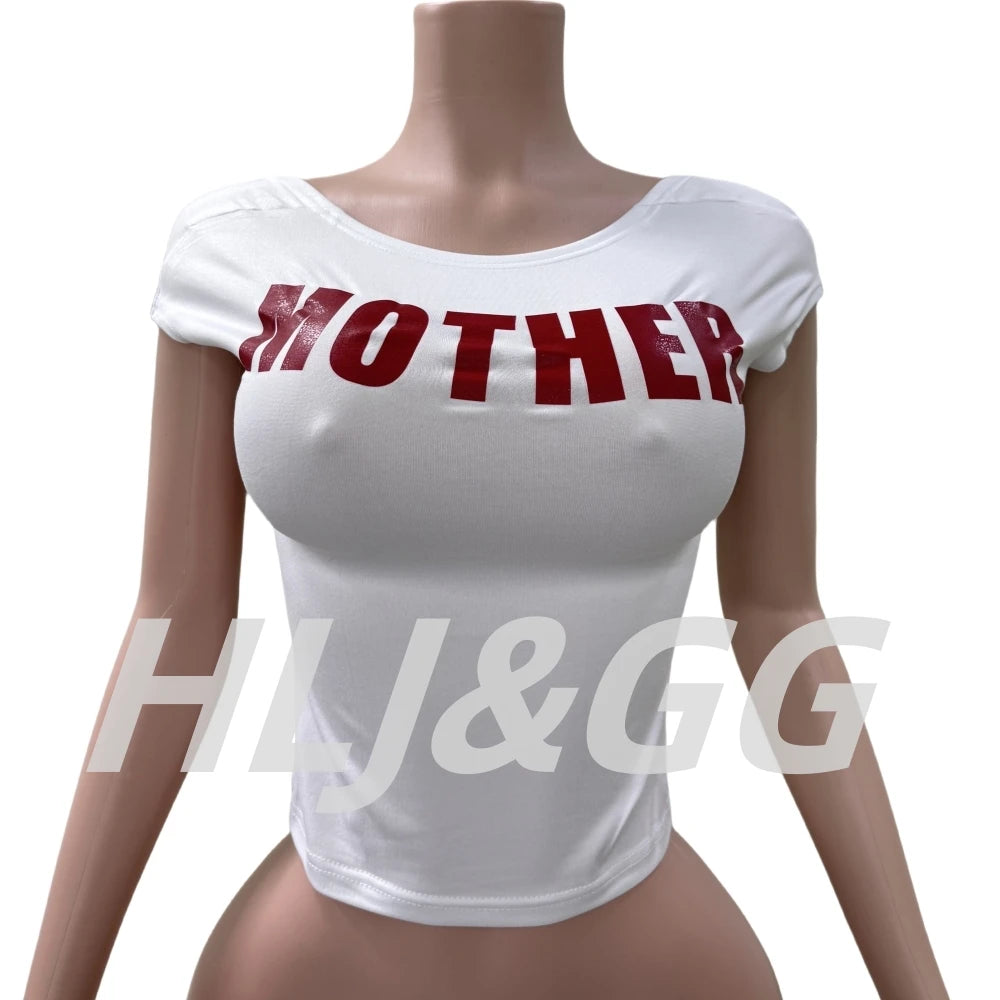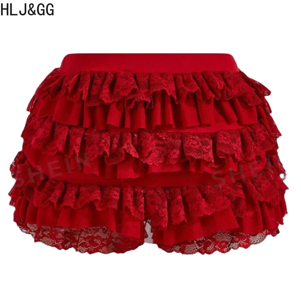 HLJ&GG Red Fashion Letter Backless Tshirts Two Piece Sets Women O Neck Short Sleeve Slim Crop Top And Lace Skirts Shorts Outfits
