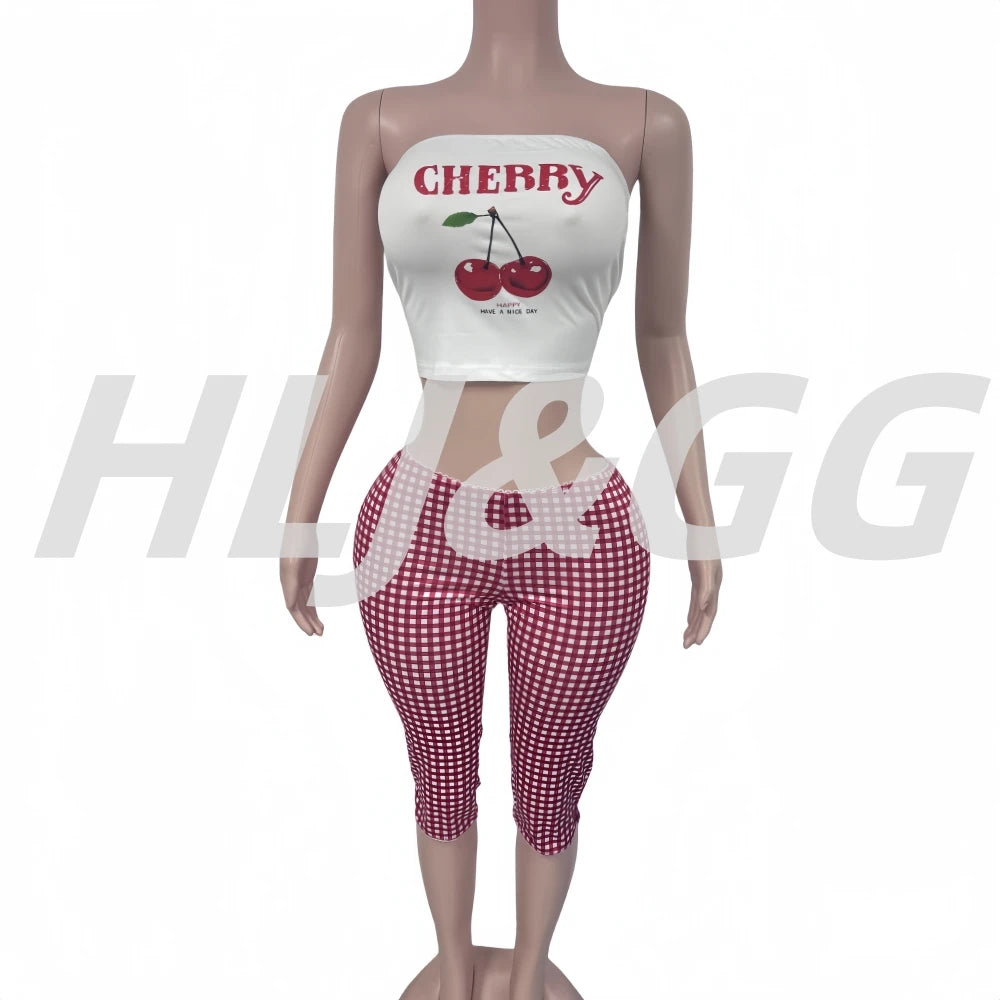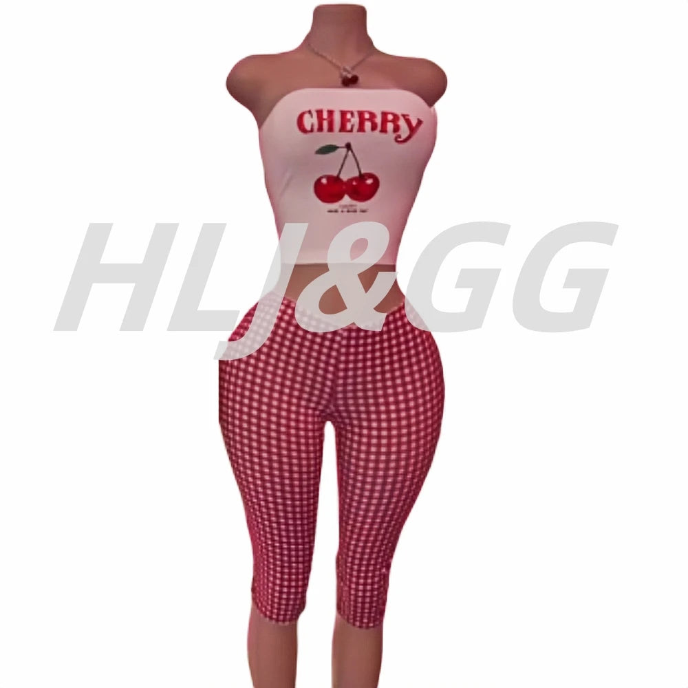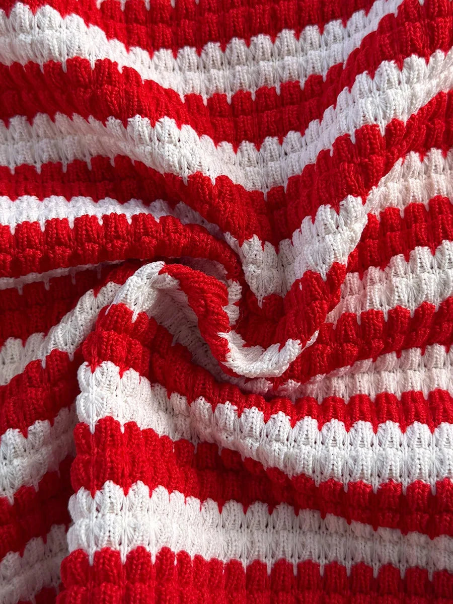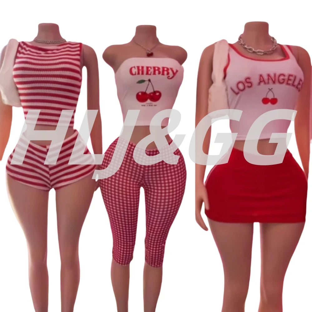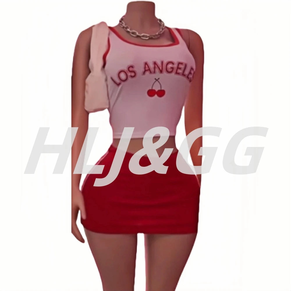 HLJ&GG Red Stripe Knitting Y2K Fashion Streetwear Women O Neck Sleeveless Slim Crop Top And Shorts Two Piece Sets Outfits 2025