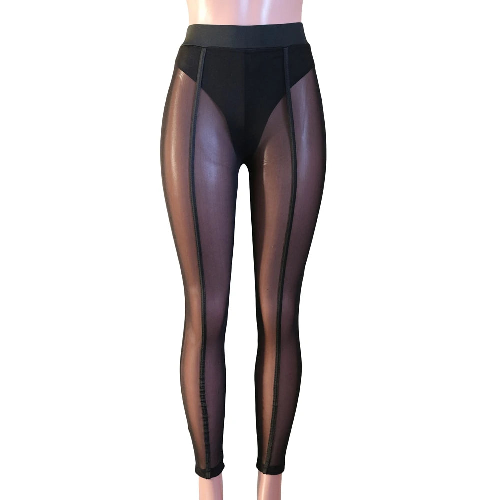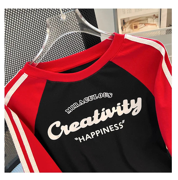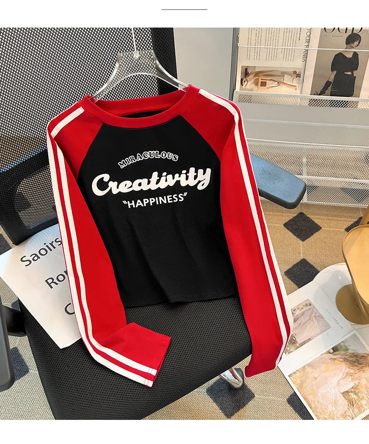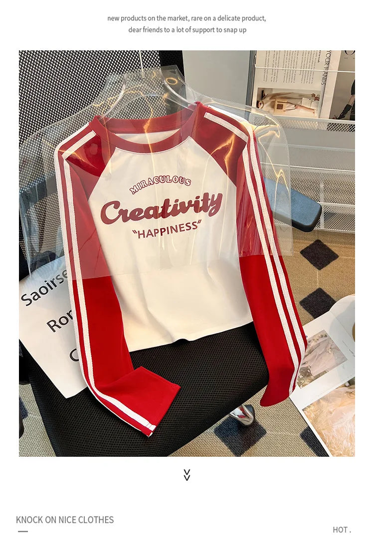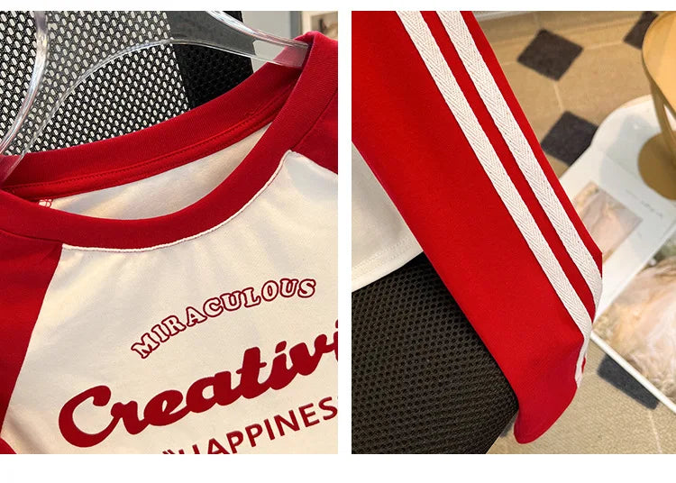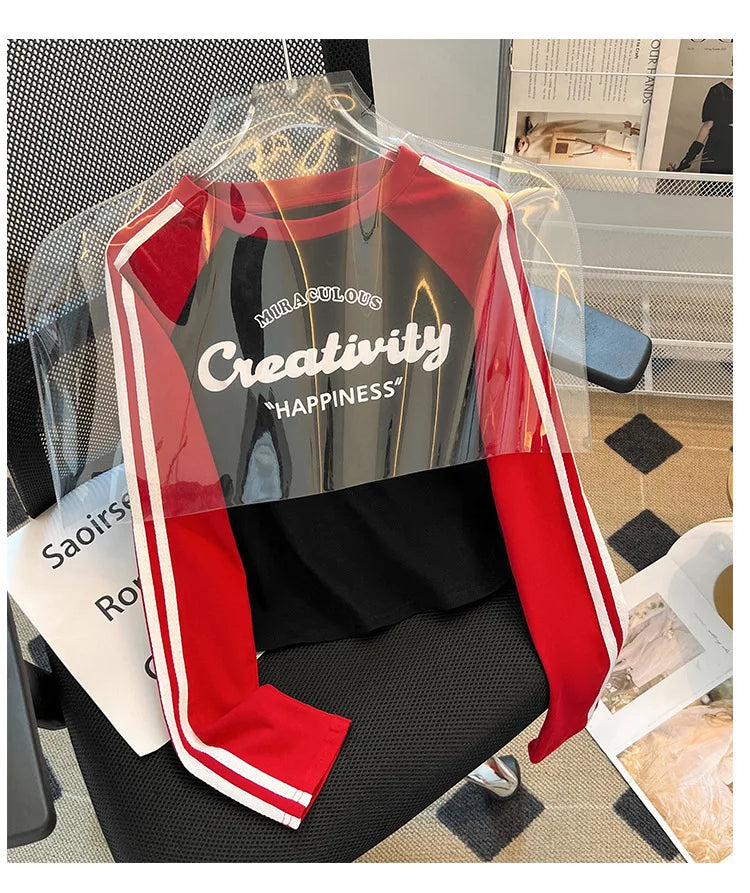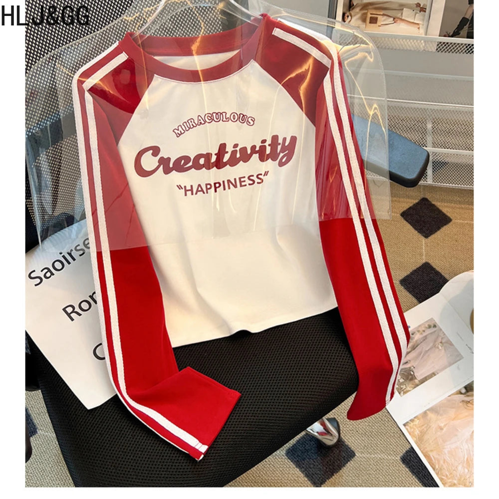 HLJ&GG Retro American Letter Printing Two Piece Sets Women Round Neck Long Sleeve Top And Mesh See Though Pants Outfits 2025 New