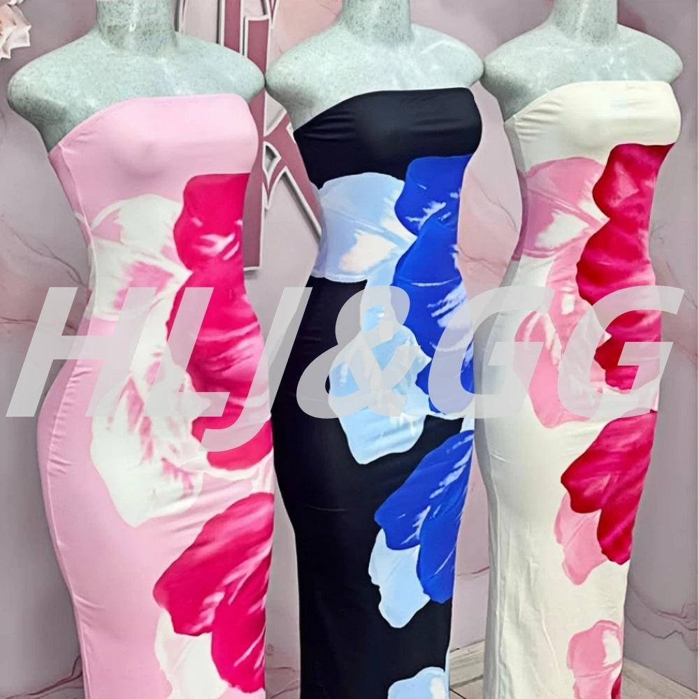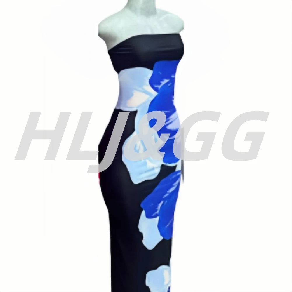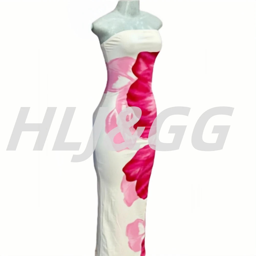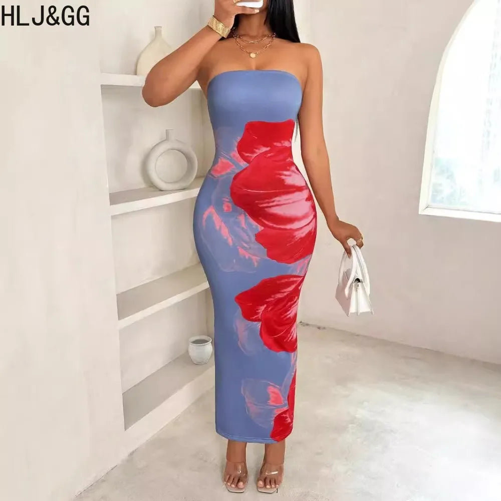 HLJ&GG Sexy Flowers Printing Bodycon Maxi Dresses Women Off Shoulder Sleeveless Backless Slim Vestidos Fashion Streetwear 2025