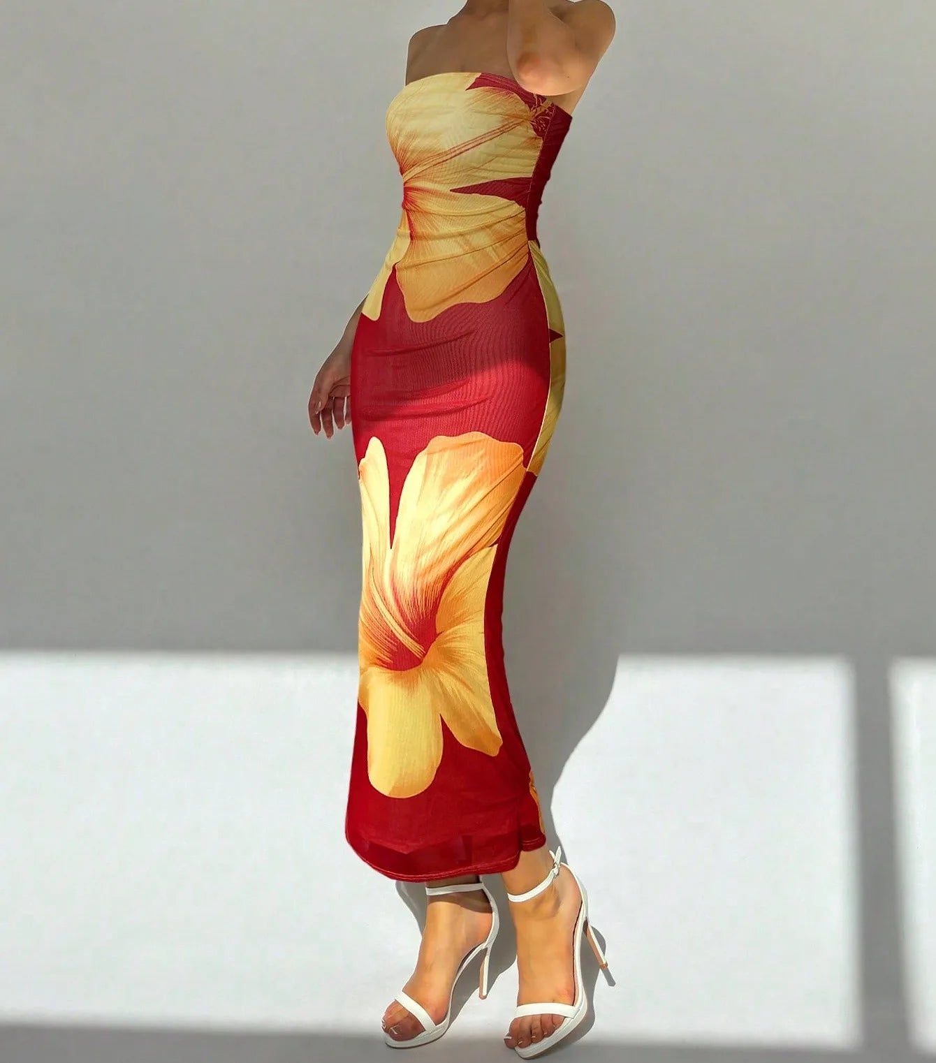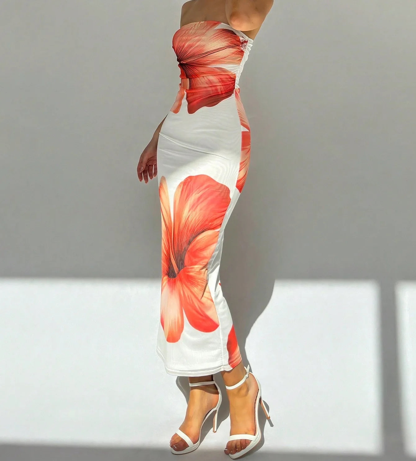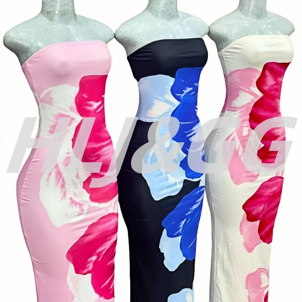 HLJ&GG Sexy Flowers Printing Bodycon Maxi Dresses Women Off Shoulder Sleeveless Backless Slim Vestidos Fashion Streetwear 2025