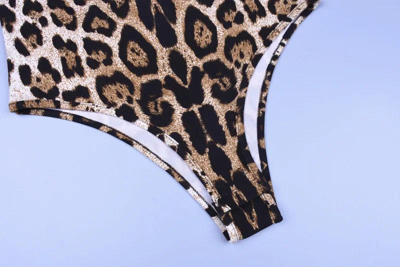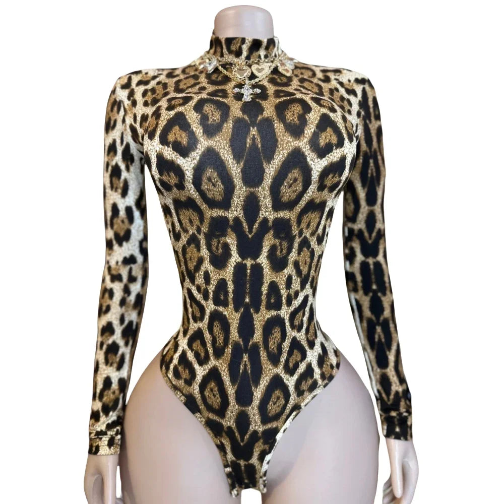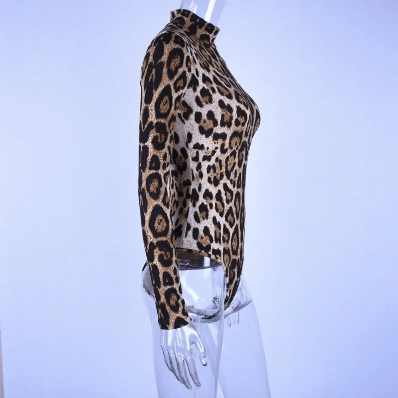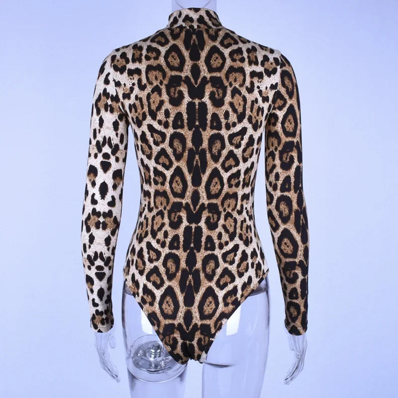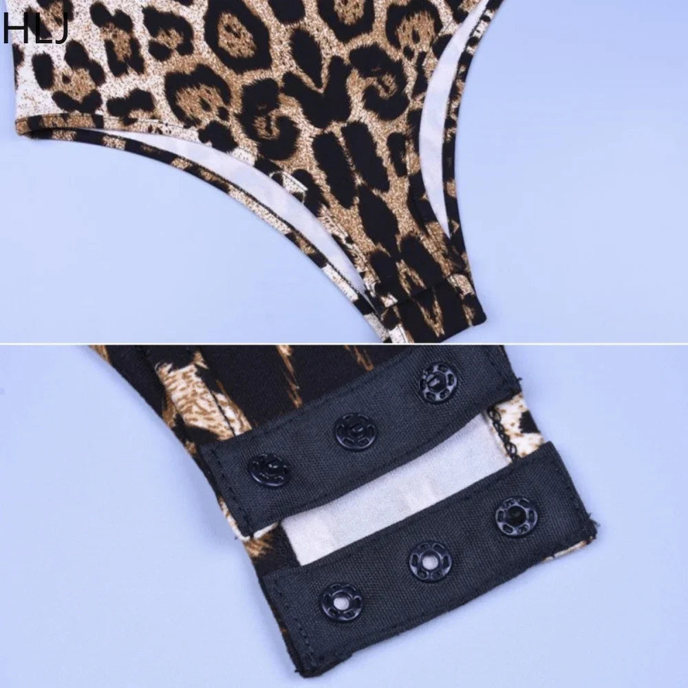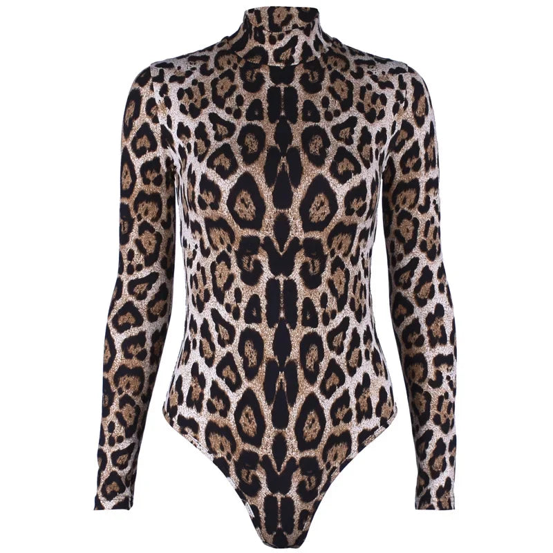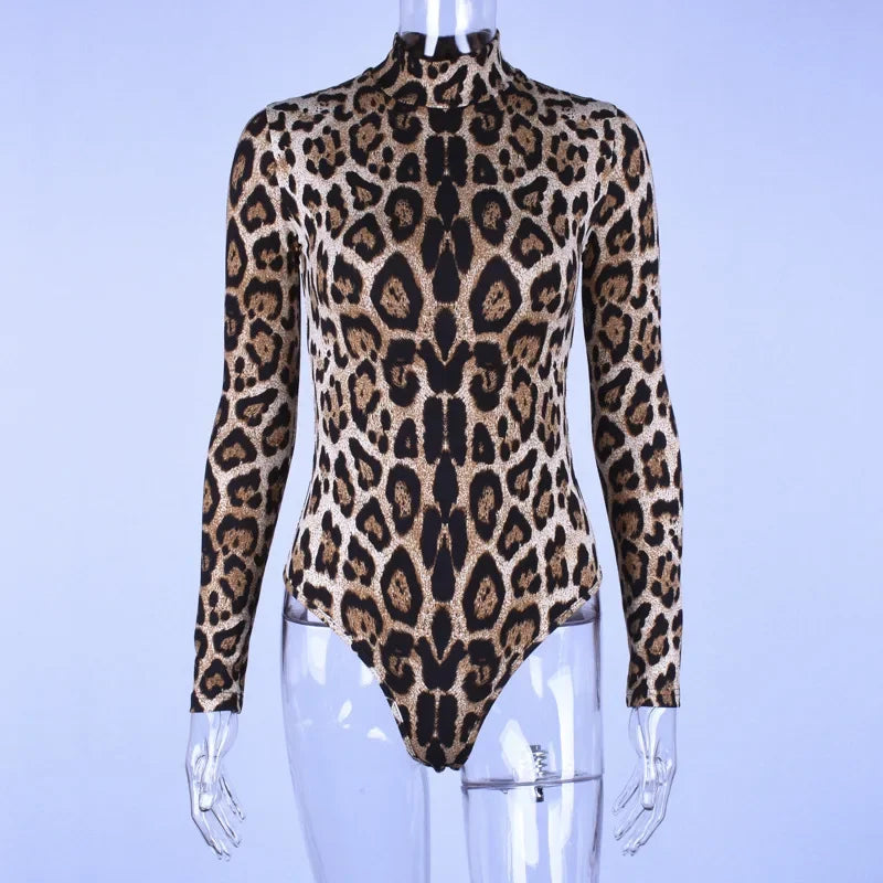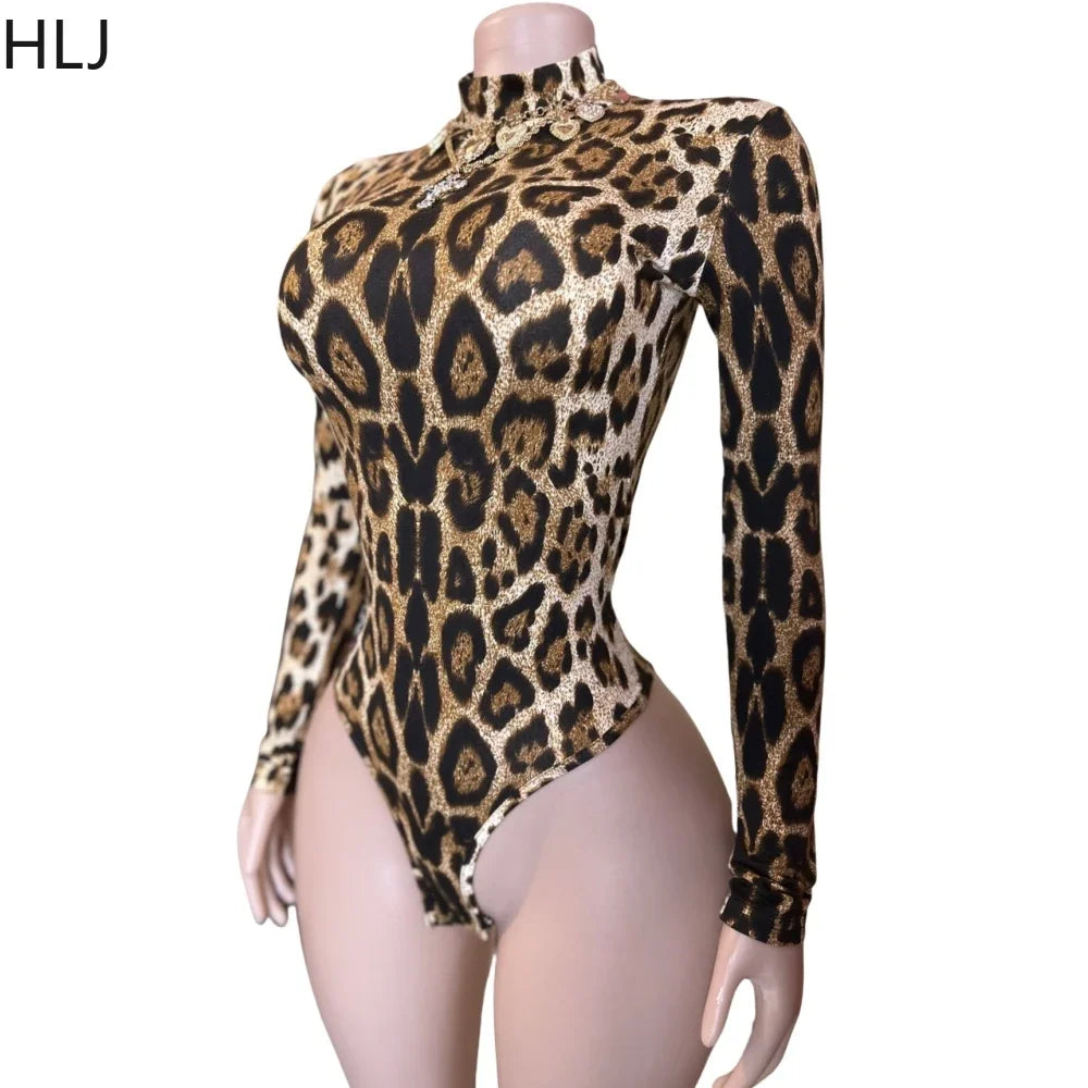 HLJ&GG Sexy Leopard Bodycon Bodysuits Women Turtleneck Long Sleeve Slim Romper Spring New Fashion One Piece Jumpsuit Clubwear