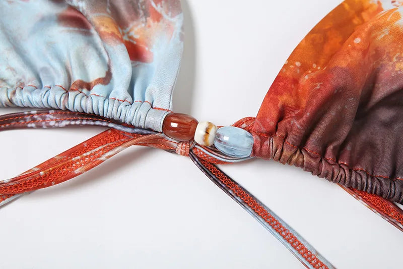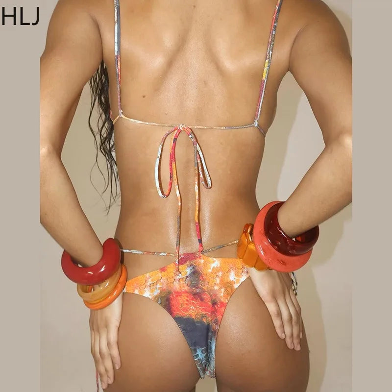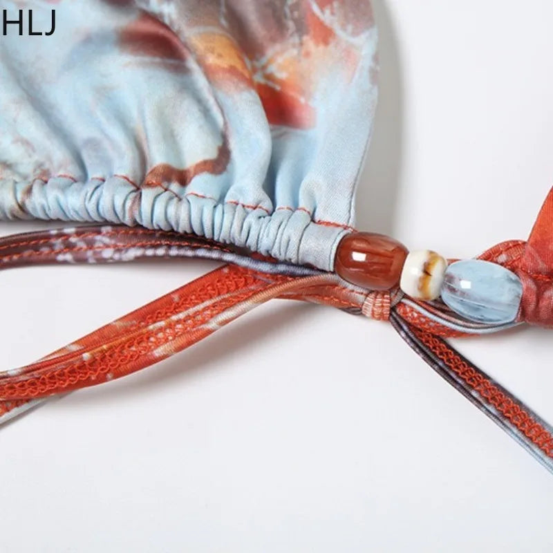 HLJ&GG Sexy Printing 2 Piece Sets Woman Outfits Spaghetti Strap Crop Bra Top+Bikini Shorts + Skirt Matching Suit Female Holiday