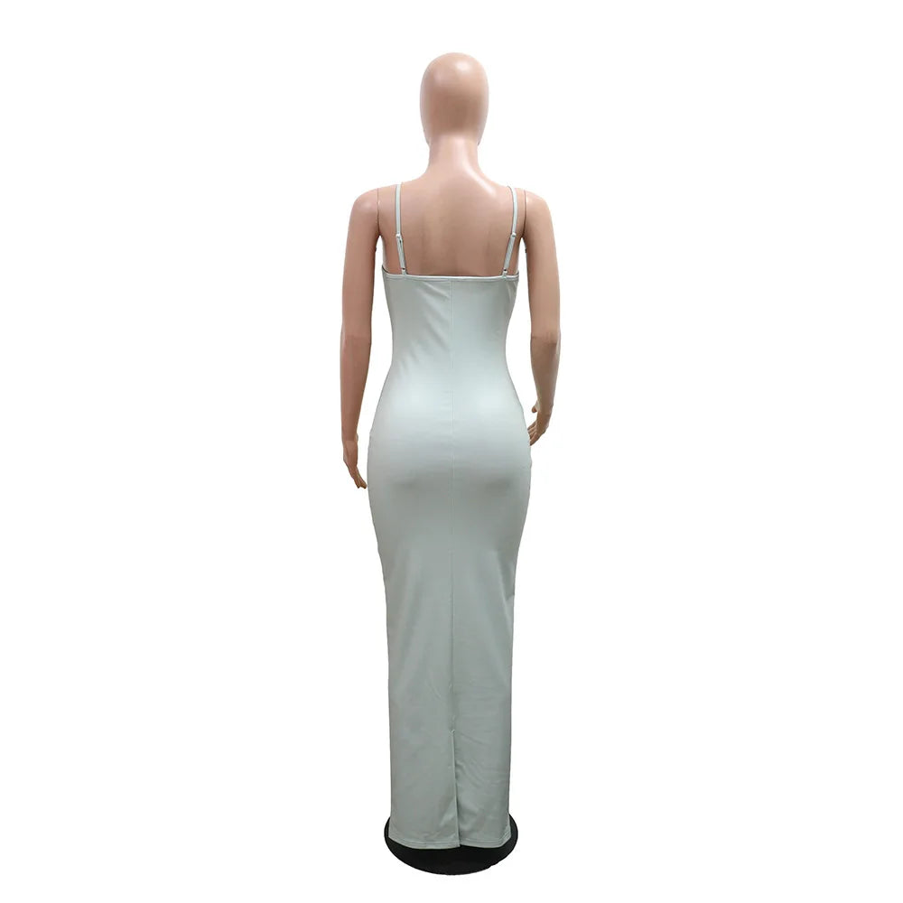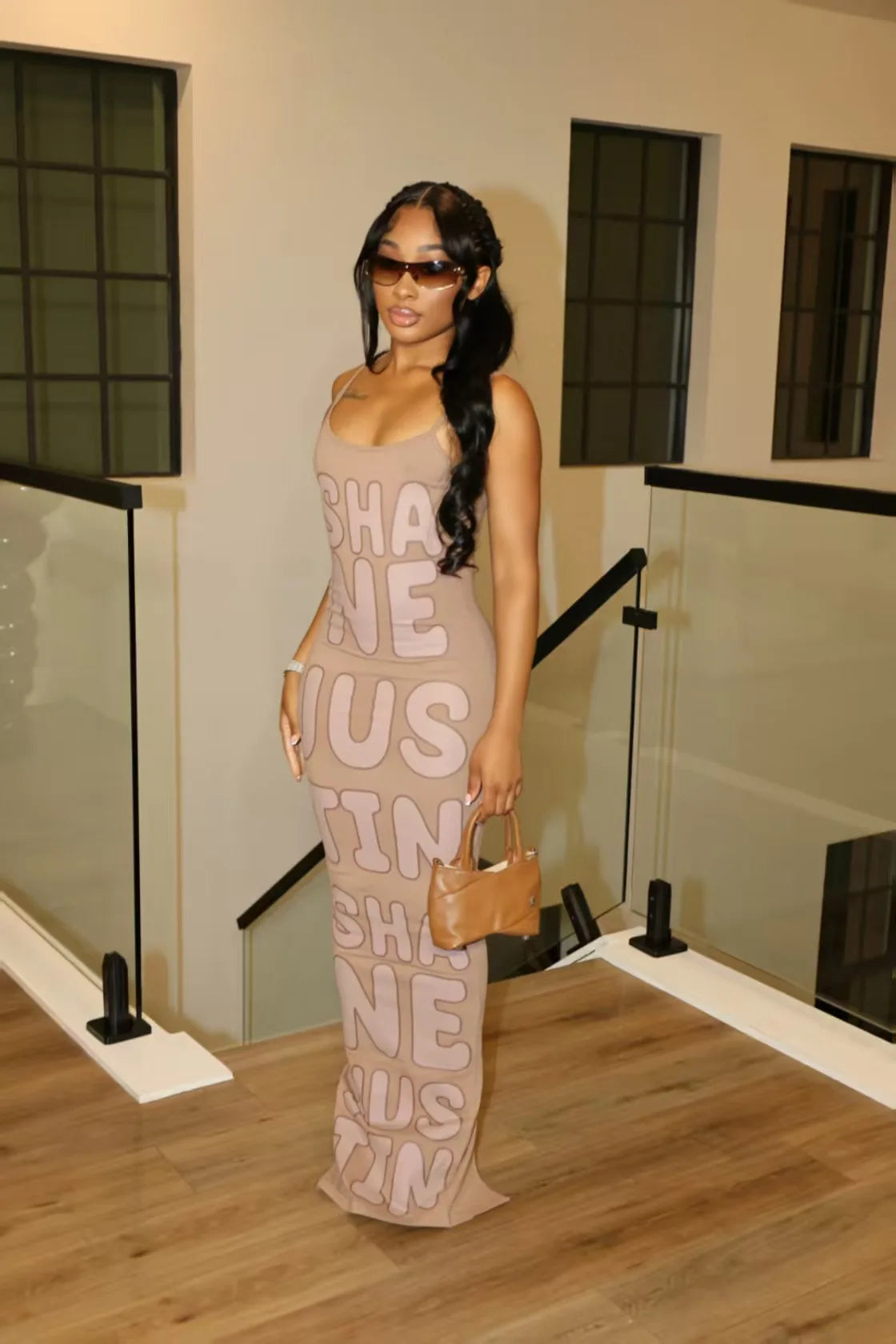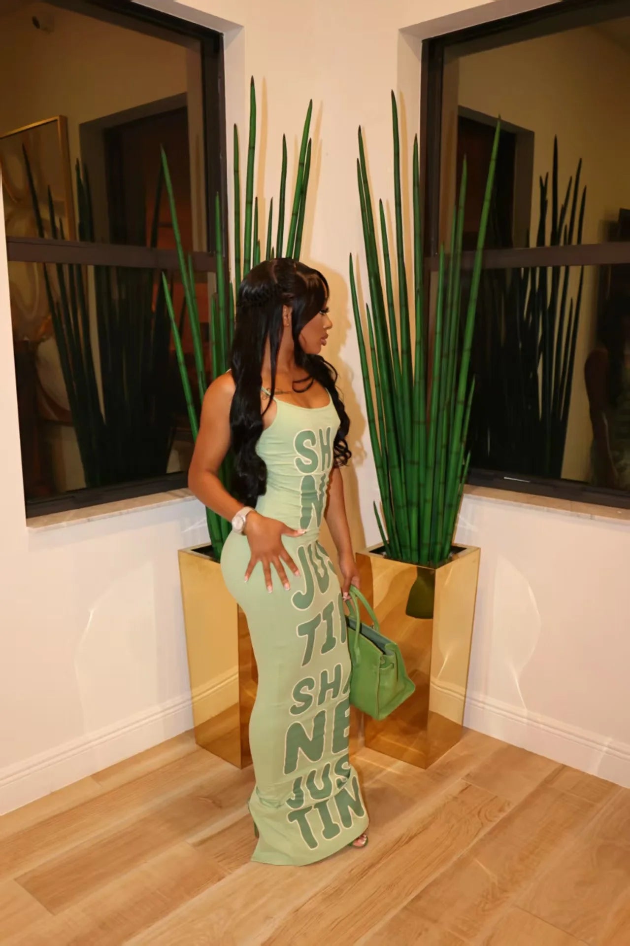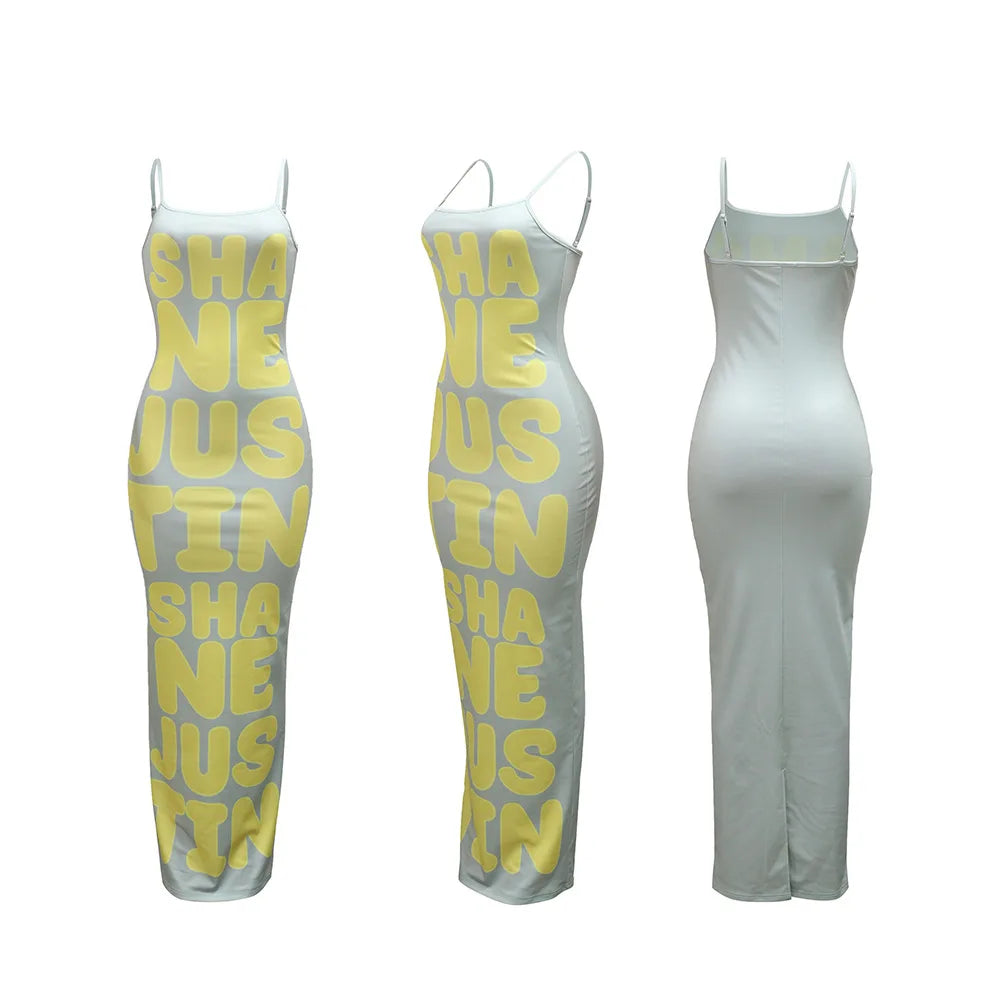 HLJ&GG Summer New Letter Print Bodycon Spaghetti Strap Long Dresses Women Sleeveless Backless Slim Vestidos Fashion Streetwear