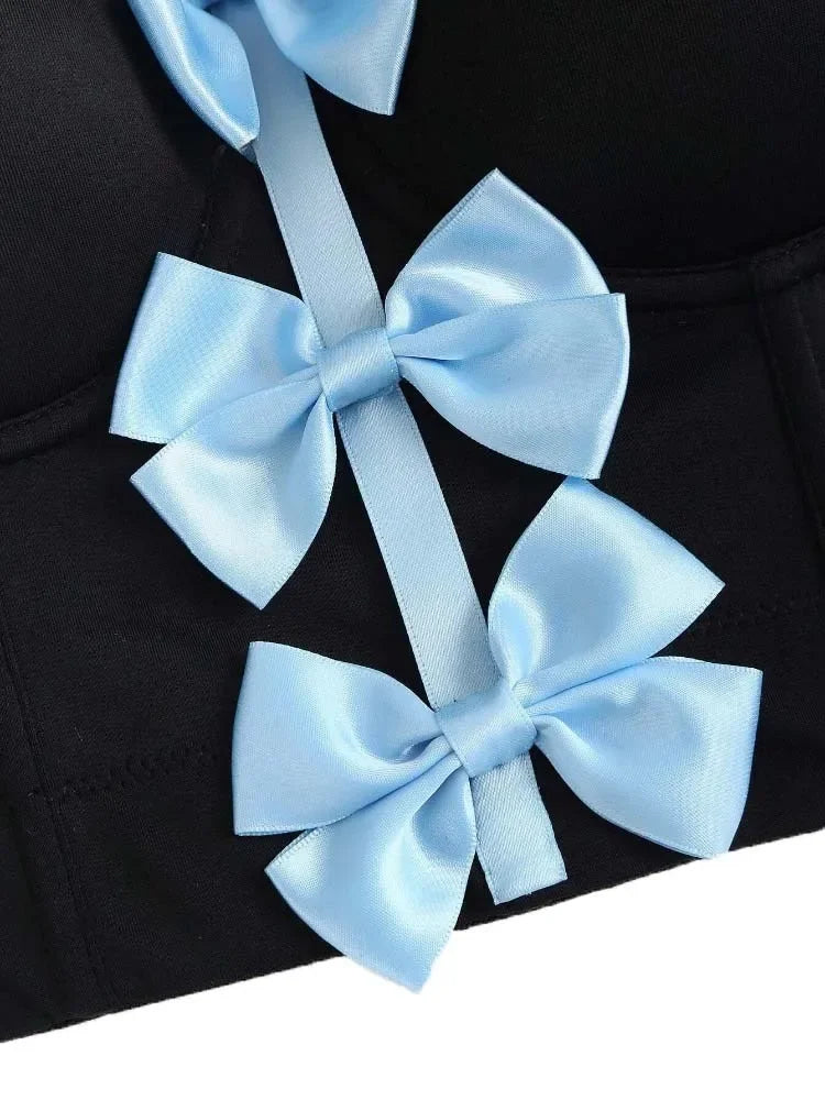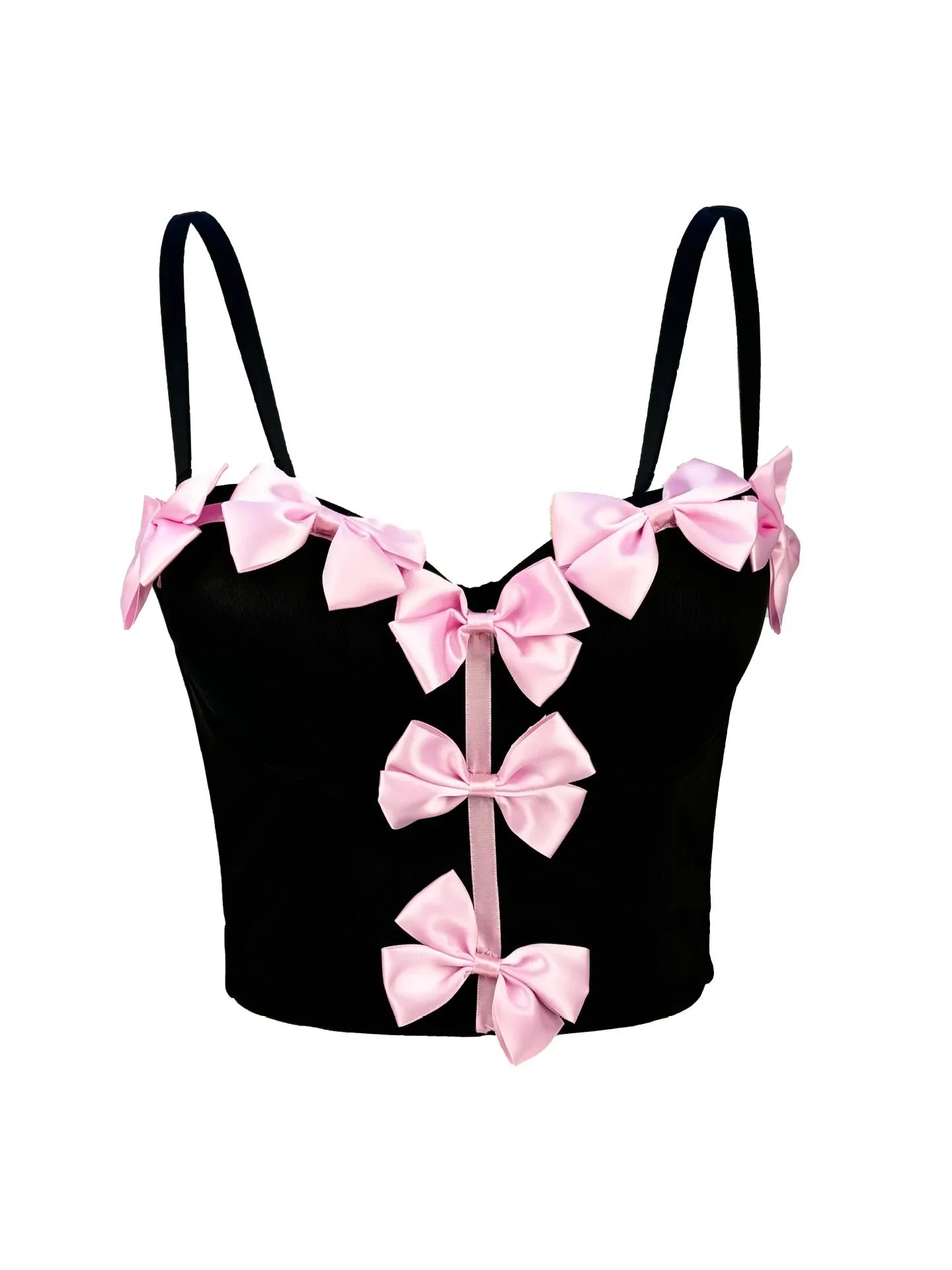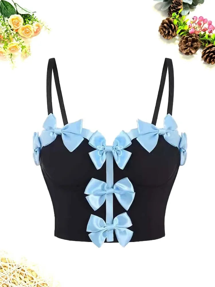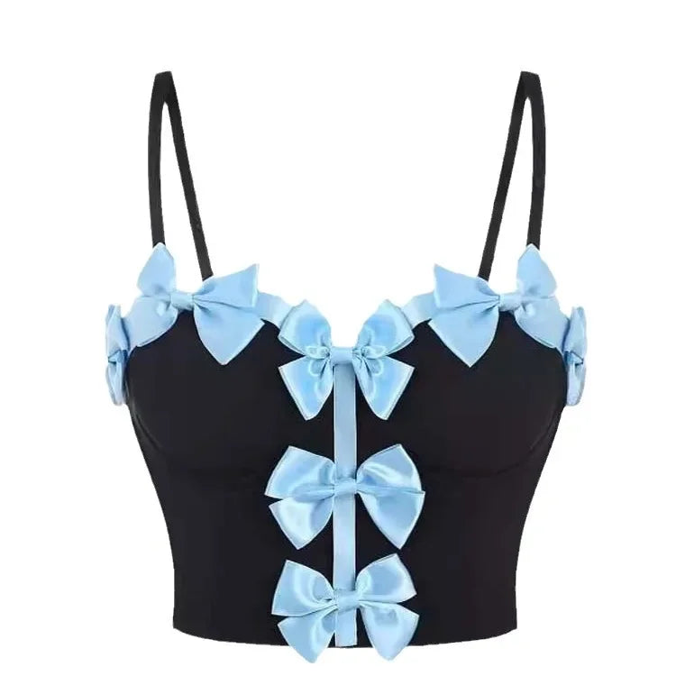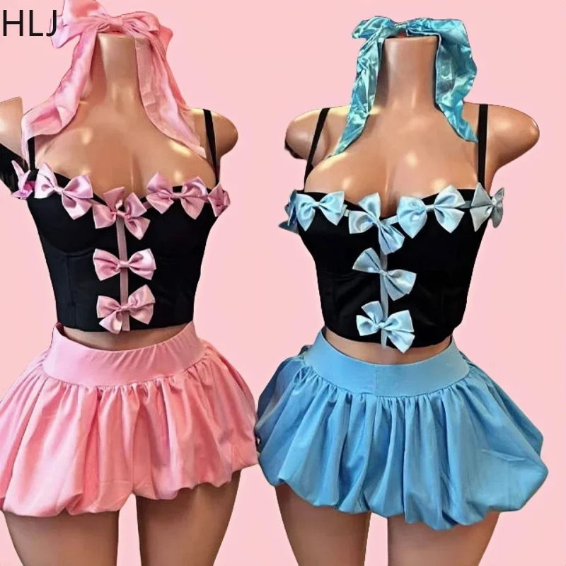 Sweet Bow Fashion, Two Piece Sets Women Thin Strap Slim Tank Top + Puffy Mini Skirts Outfits Female Streetwear