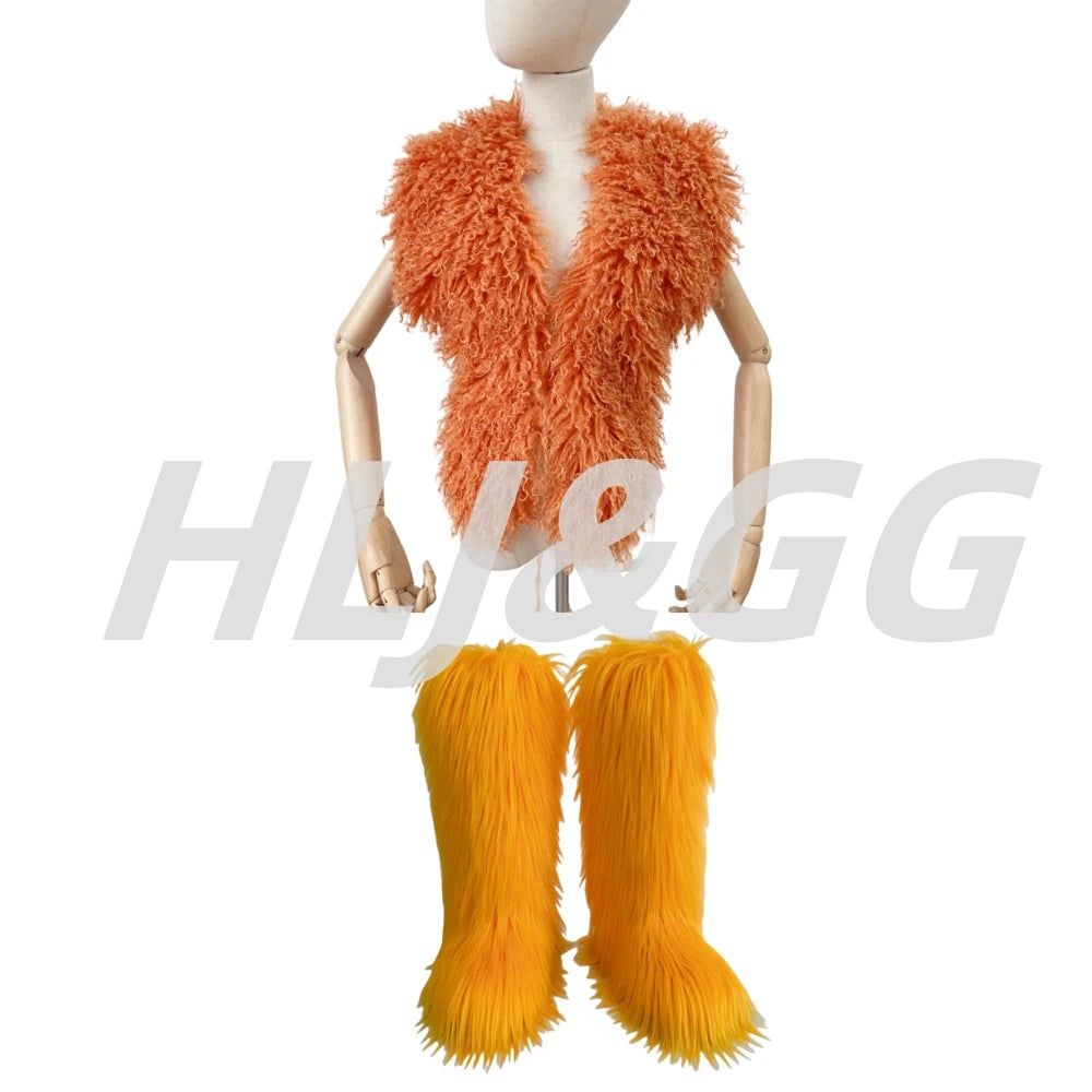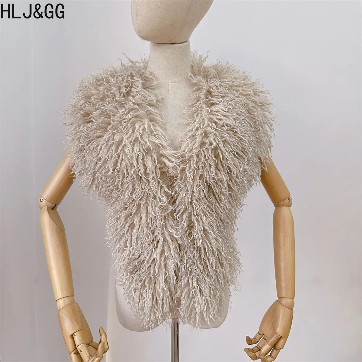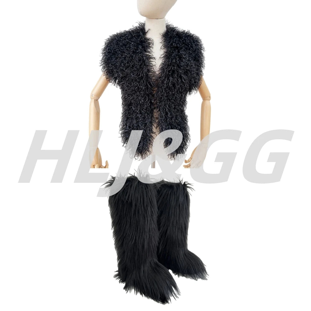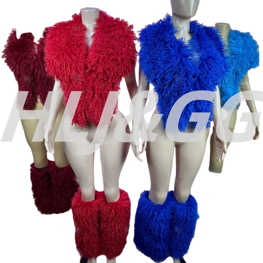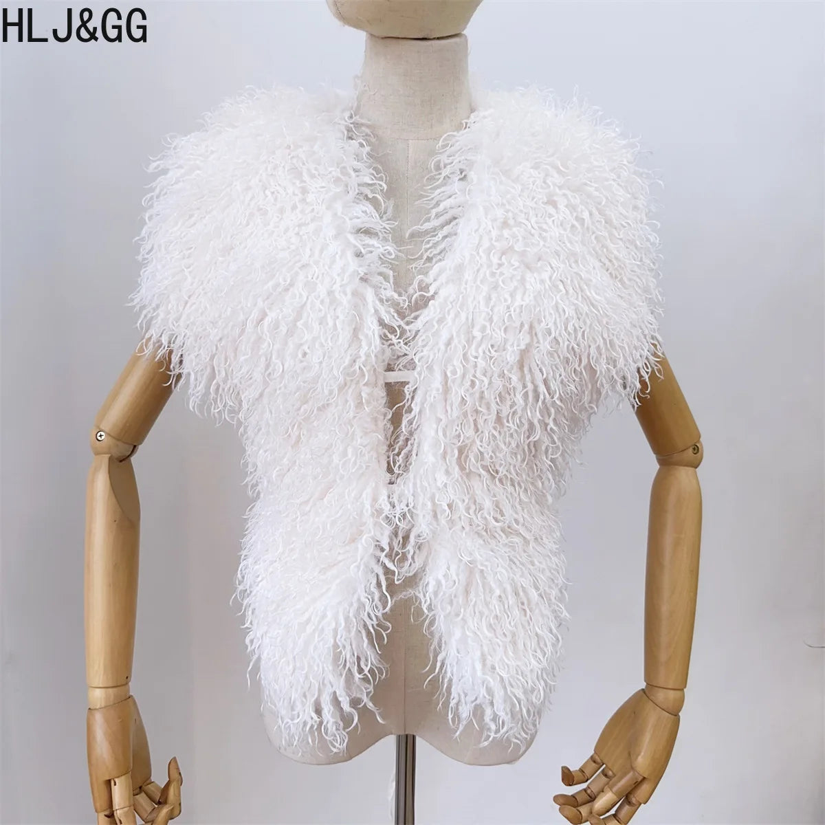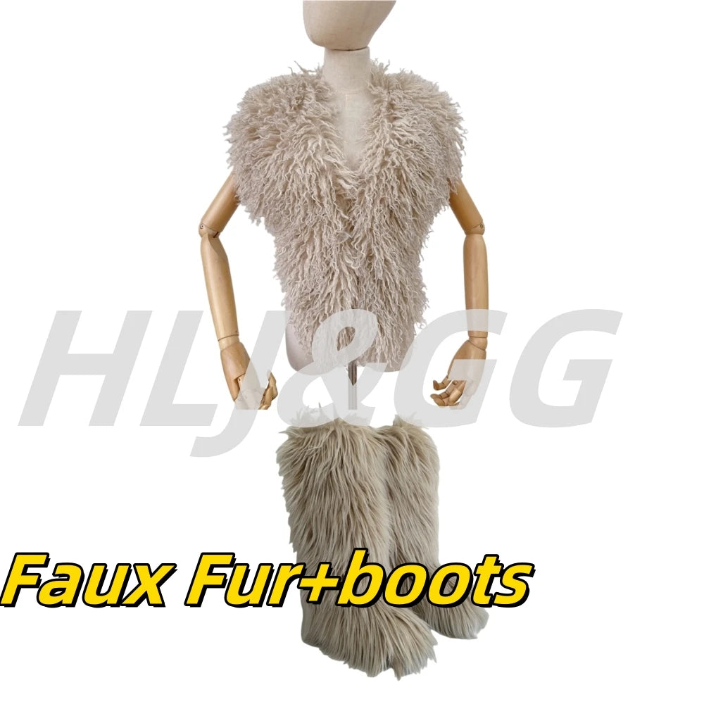 HLJ&GG Trend Y2K Two Piece Sets Women Fur Feather Halter Waistcoat Fashion Backless Lace Up Legs Cover Streetwear Clothing 2025