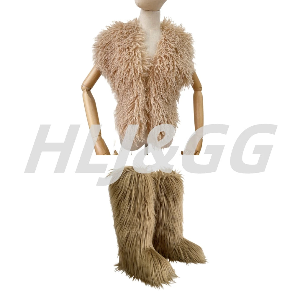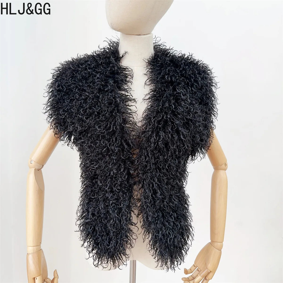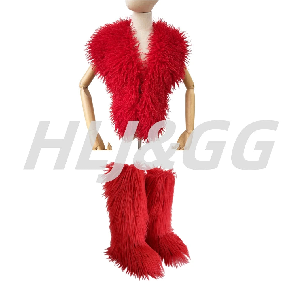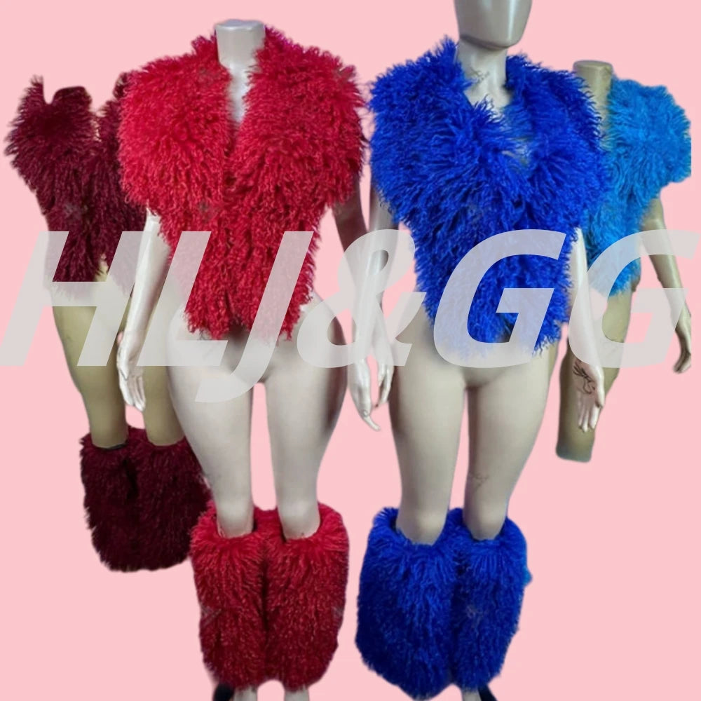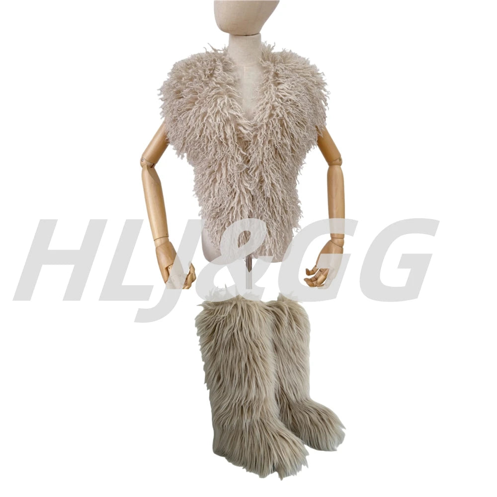 HLJ&GG Trend Y2K Two Piece Sets Women Fur Feather Halter Waistcoat Fashion Backless Lace Up Legs Cover Streetwear Clothing 2025