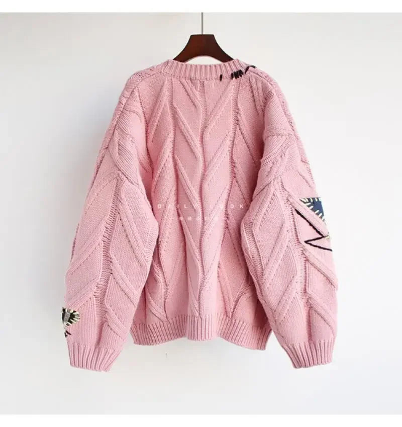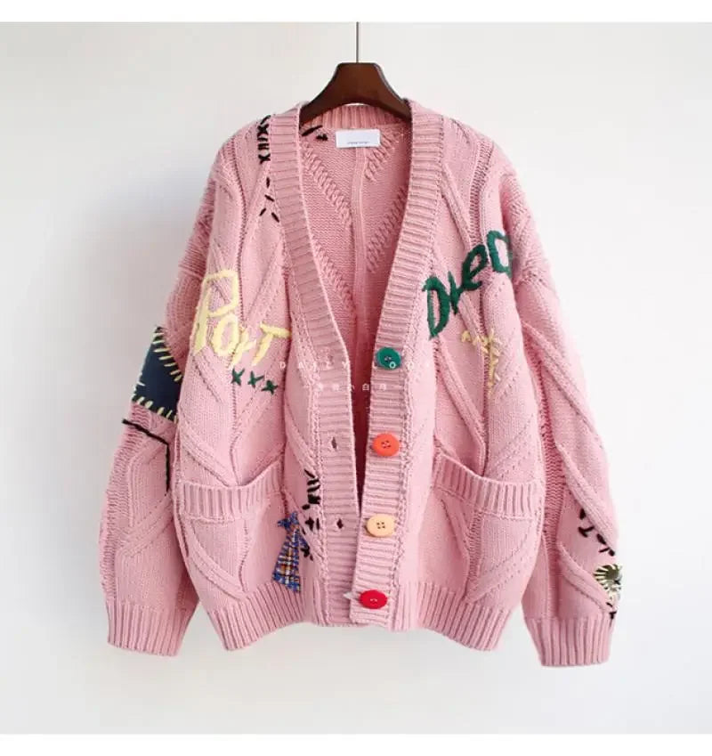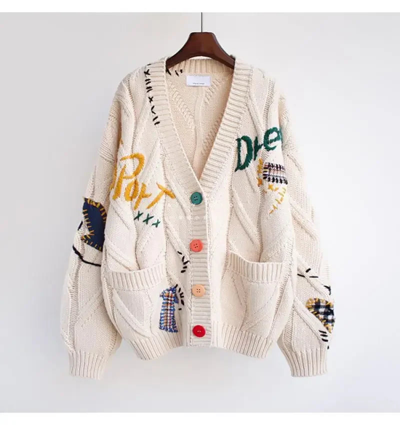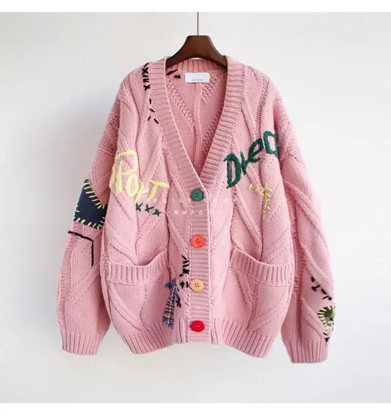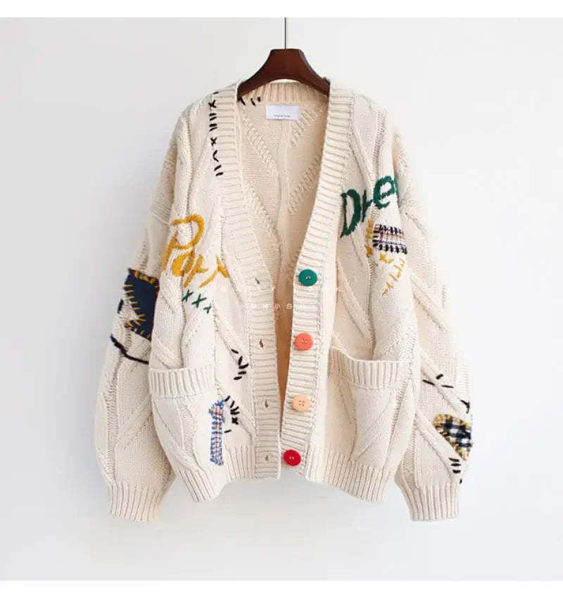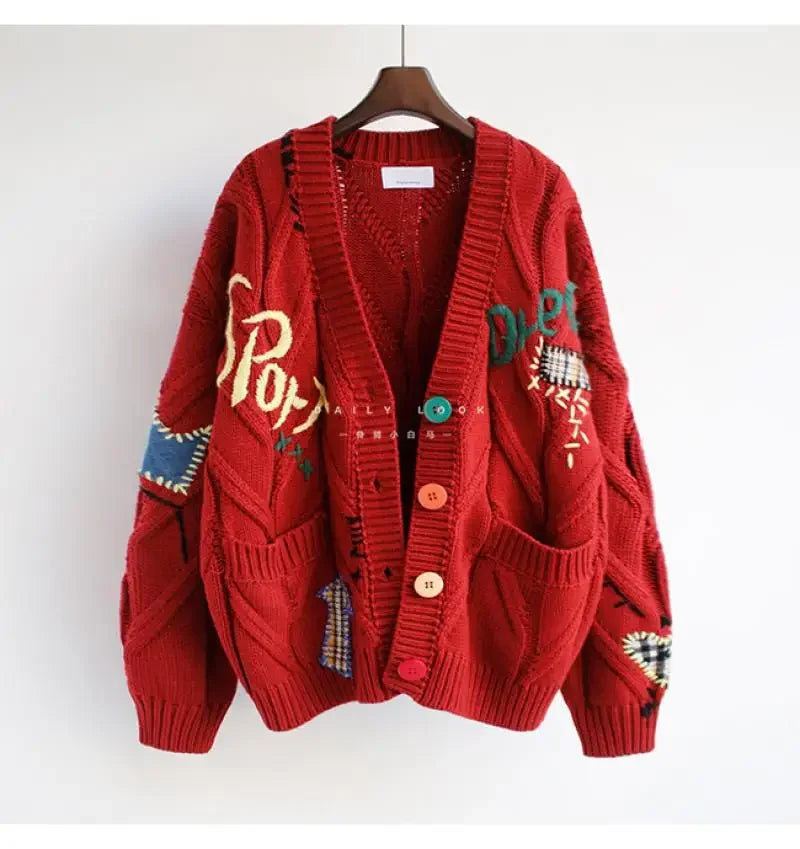 HLJ&GG Winter Embroidery Knit Sweater Coats Two Piece Sets Women Button Long Sleeve Top And Plaid Aline Skirts Outfit Streetwear