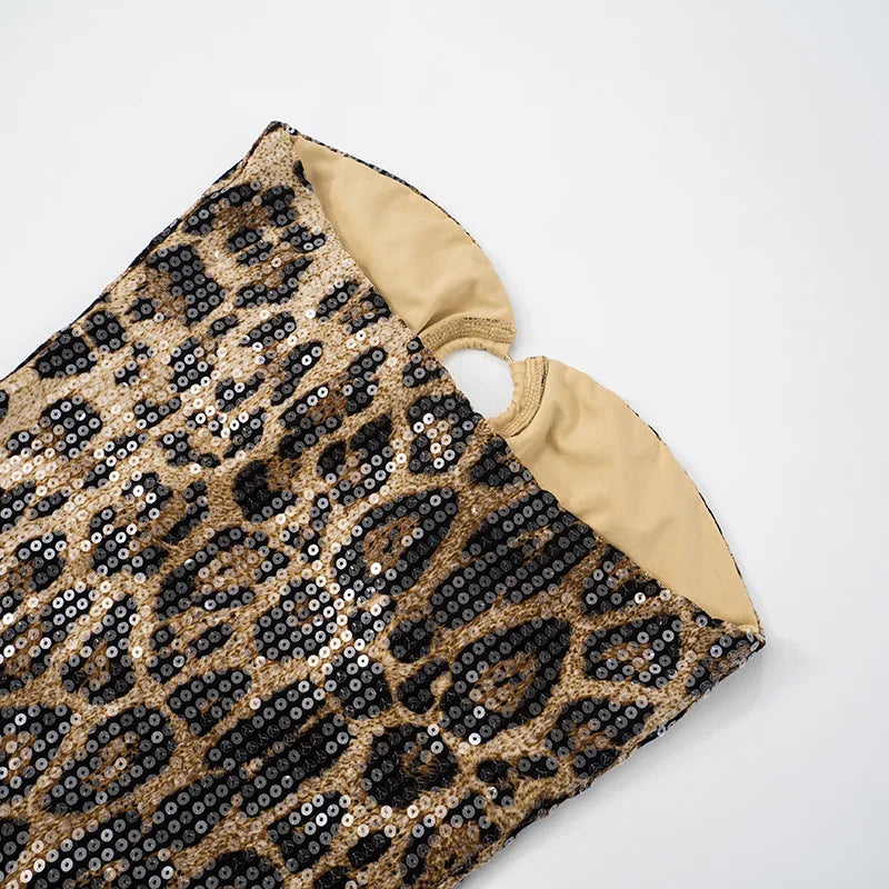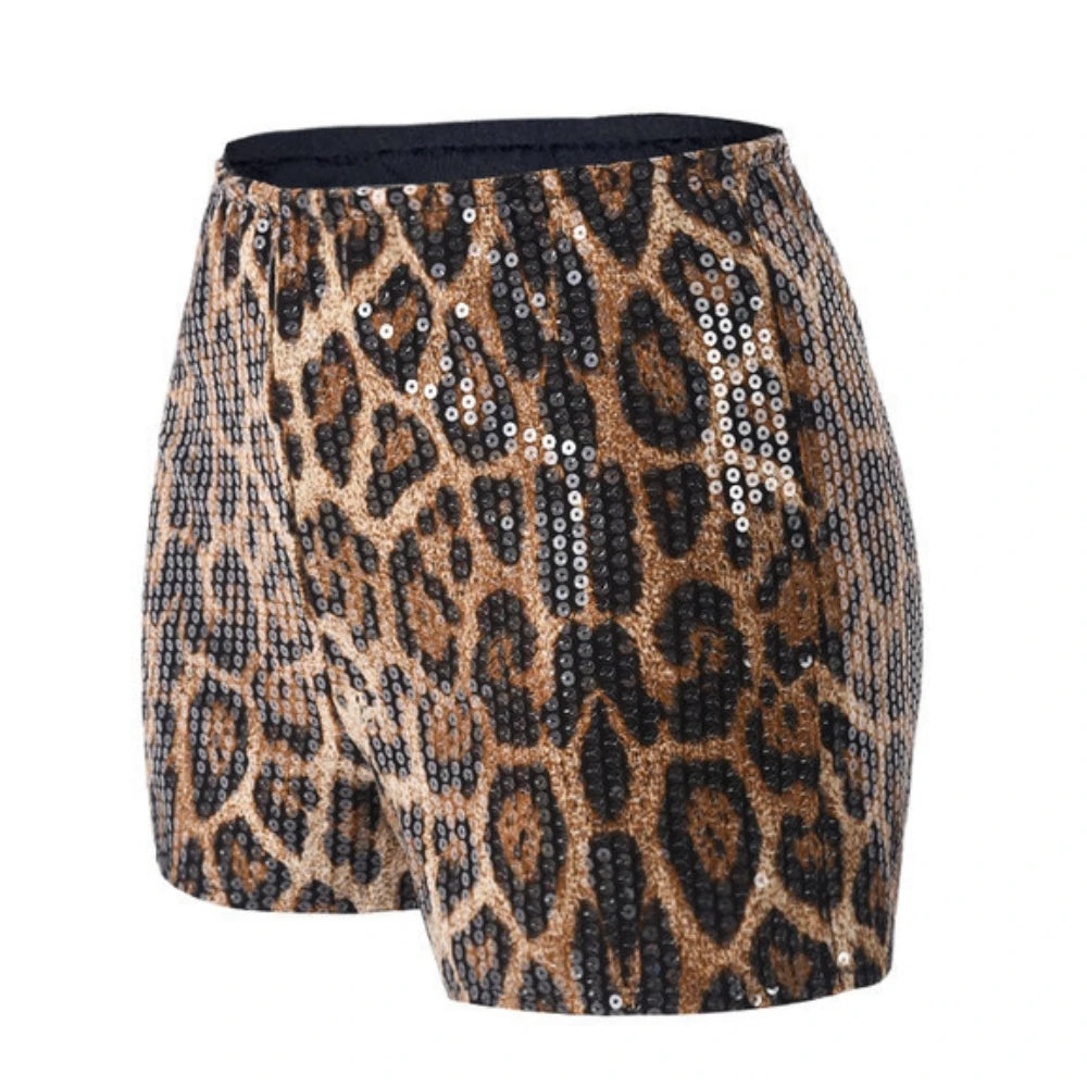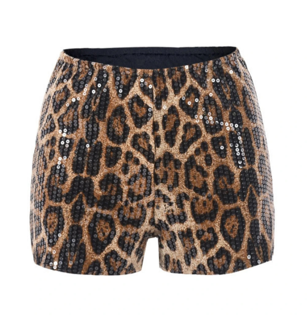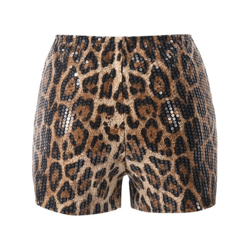 HLJ&GG Y2K Fashion Leopard Sequined Shorts Two Piece Sets Women Letter Print Round Neck Slim Crop Top And Shorts Outfits 2025