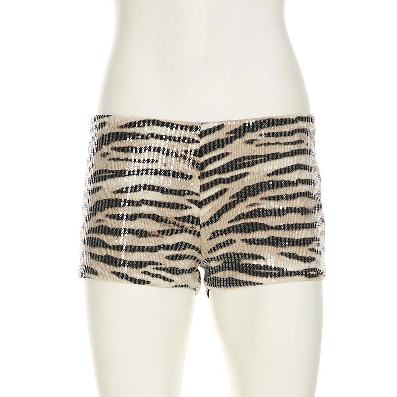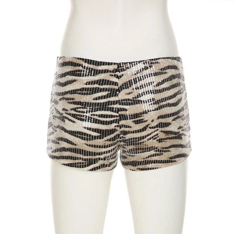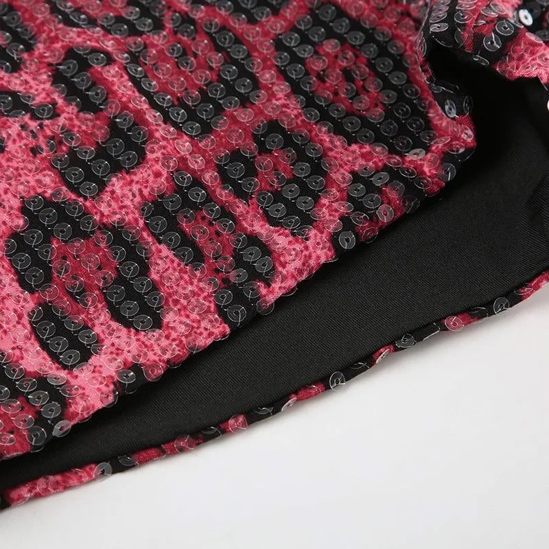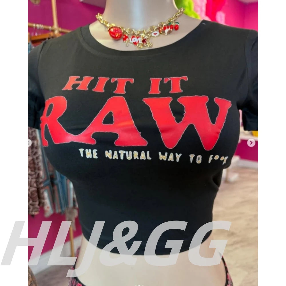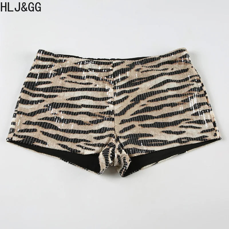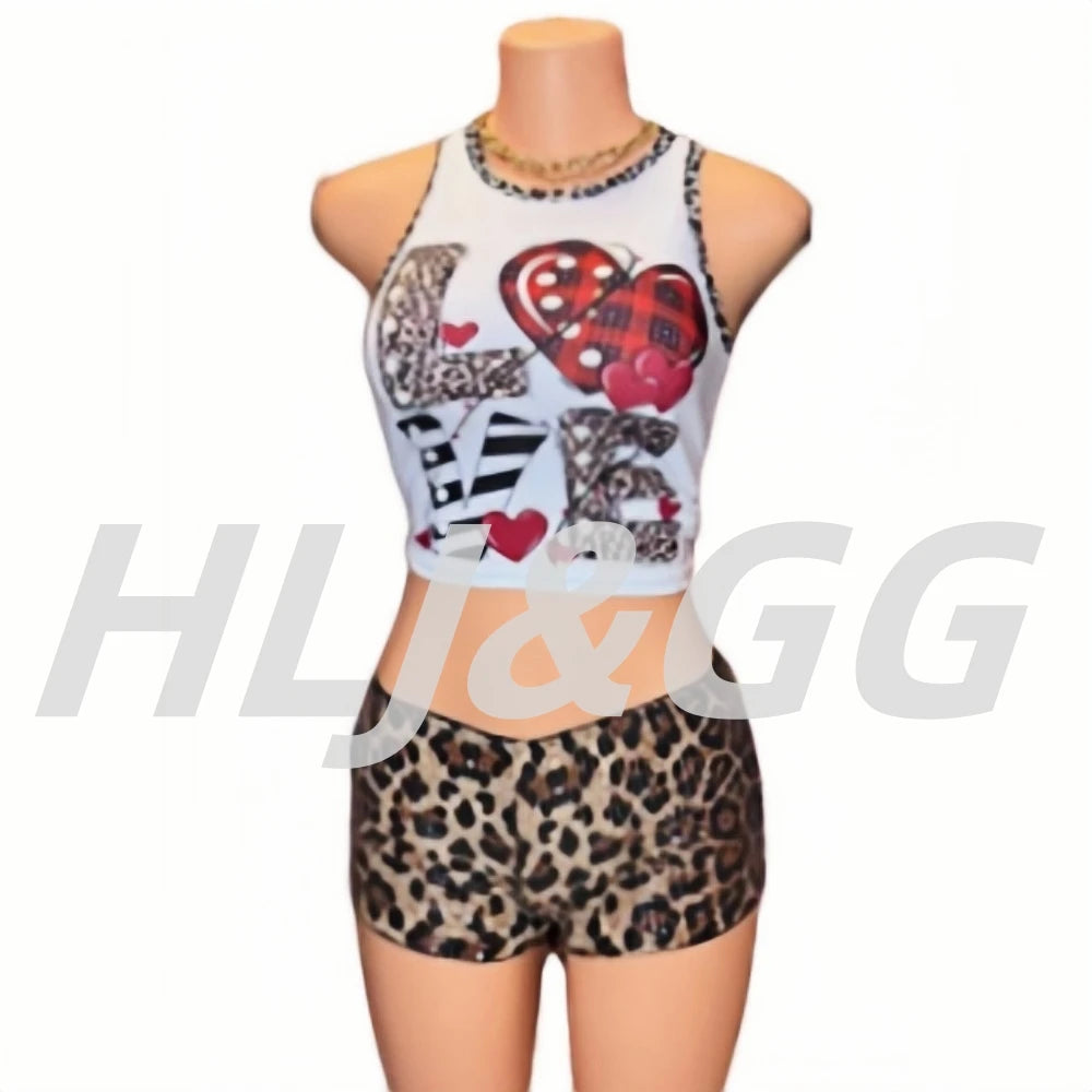 HLJ&GG Y2K Fashion Letter Printing Sequin Shorts Two Piece Sets Women Round Neck Short Sleeve Slim Crop Top And Shorts Outfits