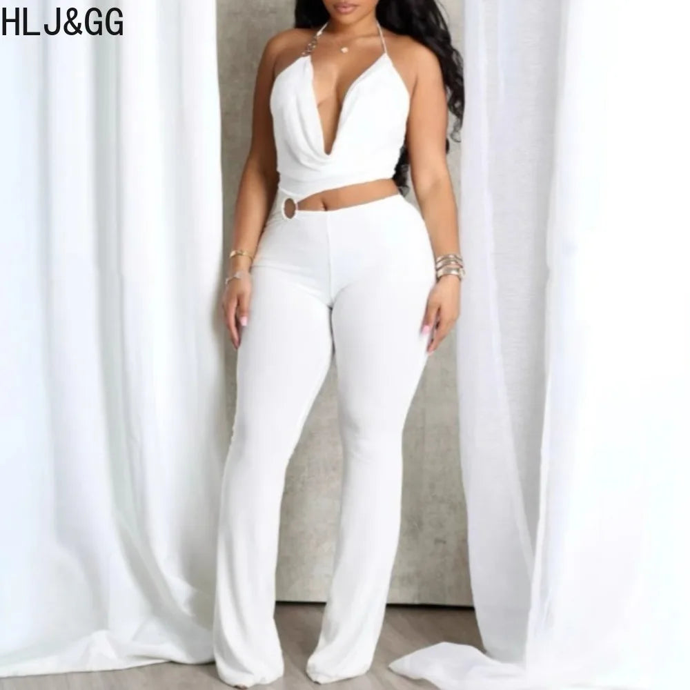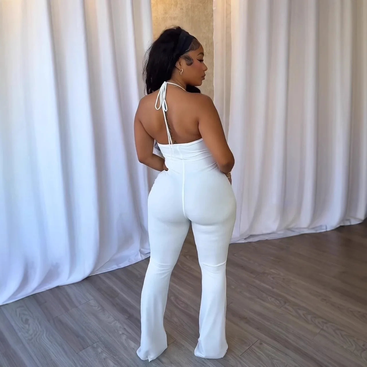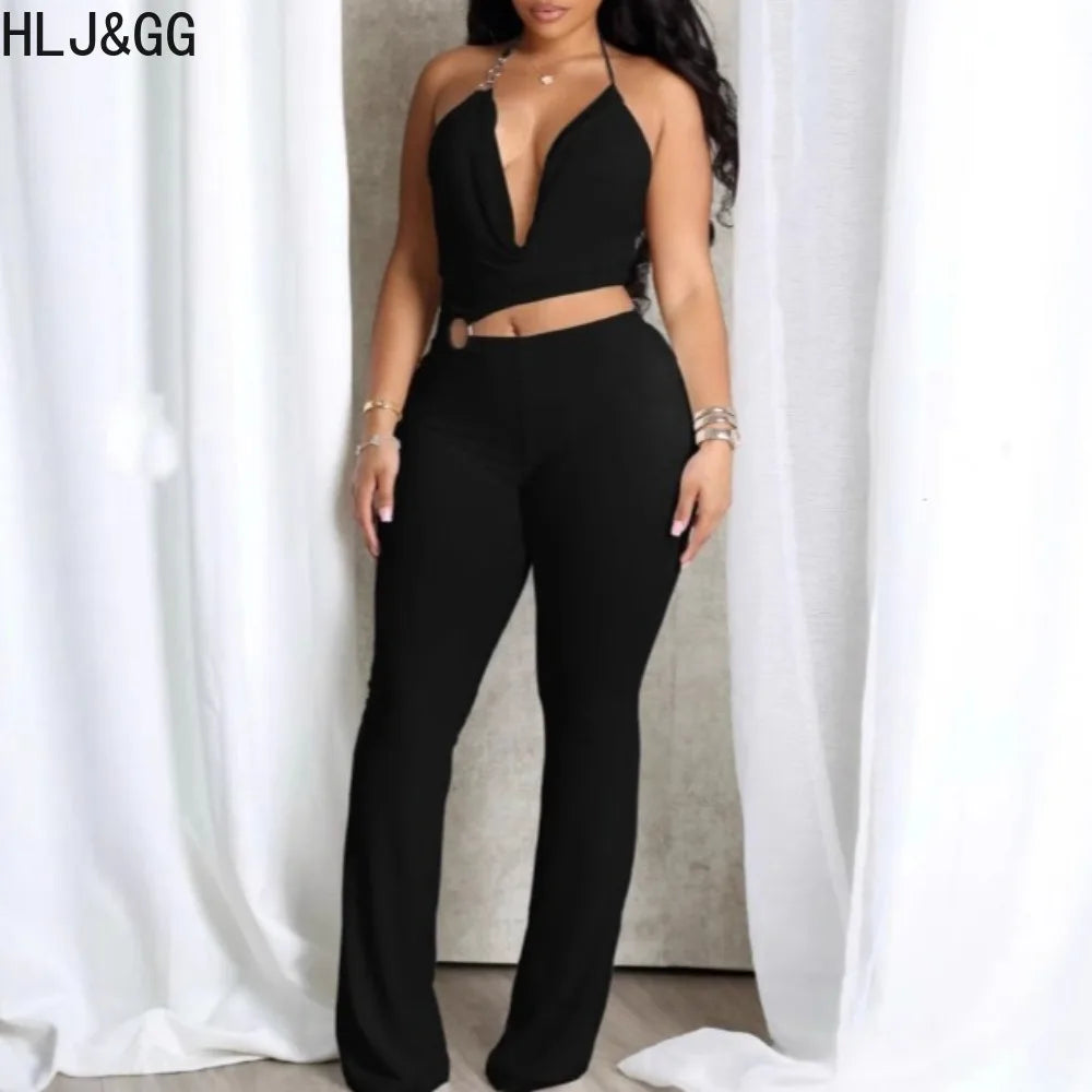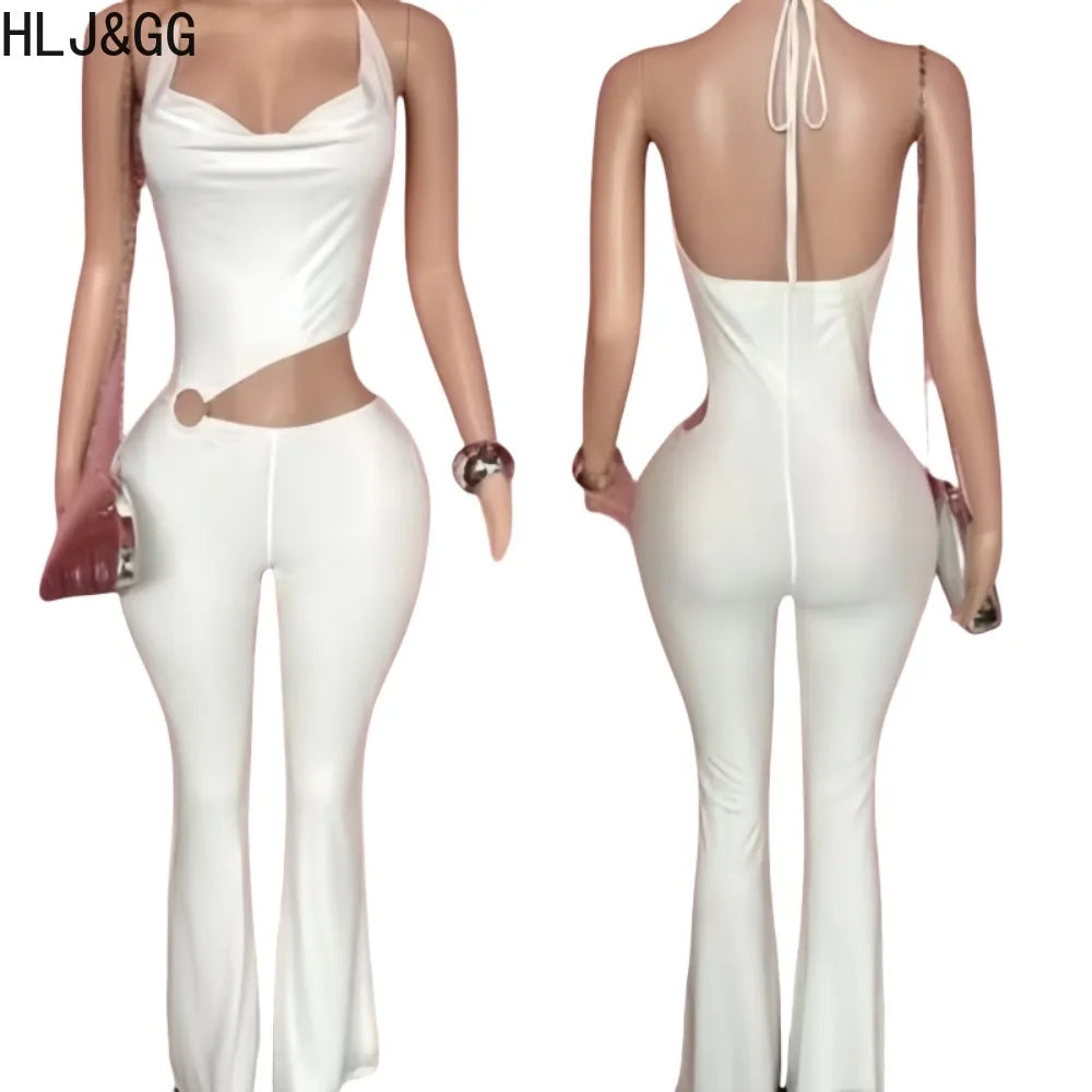 HLJ&GG Y2k Sexy Bodycon Jumpsuit for ladies Halter Sleeveless Backless Hollow Out Rompers, Streetwear Overalls 2025 Summer