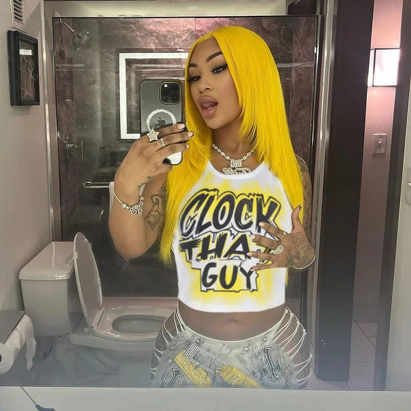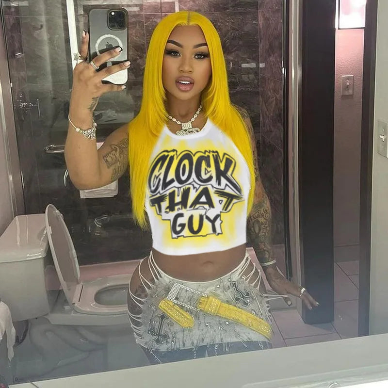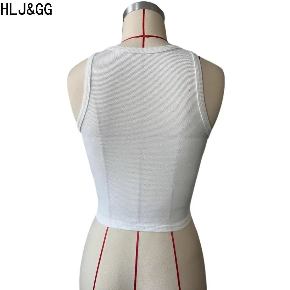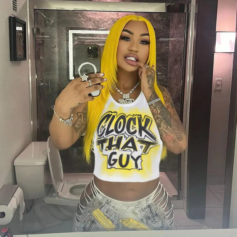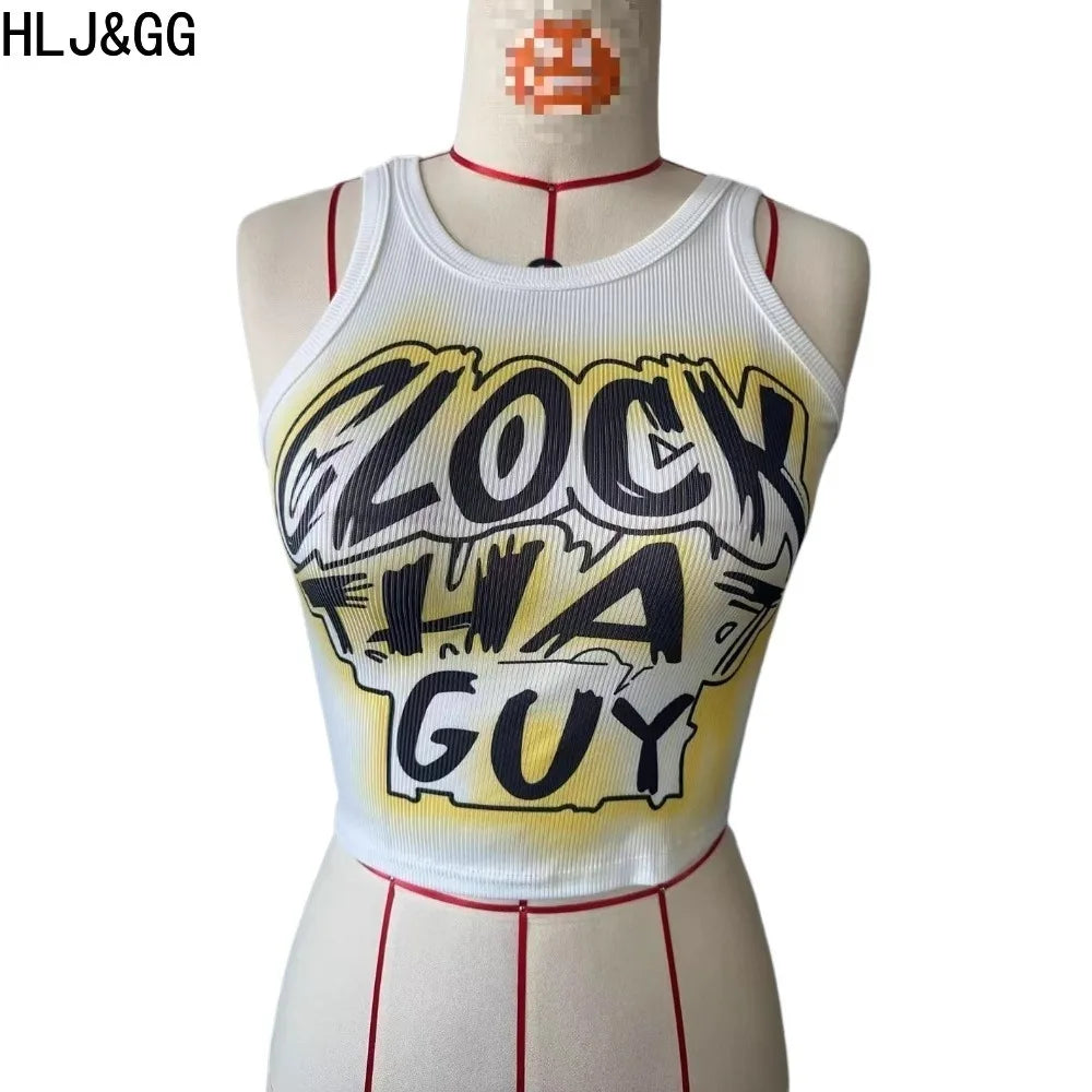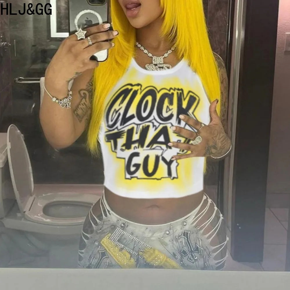 HLJ&GG Y2K Sexy Letter Print Slim Tank Top Women Round Neck Sleeveless Crop Tops Fashion Summer New Trend Clothing Streetwear