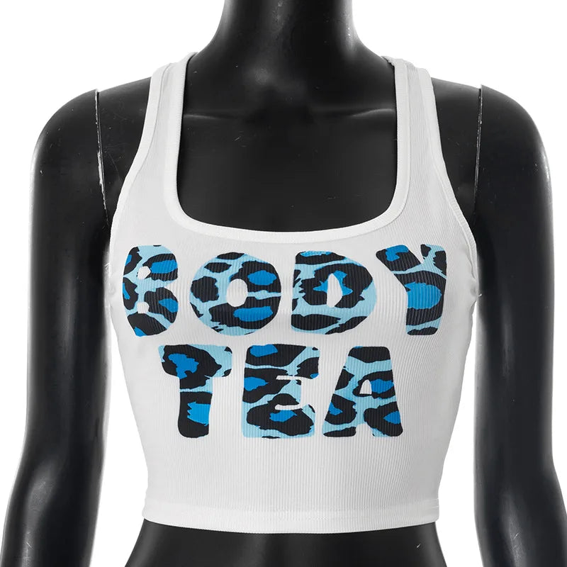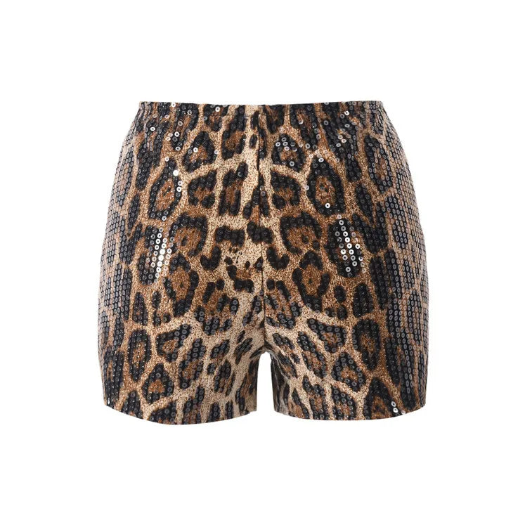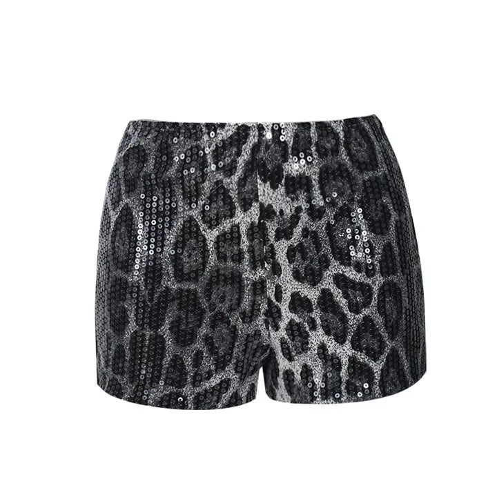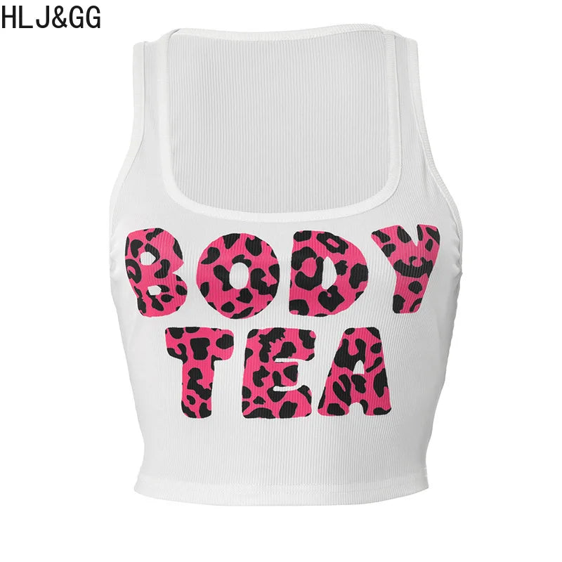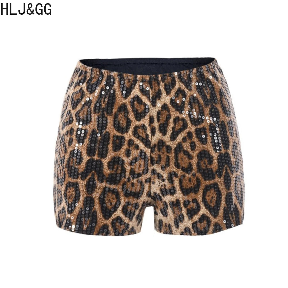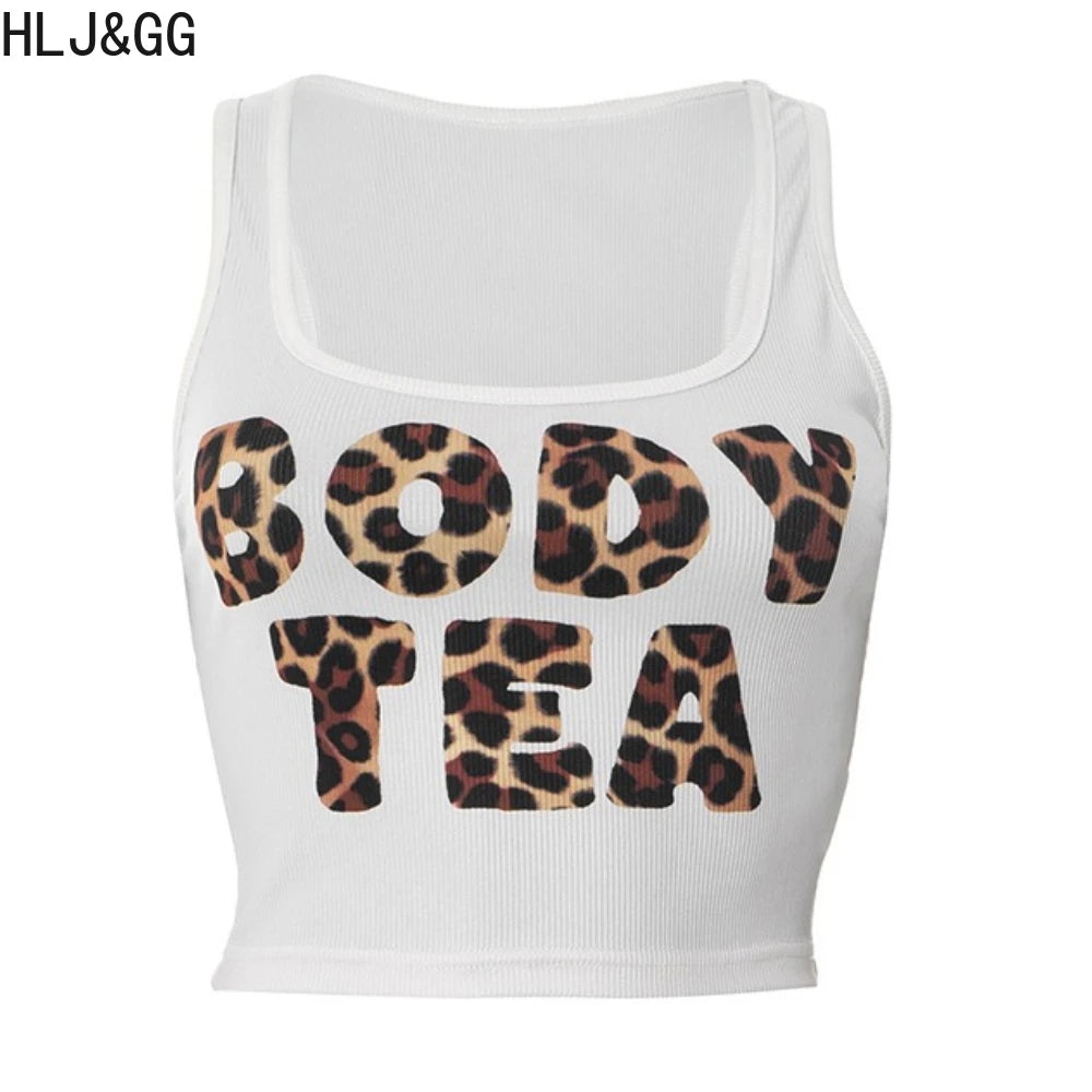 HLJ&GG Y2K Summer New Letter Tank Top Two Piece Sets Women Round Neck Sleeveless Vest + Sequin Leopard Shorts Outfits Streetwear