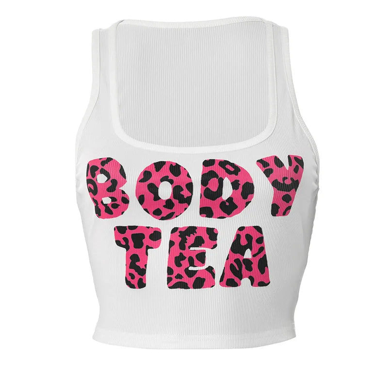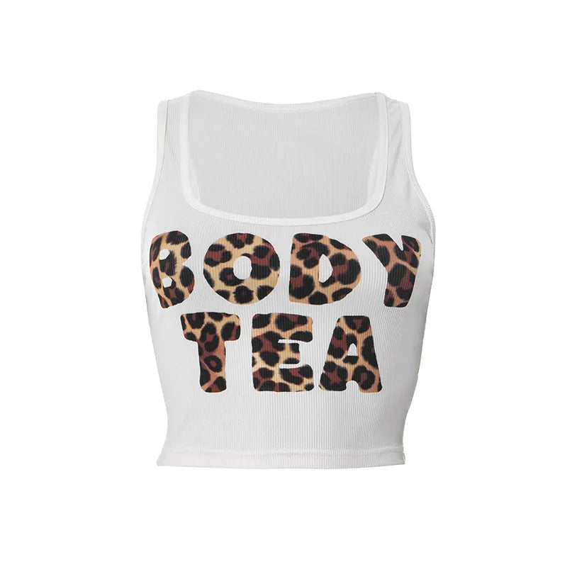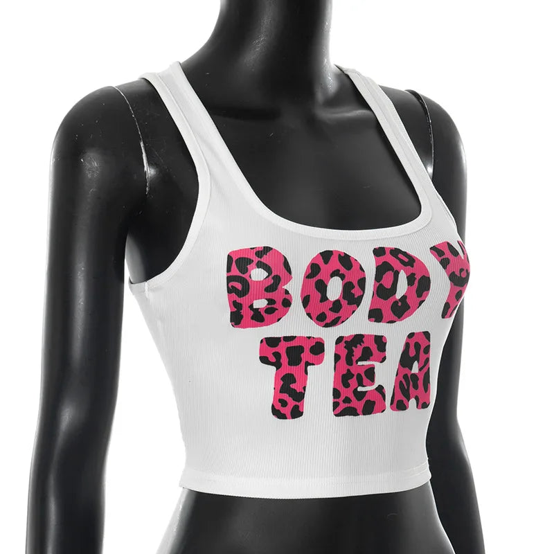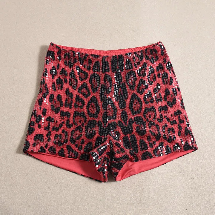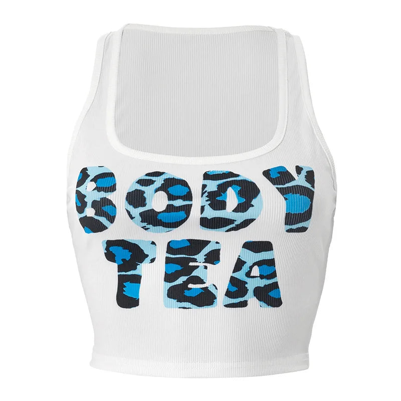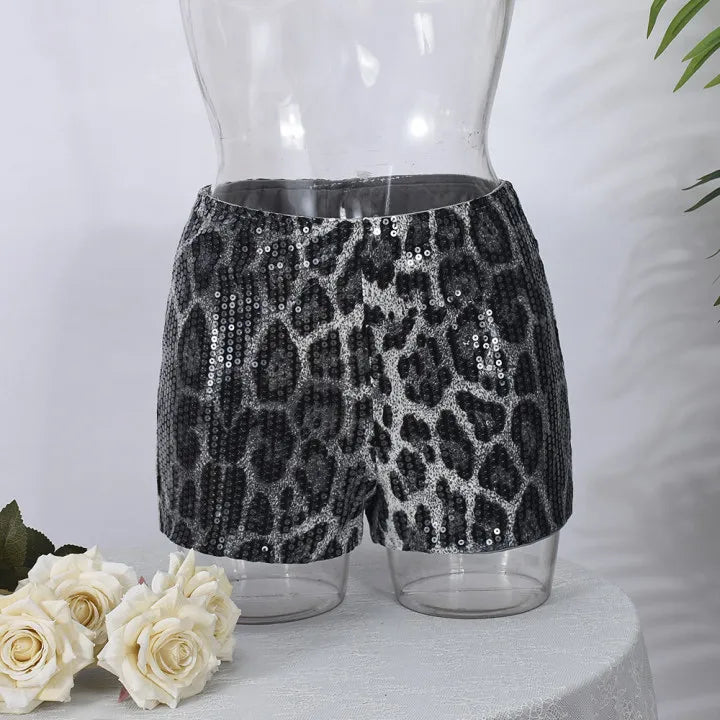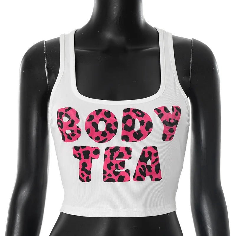 HLJ&GG Y2K Summer New Letter Tank Top Two Piece Sets Women Round Neck Sleeveless Vest + Sequin Leopard Shorts Outfits Streetwear