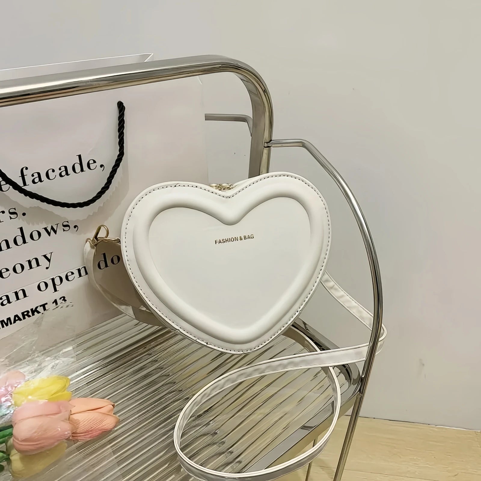 Hot Selling Heart Crossbody Bag Women's Solid Color PU Leather Versatile Sweet Shoulder Bag Fashion Handbag-tan