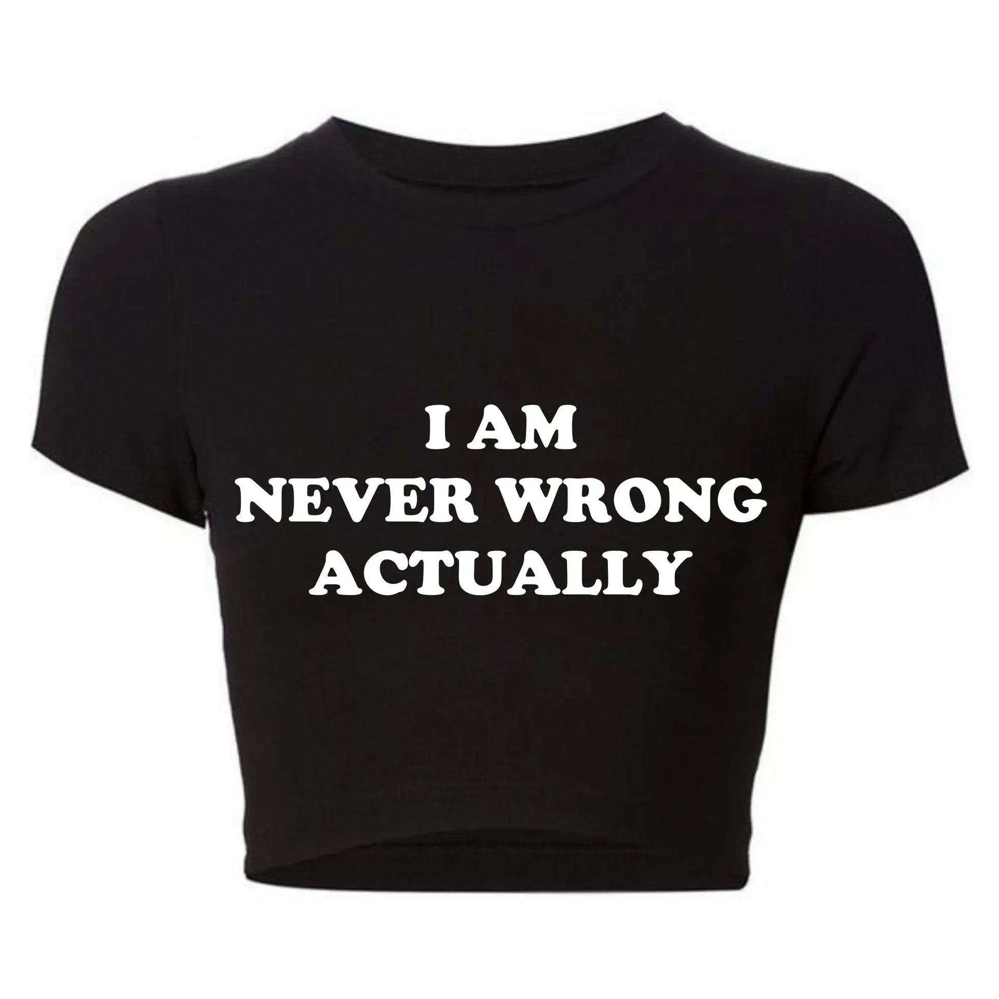 I Am Never Wrong Actually Funny Letters Printed T Shirts Harajuku Y2k Baby Tee Sexy Club Wear Outfits, Crop Tops
