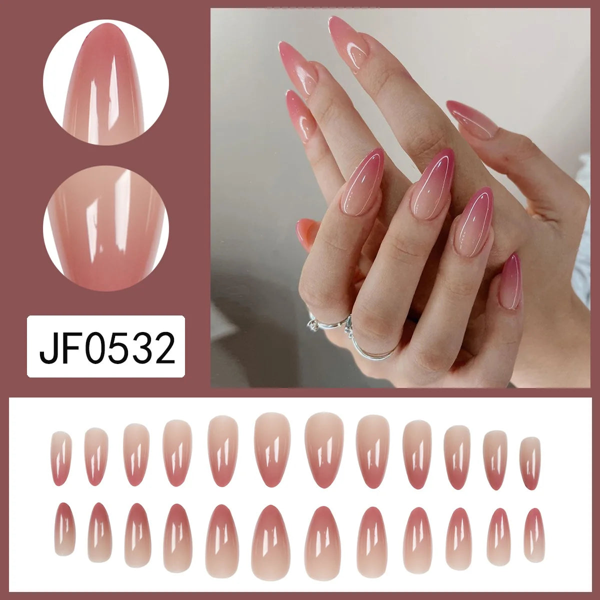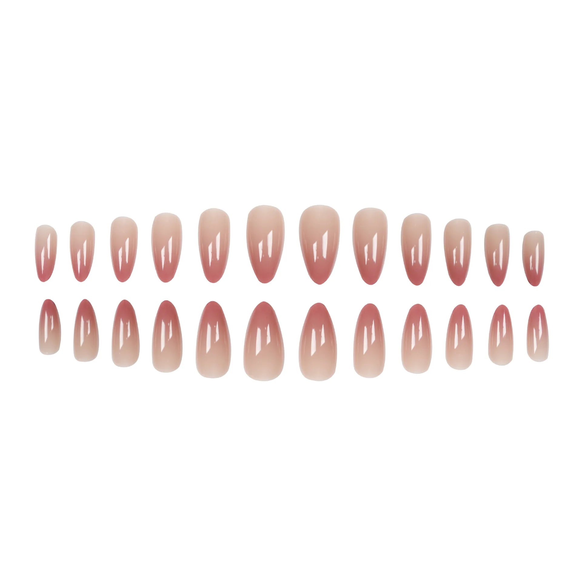 Ins Sweet Gradient Pink False Nail Patch Almond Glossy Korean Style Fake Nail Wearable 24pcs Artificiall Nails Free Shipping