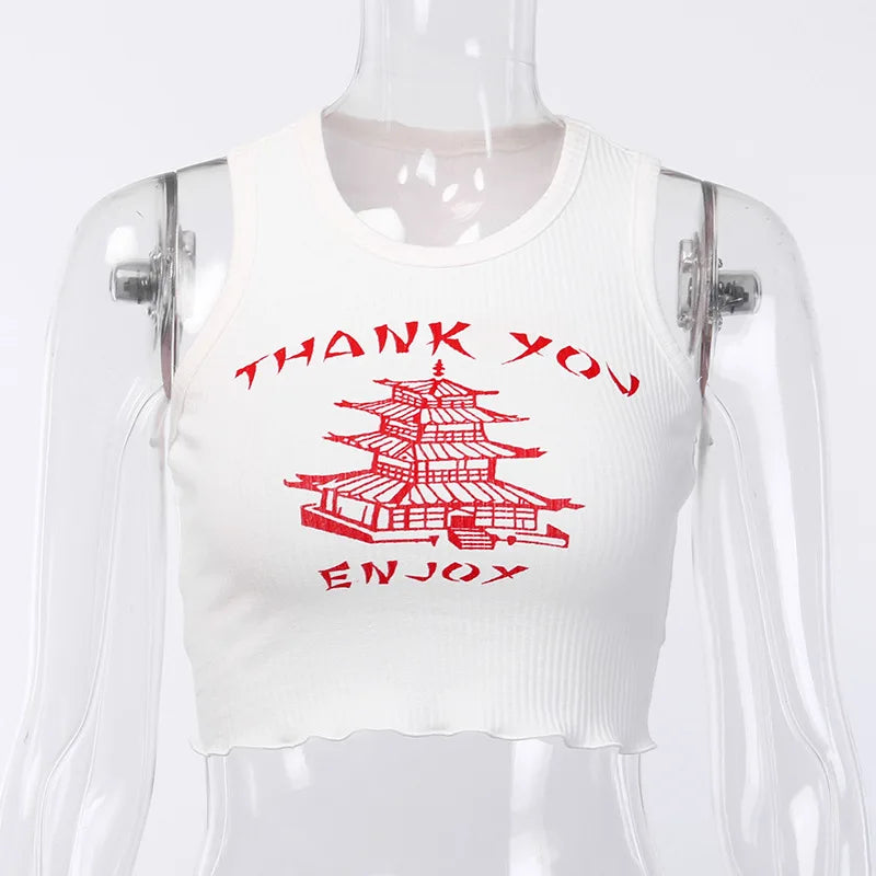 knitting Print O Neck Off Shoulder Tank Top Summer Women Casual Slim Streetwear Crop Top Female Vacation Clothes Top