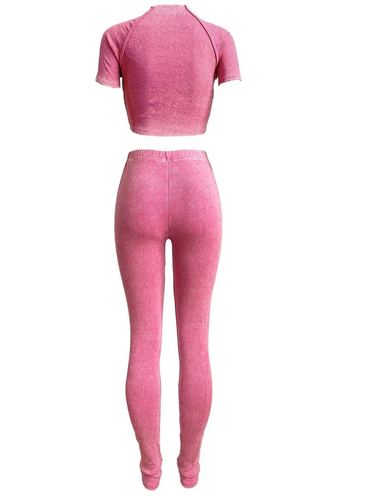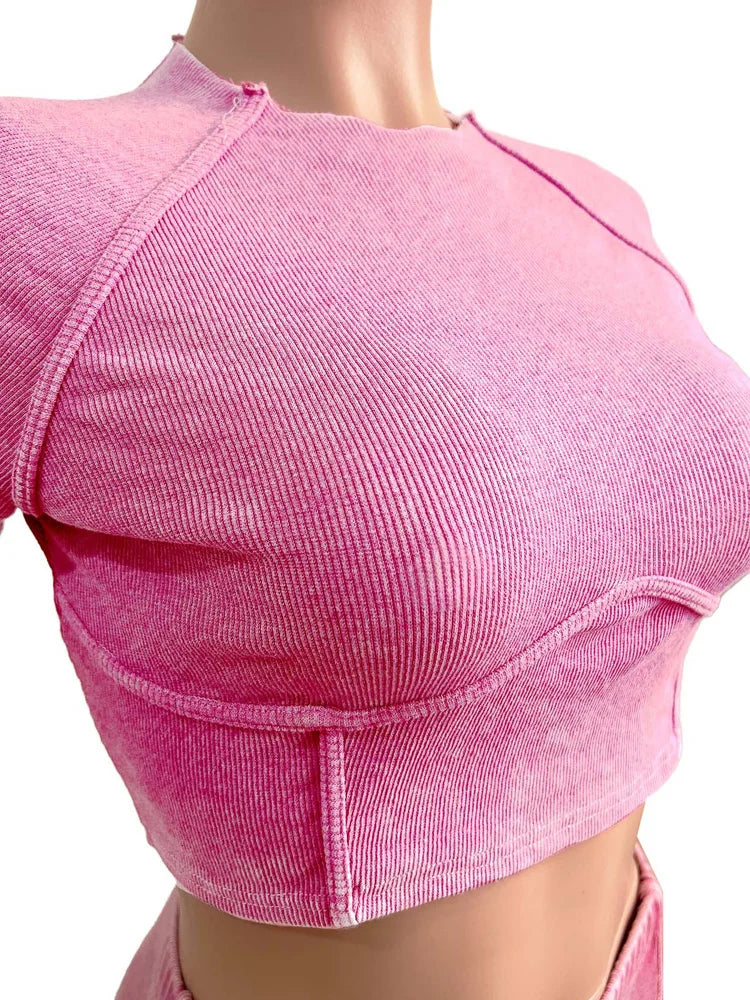 Kricesseen Breaking The Rules Mineral Wash Set Two-Piece Outfits Casual Ribbed Tracksuits Set Night Club Outfits Fitted Overalls
