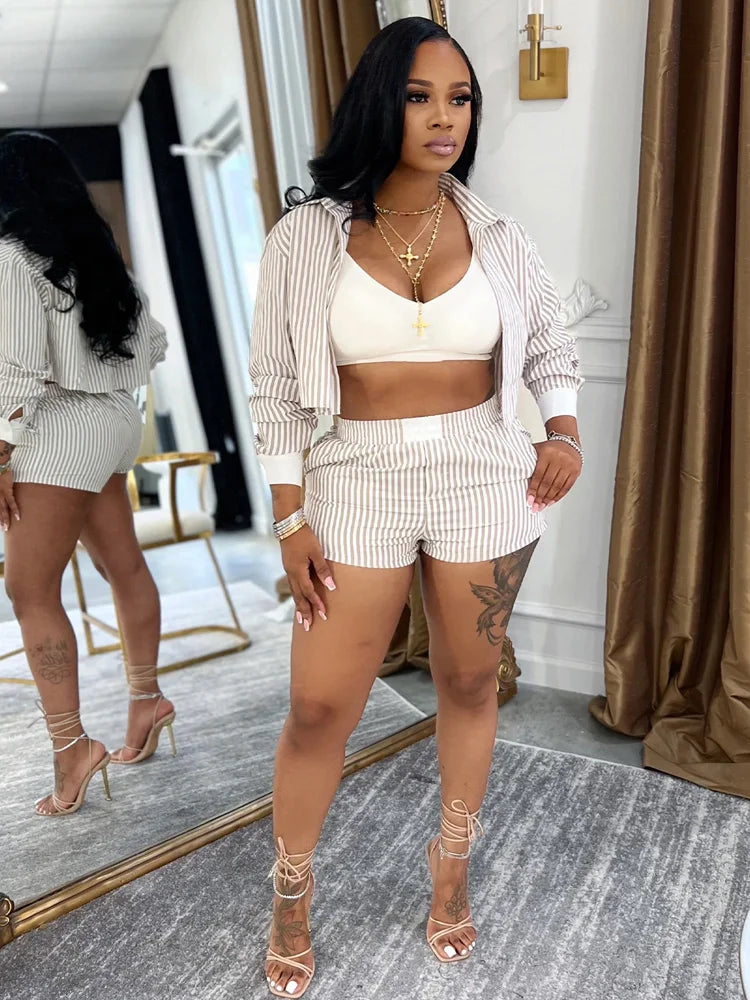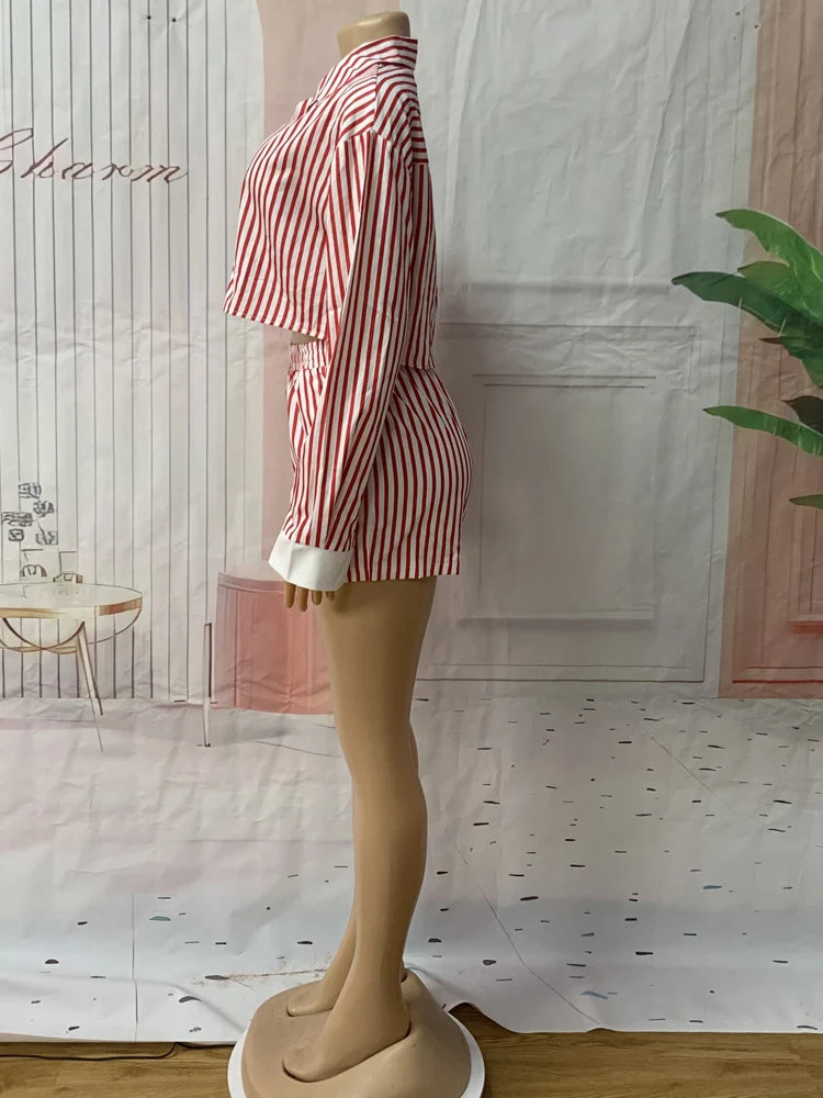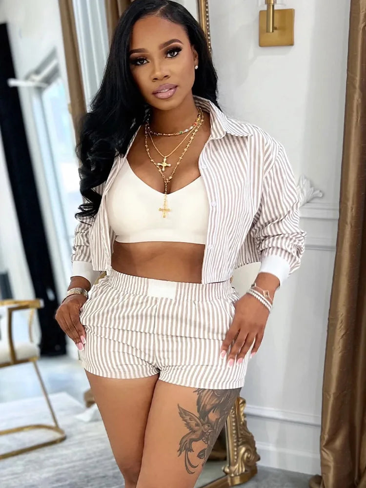 Kricesseen Chic Women's Pajama Set 2 Piece Outfits Night Out Wear Fashion Striped Tracksuits Set Club Overalls Work Wear Outfits