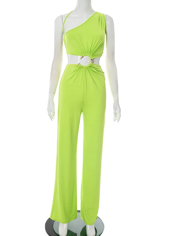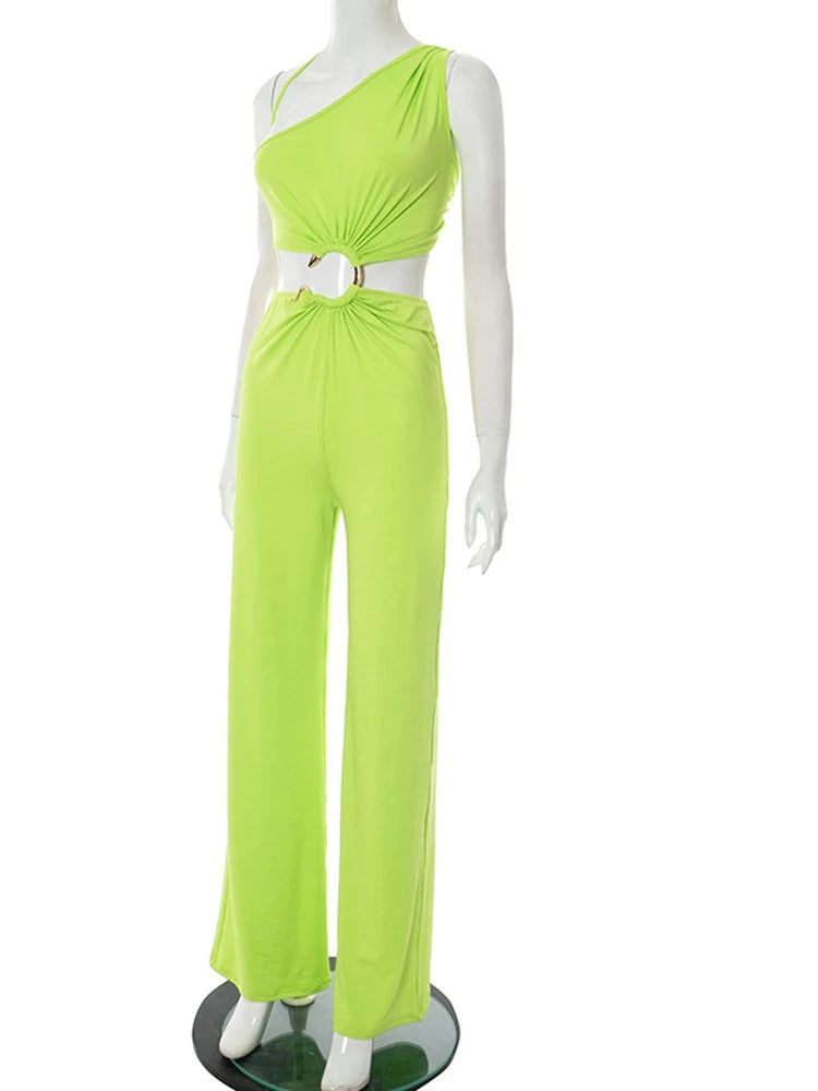 Character: Women's Cut-Out Snake Tirm Metal Jumpsuist One Piece Outfits