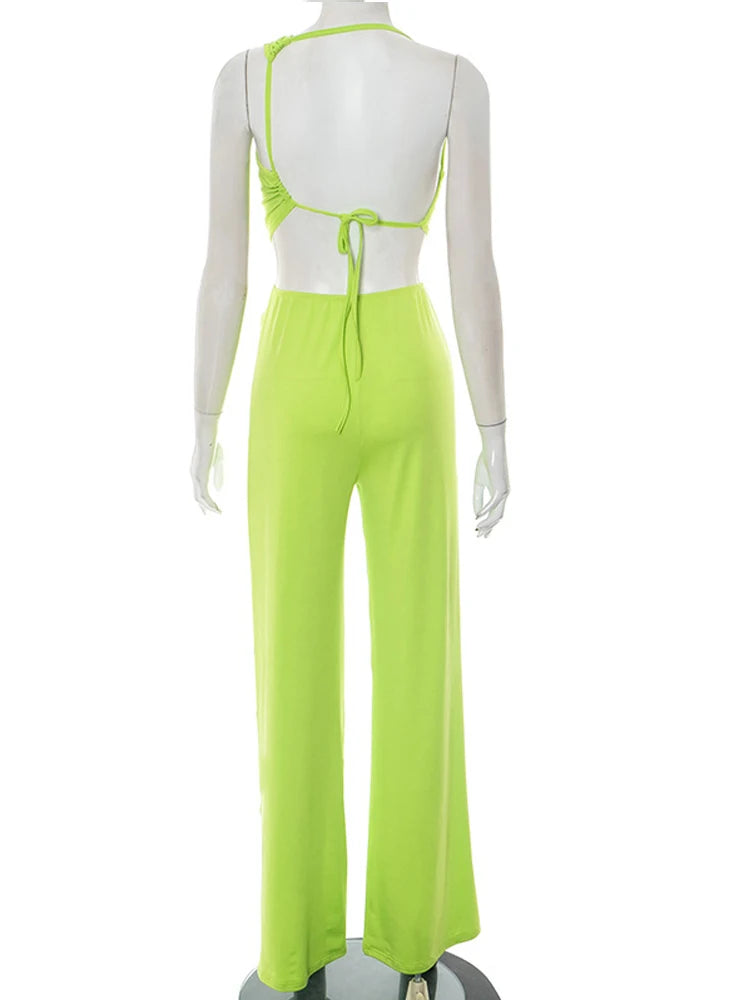 Kricesseen Women's Cut-Out Snake Tirm Metal Jumpsuist One Piece Outfits Summer Backless Lace-Up Bandage Rompers Sexy Clubwear