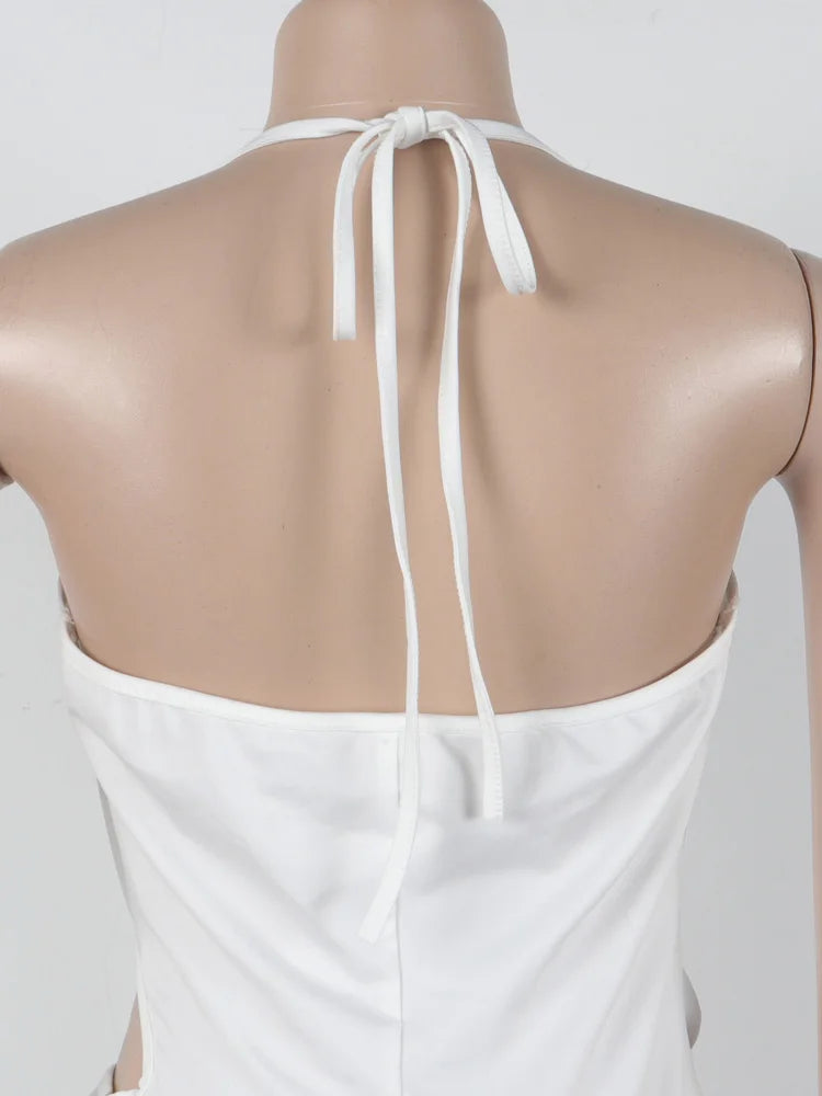 Kricesseen Women's Halter Neck Draped Cut-Out Metal Ring Fitted Jumpsuits Sexy Rompers One Piece Outfits Solid Clubwear Overalls