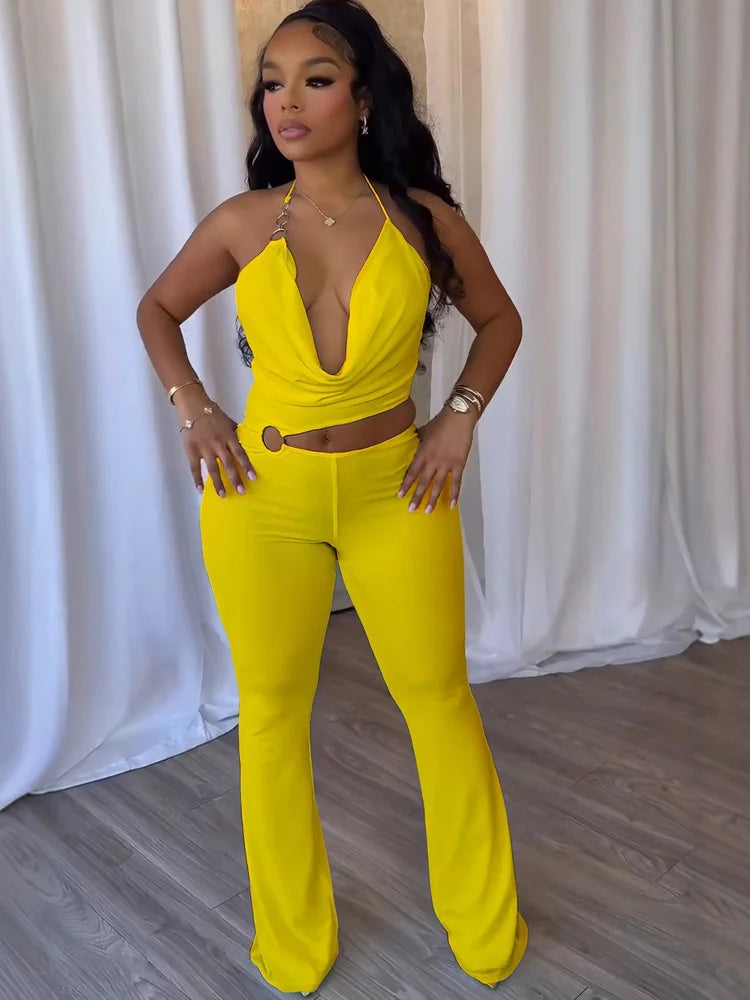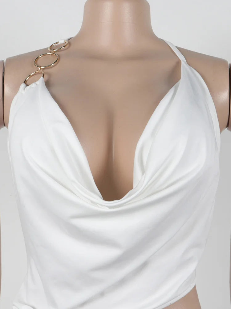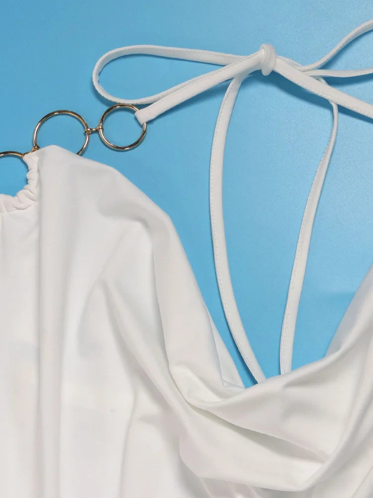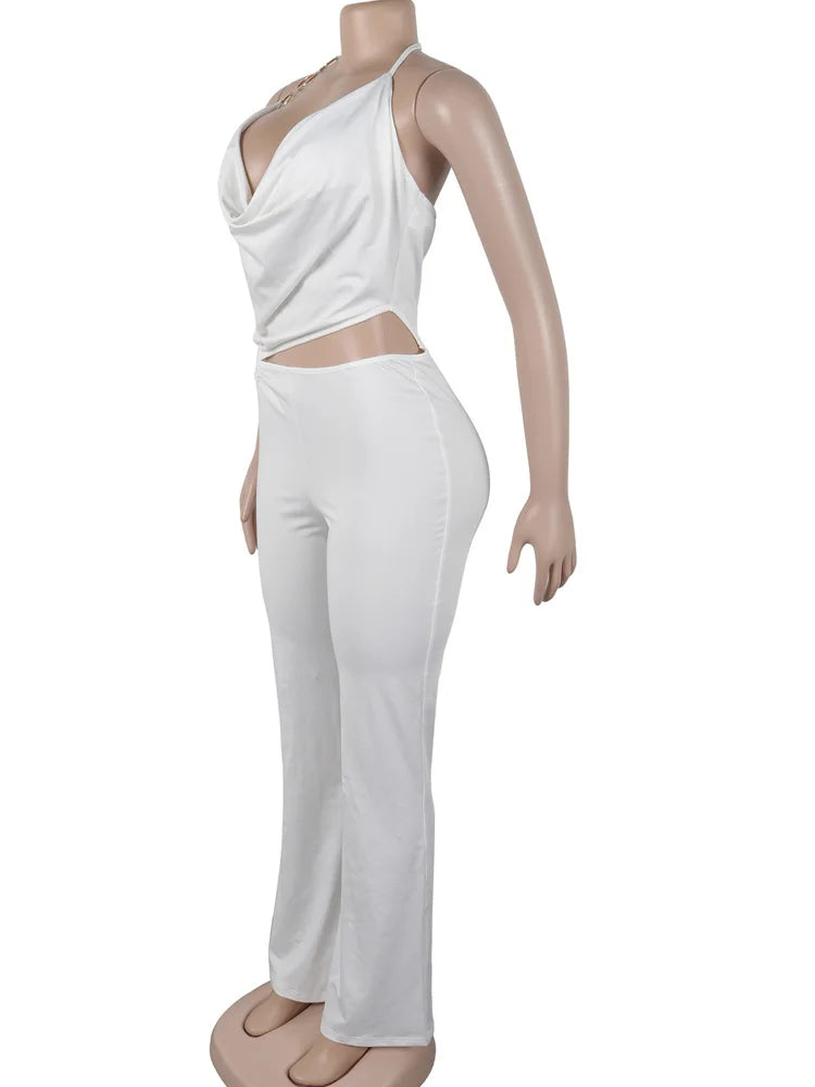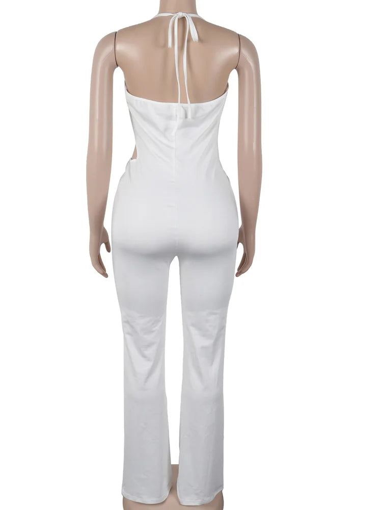 Character: Women's Halter Neck Draped Cut-Out Metal Ring Fitted Jumpsuits