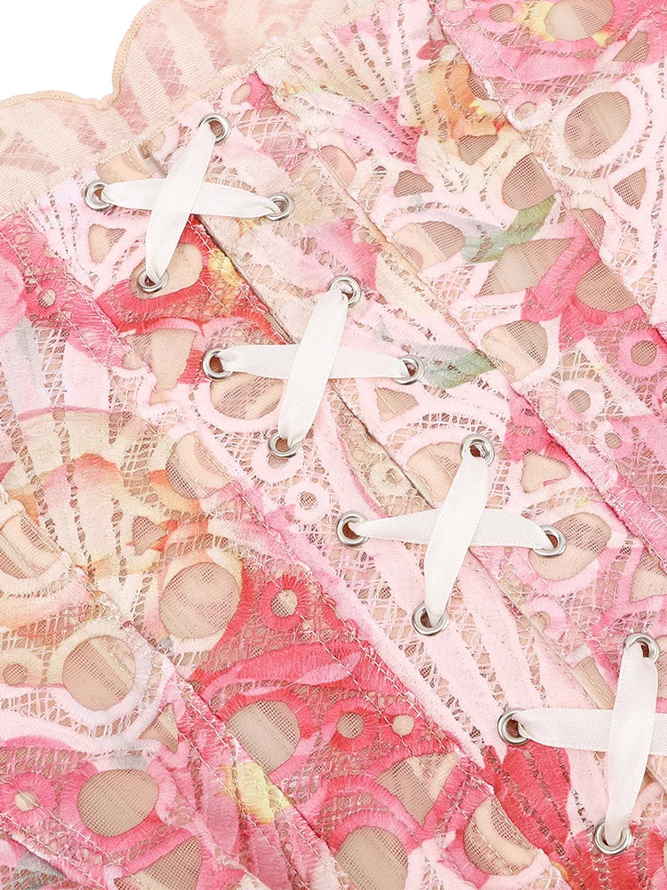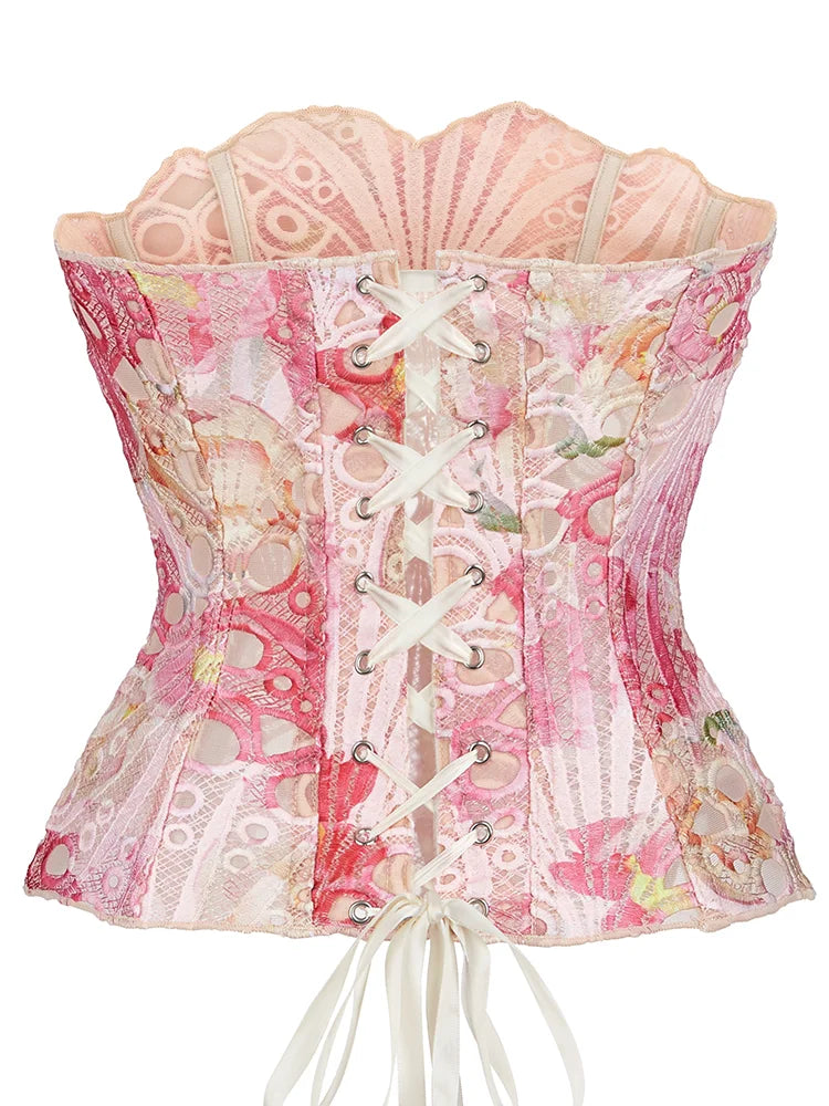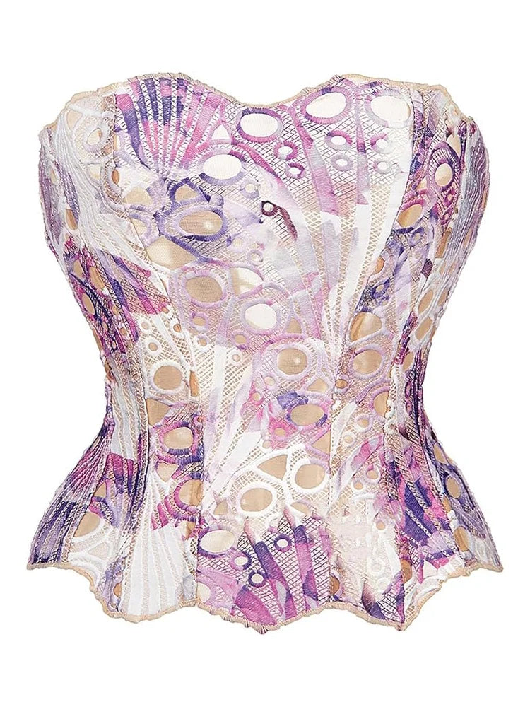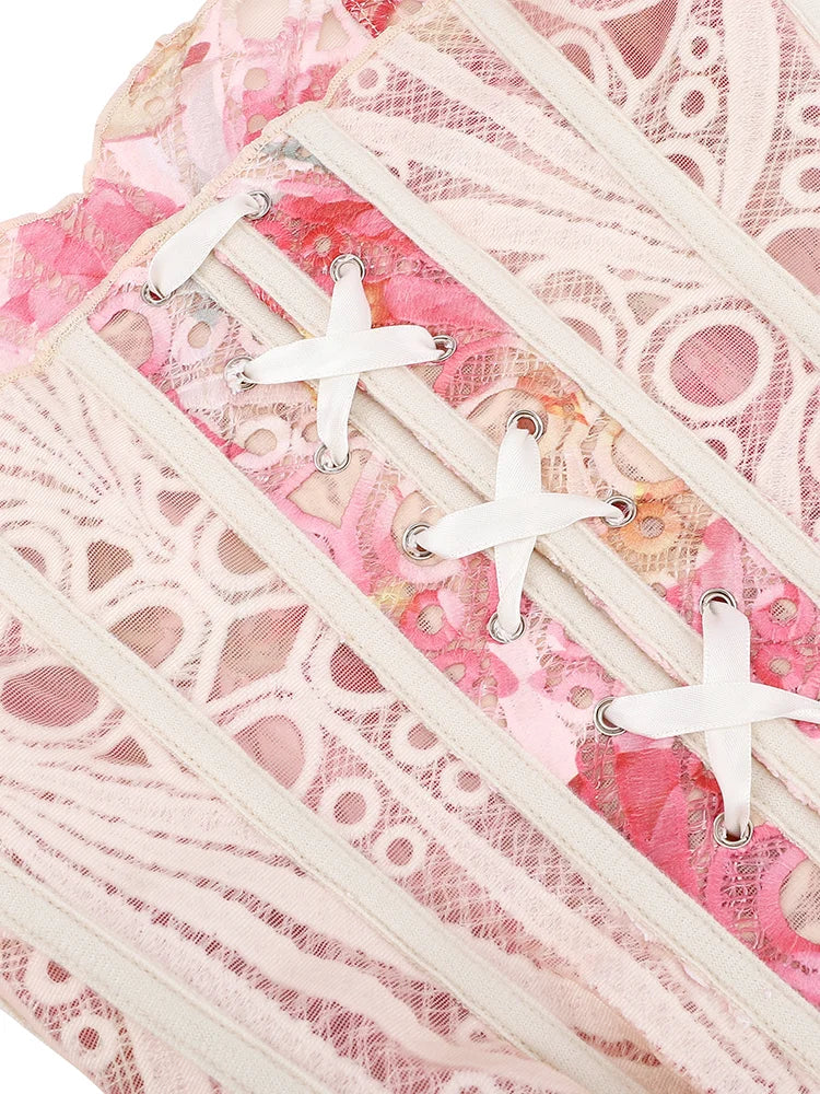 Lace double-layer corset palace style ins-inspired print body-shaping garment multi-colored sexy slim-fitting