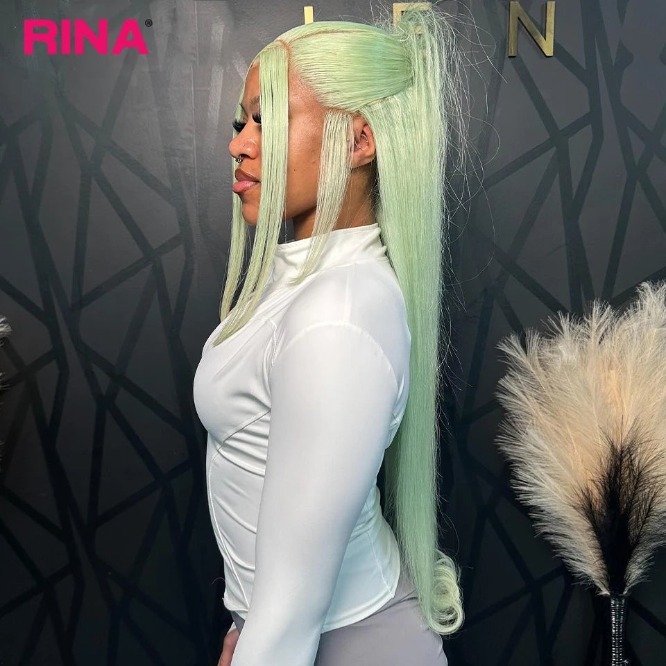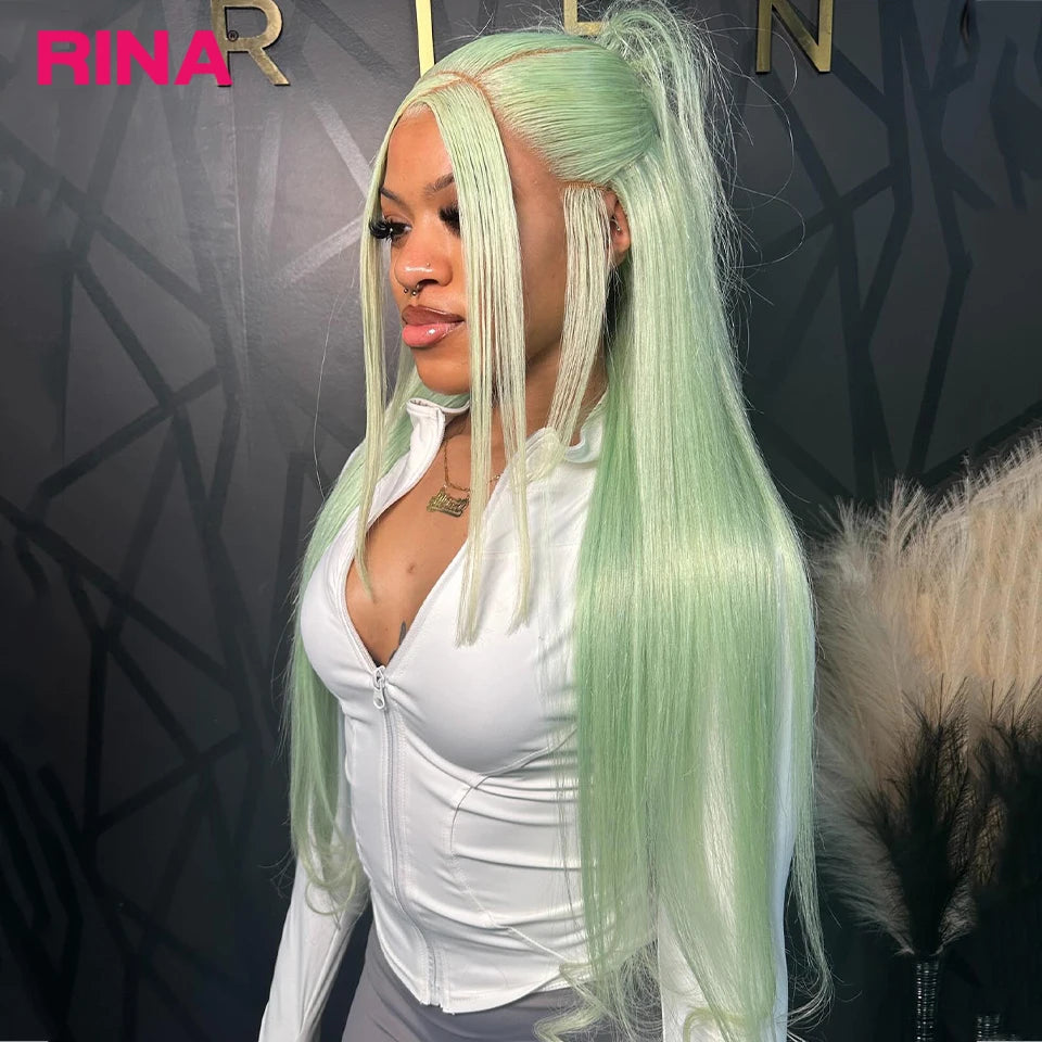 Light Mint Green Straight 13x6 Frontal Human Wig Pre Plucked 613 Colored Bone Straight Transparent 13x4 Lace Front Wig for Women