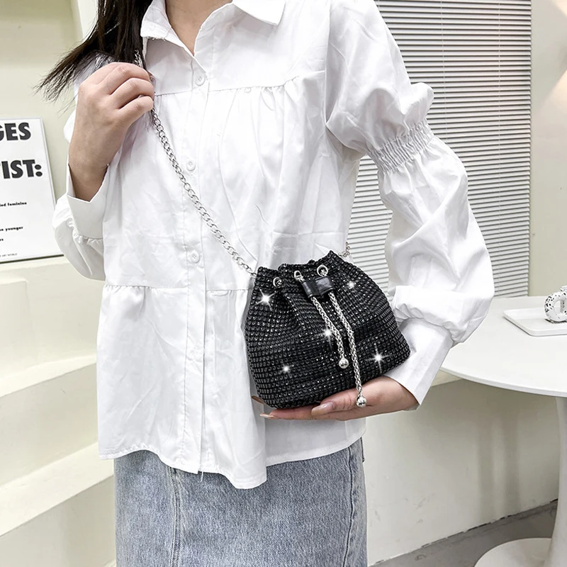 Luxury Rhinestone Bucket Bag Fashion Chain Shoulder Crossbody Bag For Women Personality Versatile Temperament Shoulder Bag