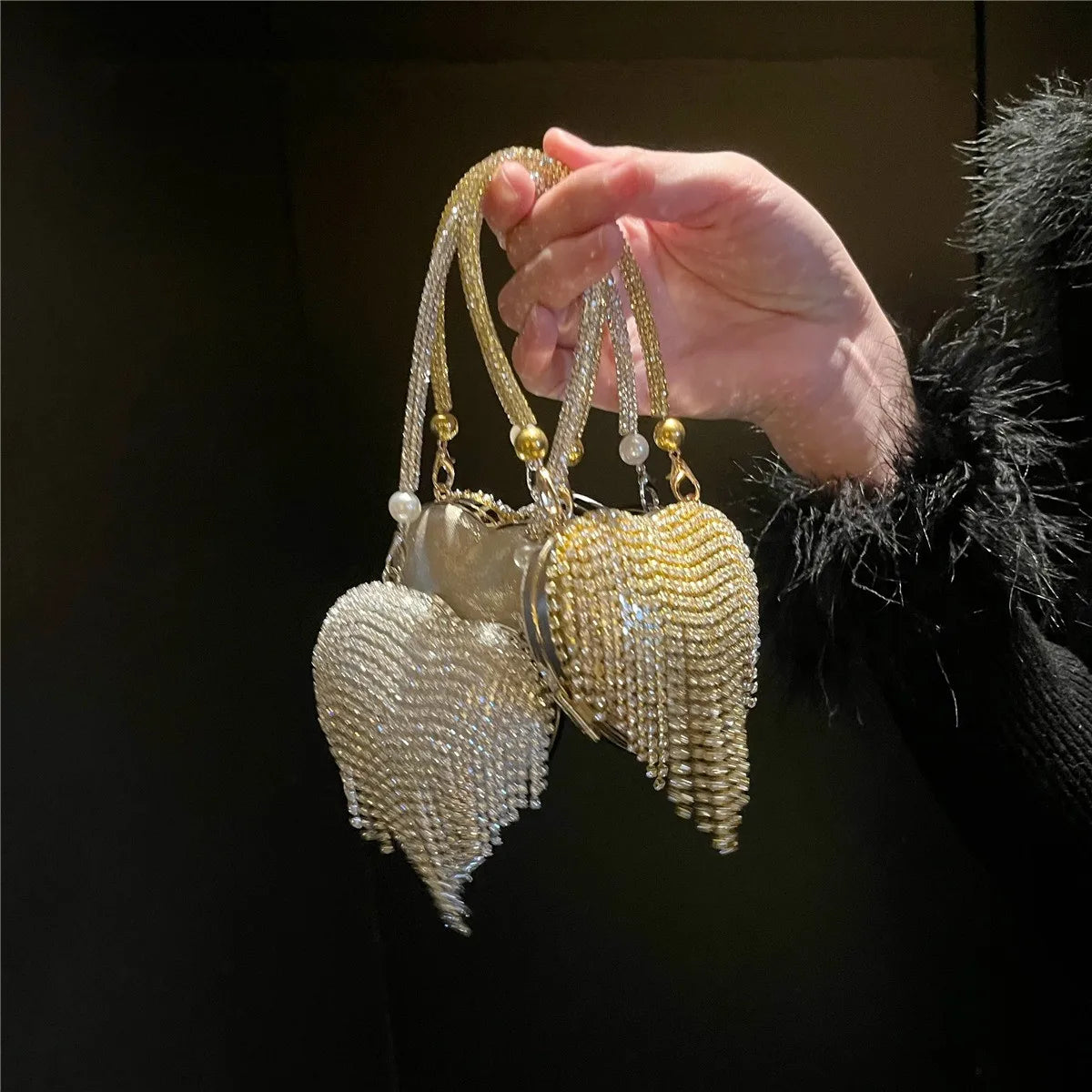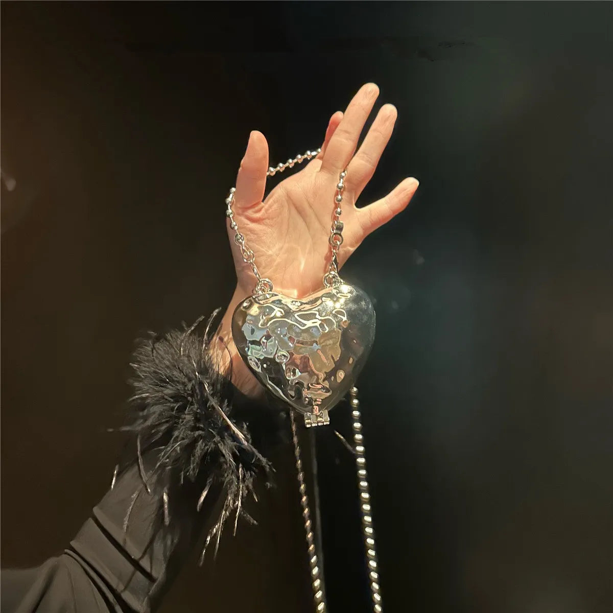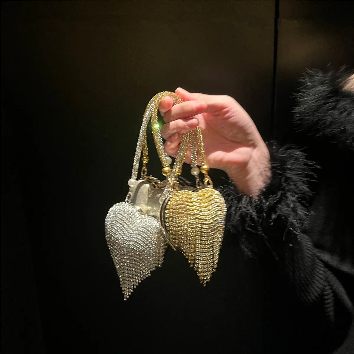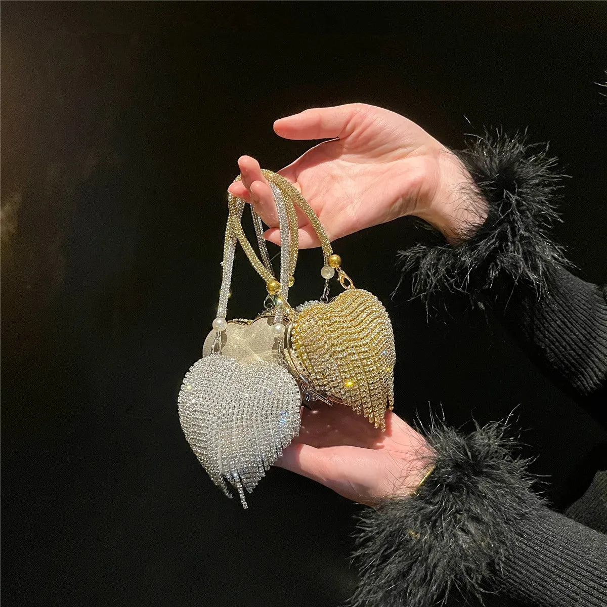 Luxury Small Bling Heart Shape Diamond Evening Clutch Rhinestones Purse Ladies Fashion Bag Designer for Women Chain Shoulder Bag