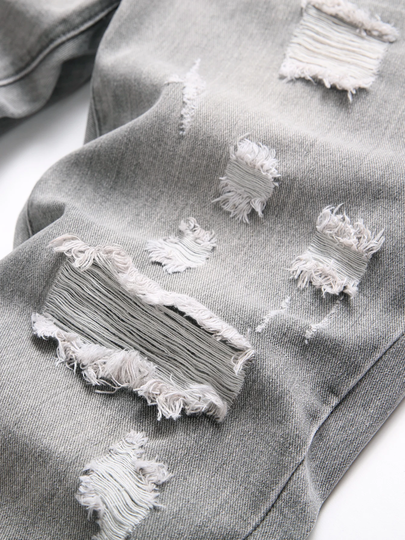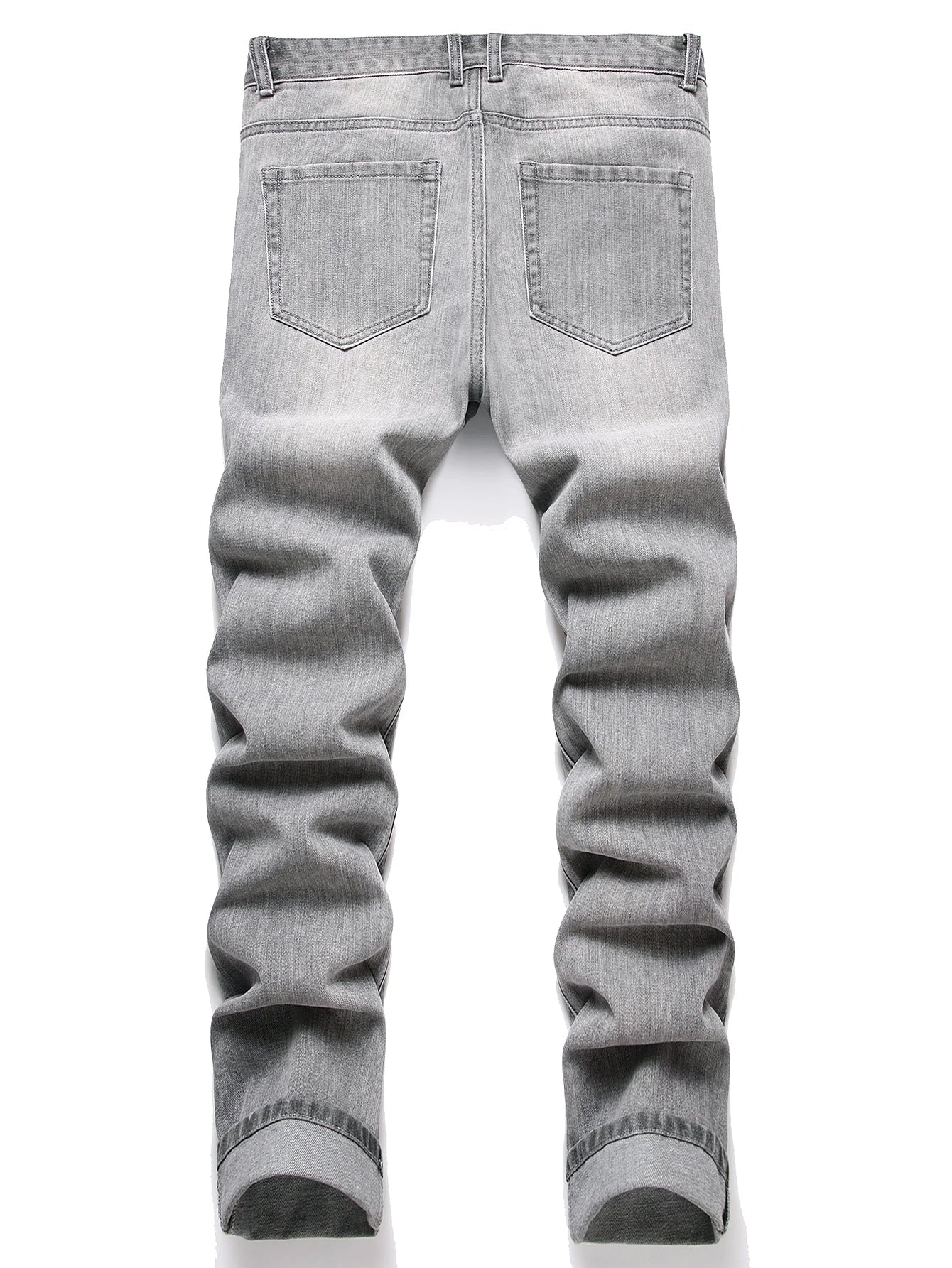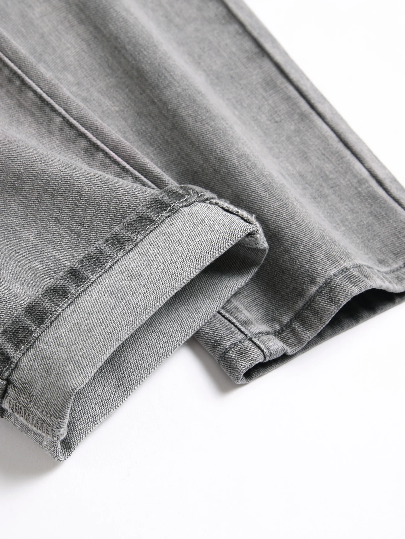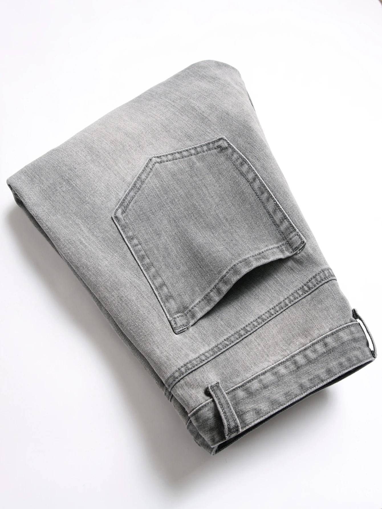 Denim Jeans Slim Fit Comfort Straight Leg Casual Mid Waist Denim Pants Grey Trousers Men Clothing